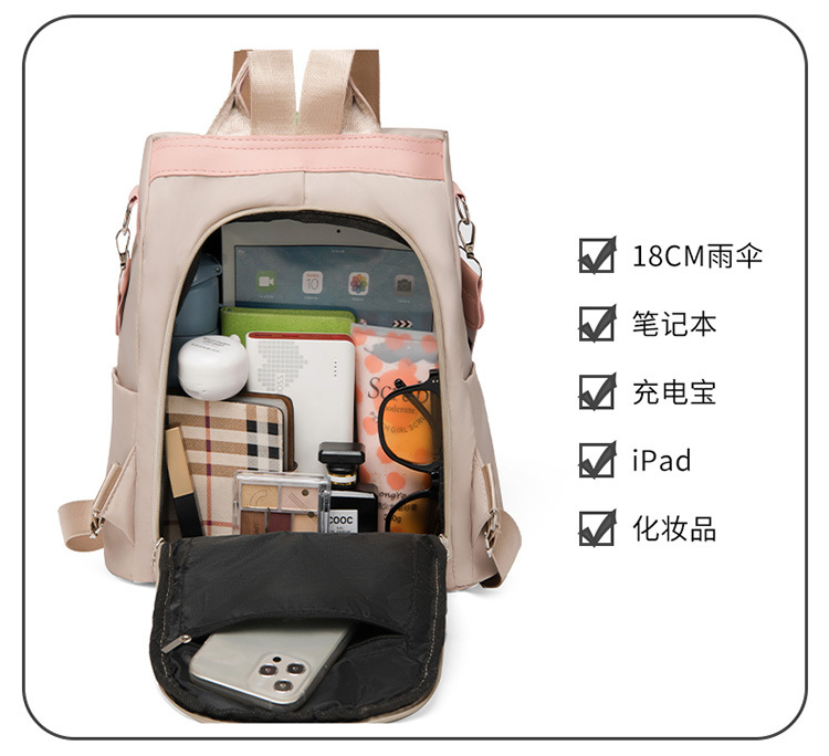 Fábrica al por mayor 2023 nueva versión coreana de la mochila de nailon para mujer moda literaria color de contraste viaje mochila de doble uso marea