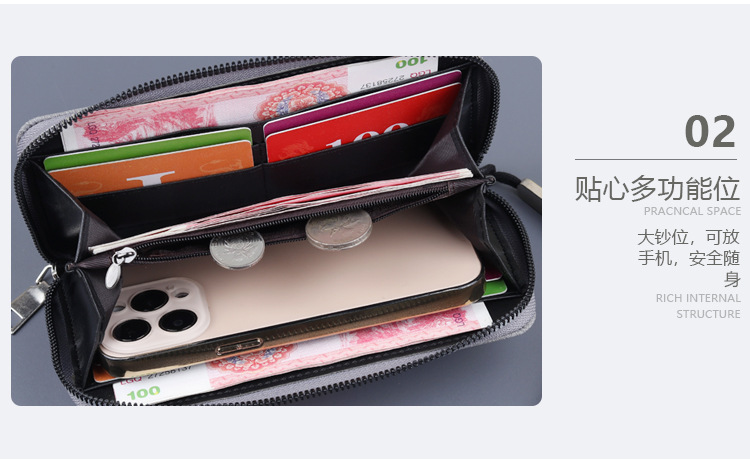 Europa y los Estados Unidos retro cera de aceite de piel de hombre medio y largo bolso de mano con cremallera de gran capacidad monedero de cremallera de una sola cremallera bolso de teléfono móvil