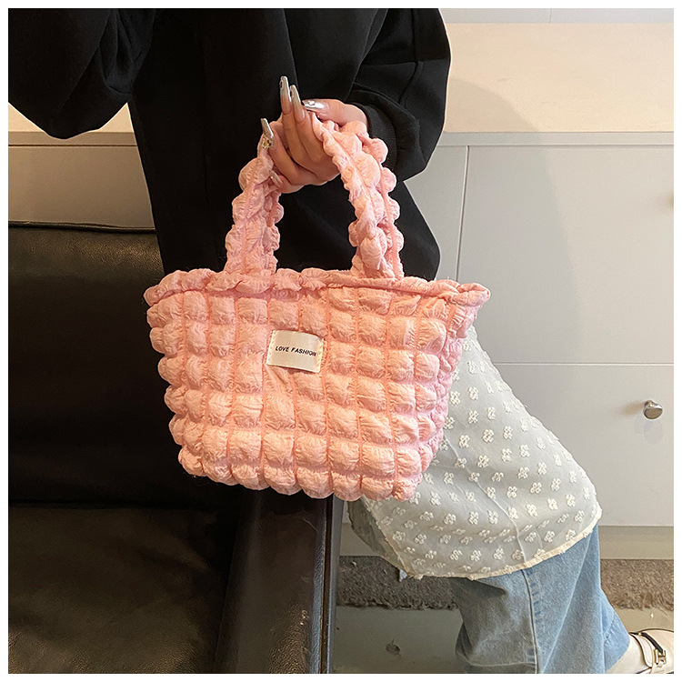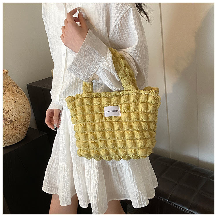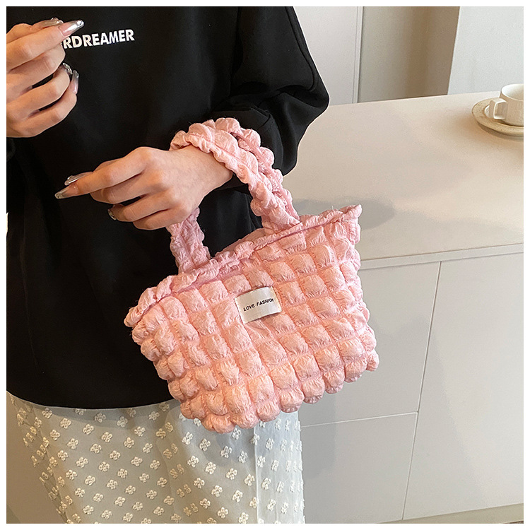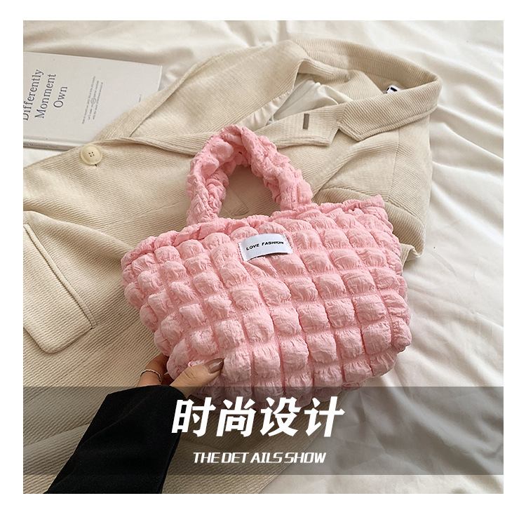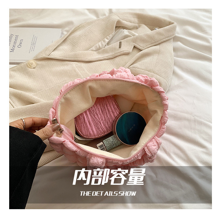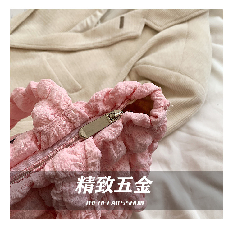 Versión coreana del nuevo bolso de hombro de color caramelo de corazón de niña pliegue de burbuja de nube simple bolso de gran capacidad mujer