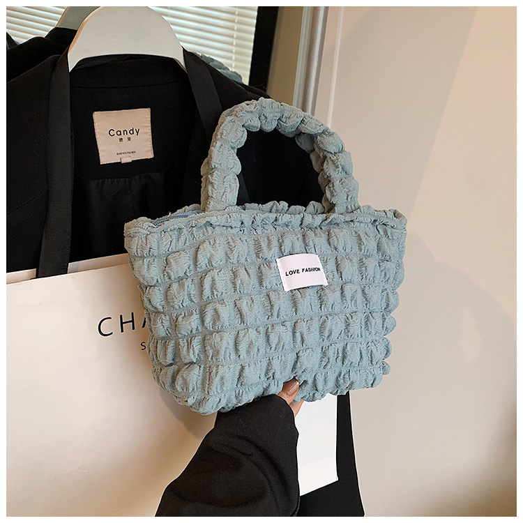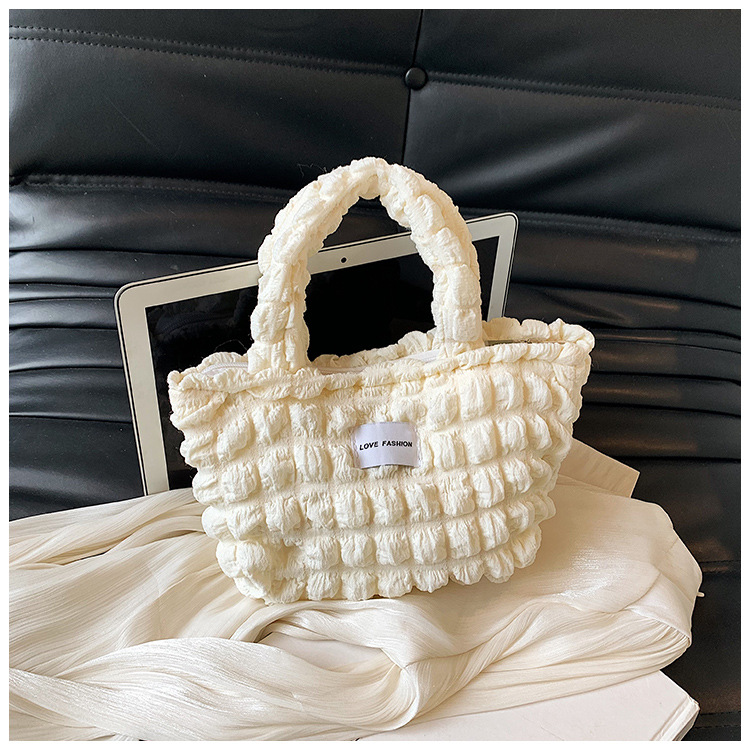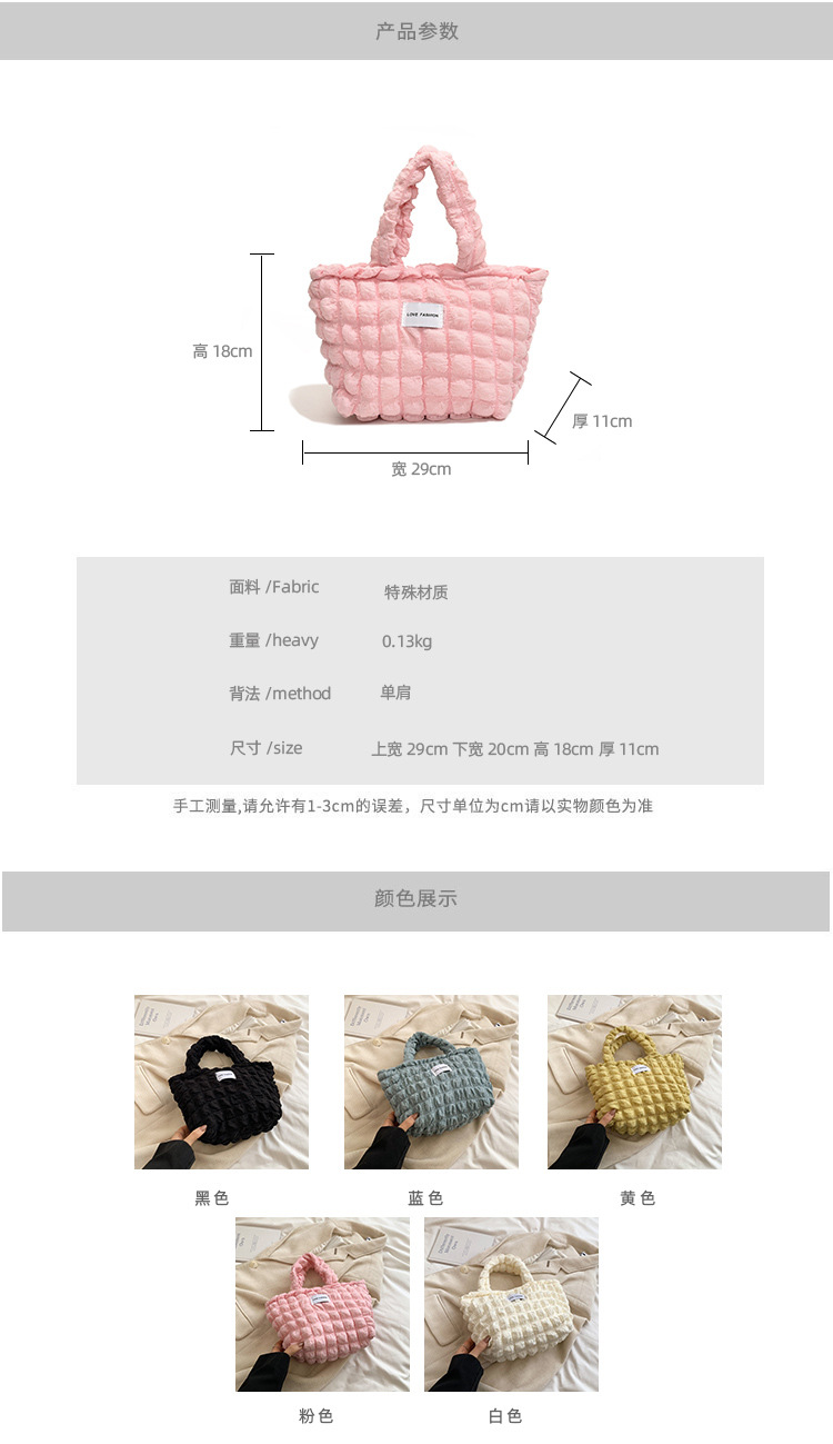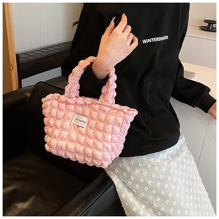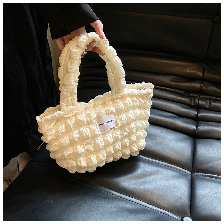 Versión coreana del nuevo bolso de hombro de color caramelo de corazón de niña pliegue de burbuja de nube simple bolso de gran capacidad mujer
