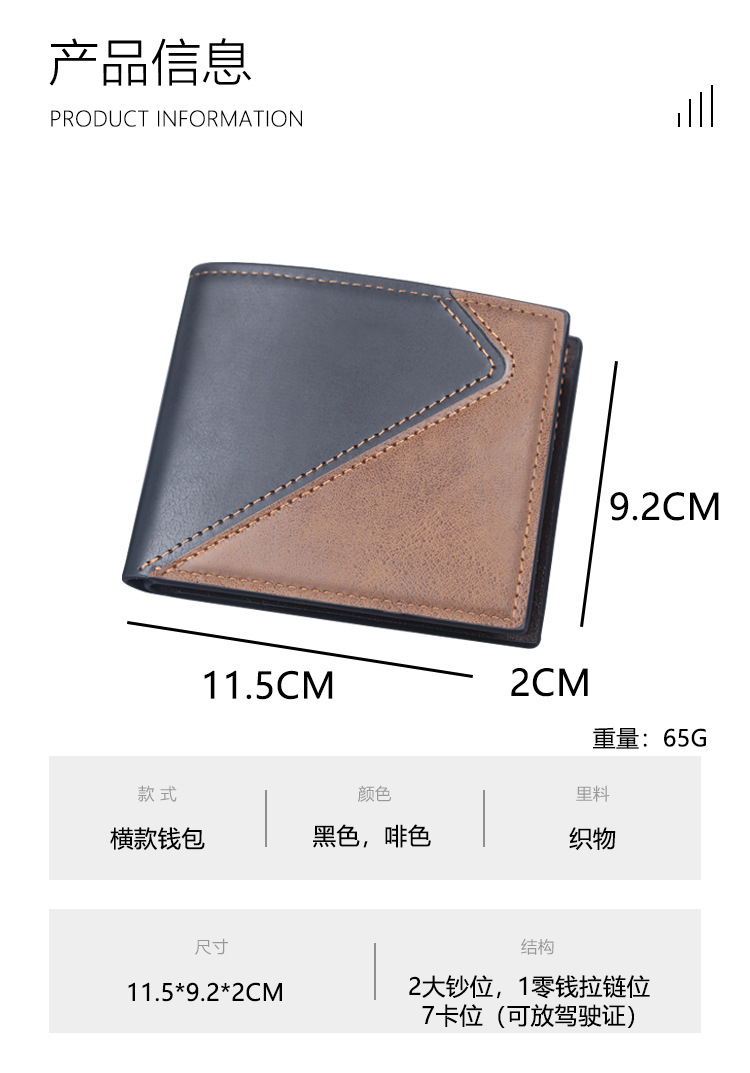 Nueva cartera de hombre, cartera de tarjeta corta, cartera de licencia de conducir, cartera de hombre de gran capacidad, 30% de descuento.
