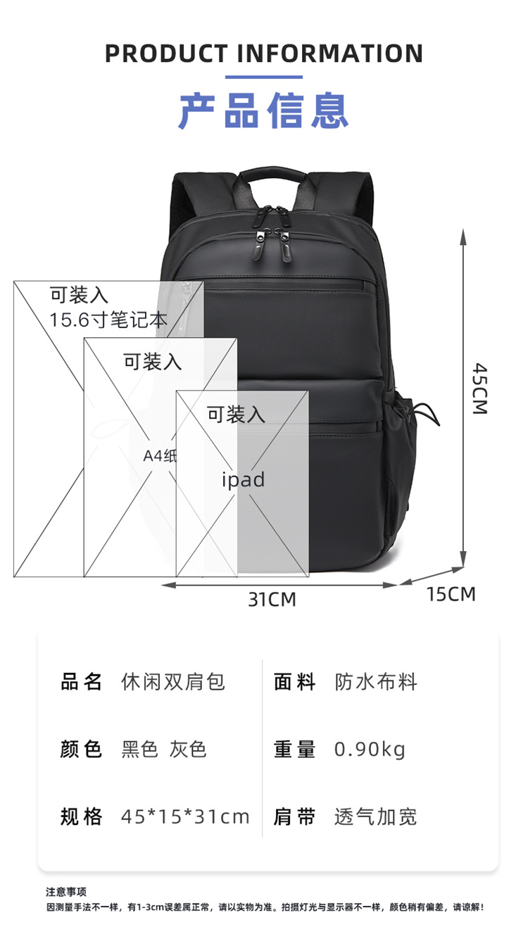 Viaje de negocios de viaje transfronterizo en el sitio simple mochila resistente al desgaste de viaje diario a prueba de rociadores bolso de computadora de gran capacidad