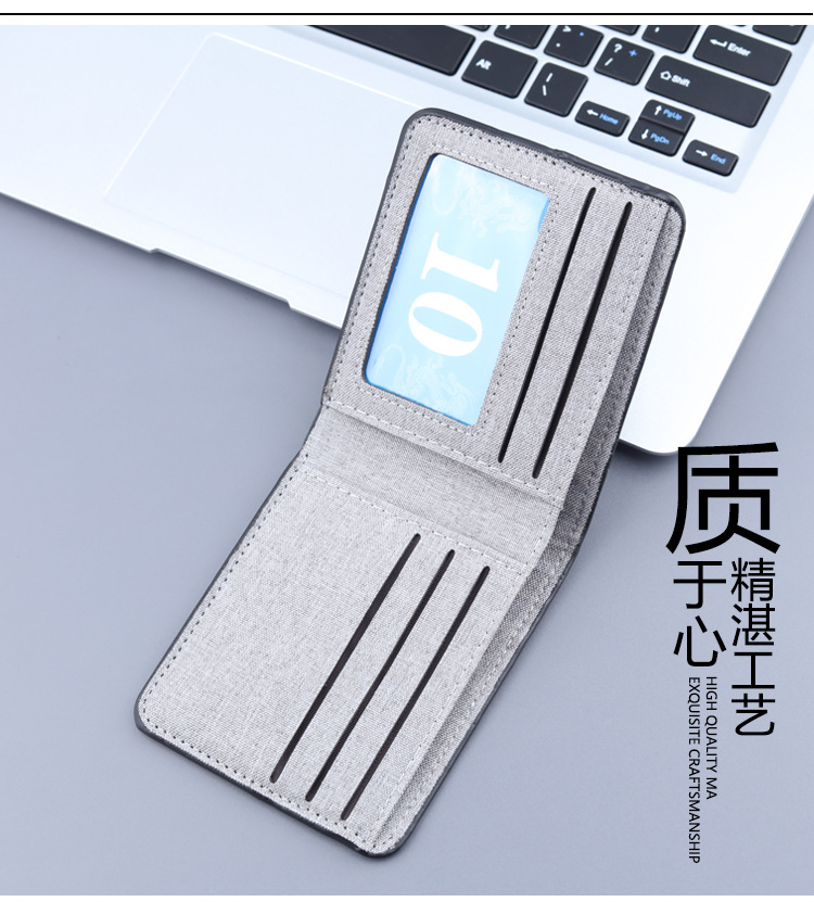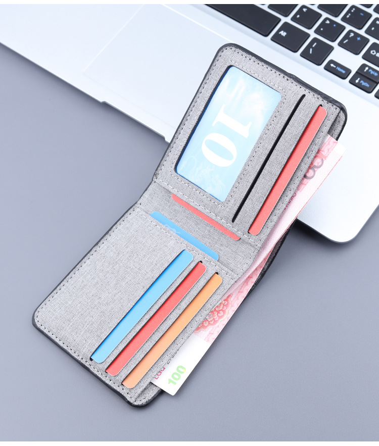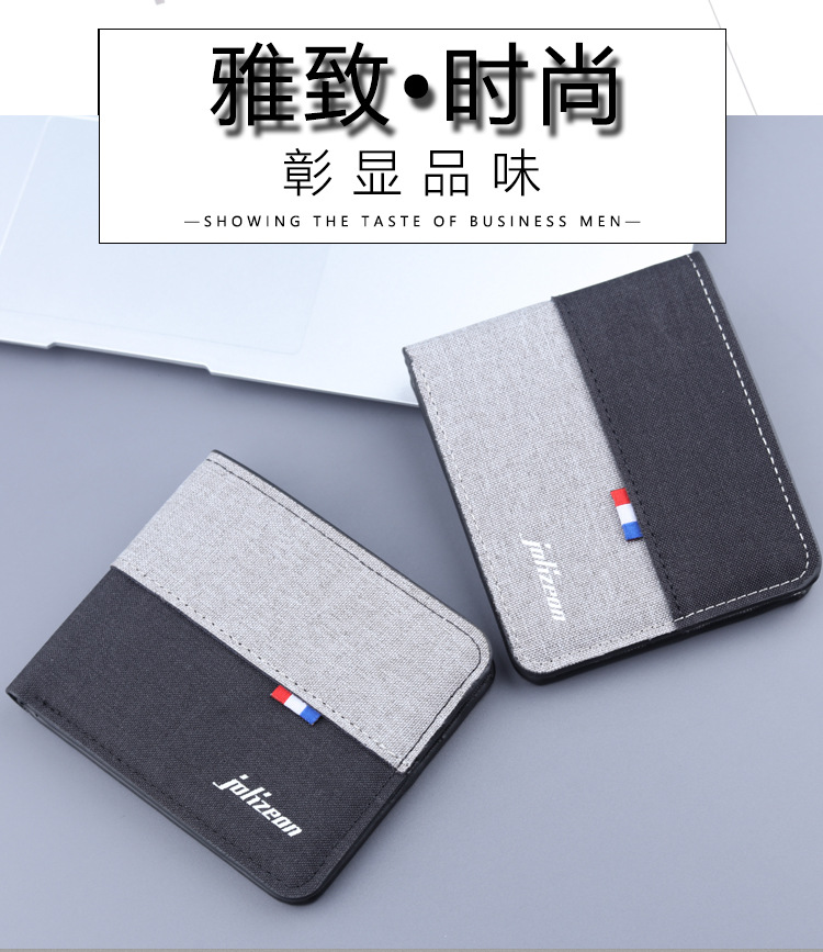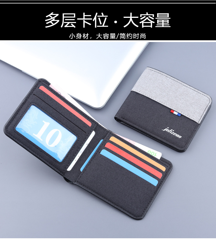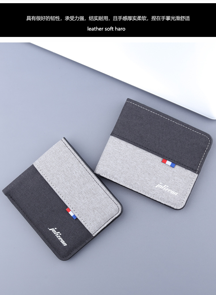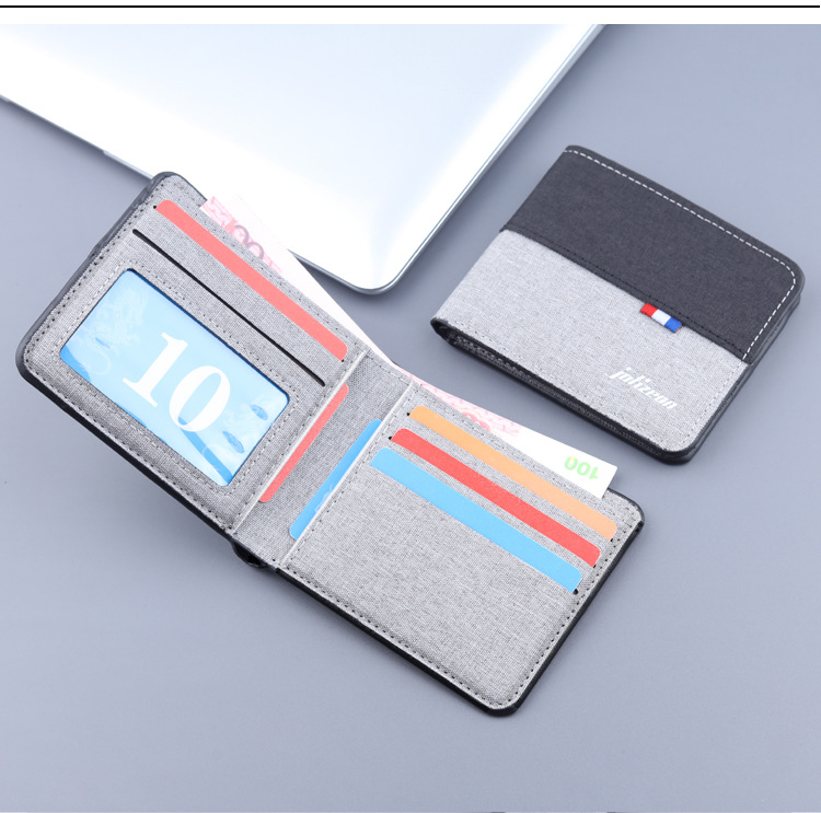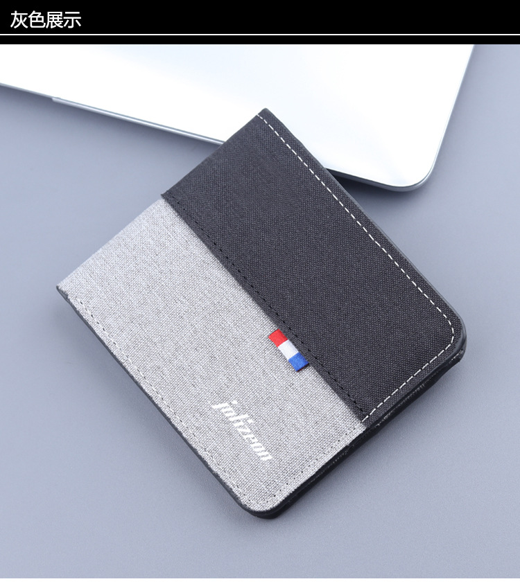 Cartera de lona plegable bolsa de denim para hombre billetera de hombre contraste de color clip corto billetera de hombre fábrica al por mayor