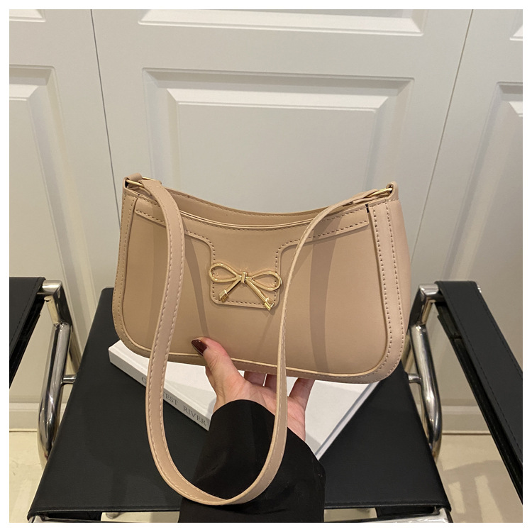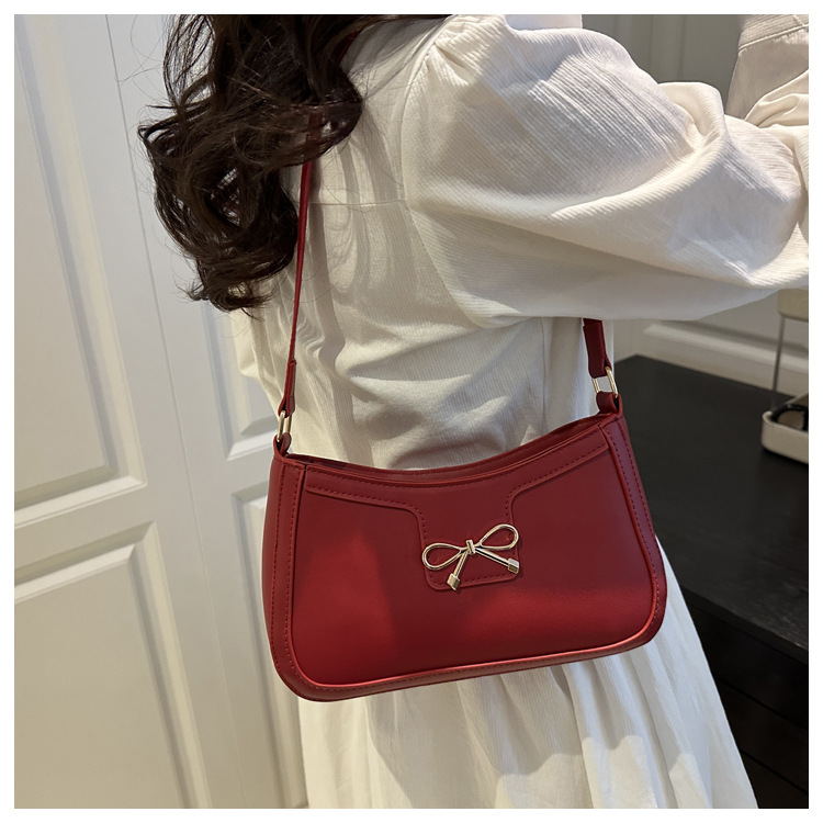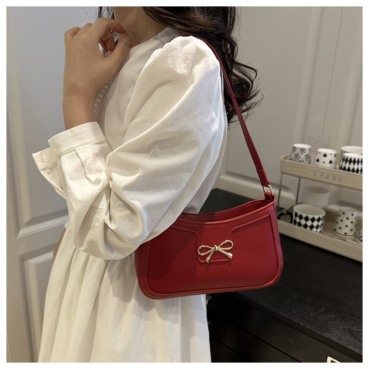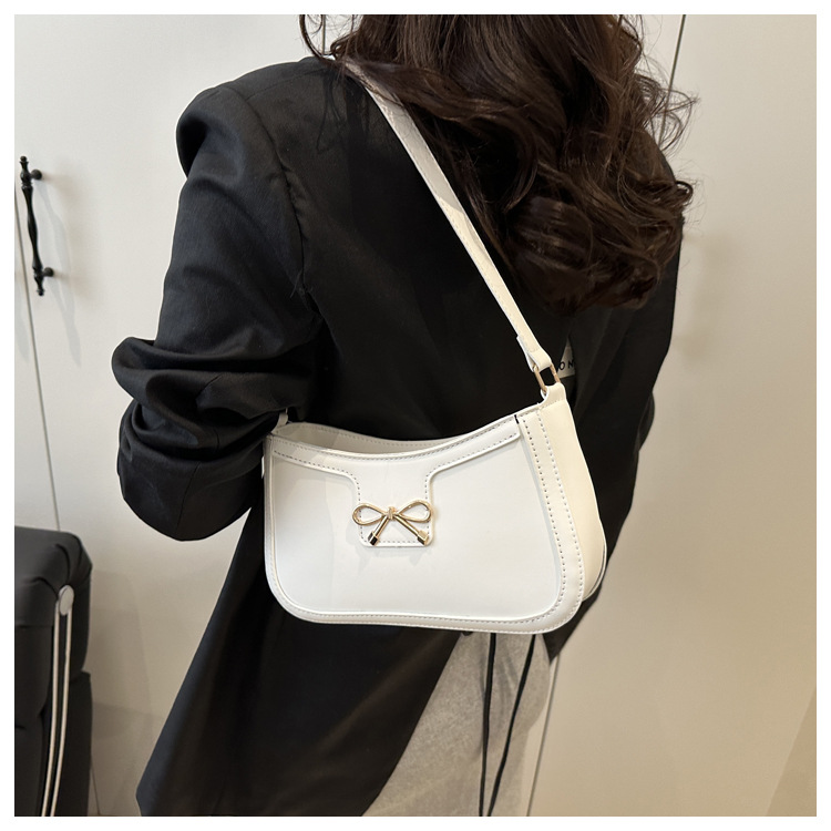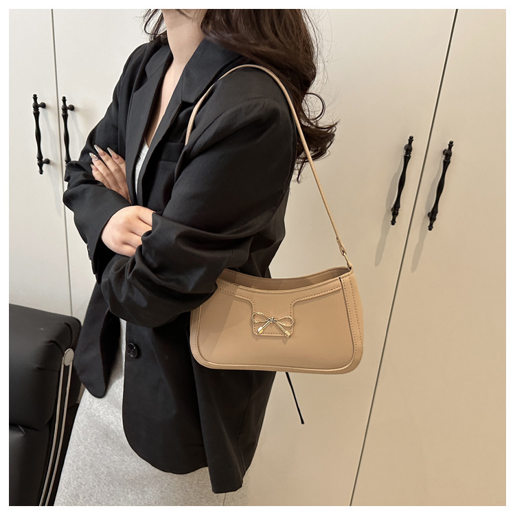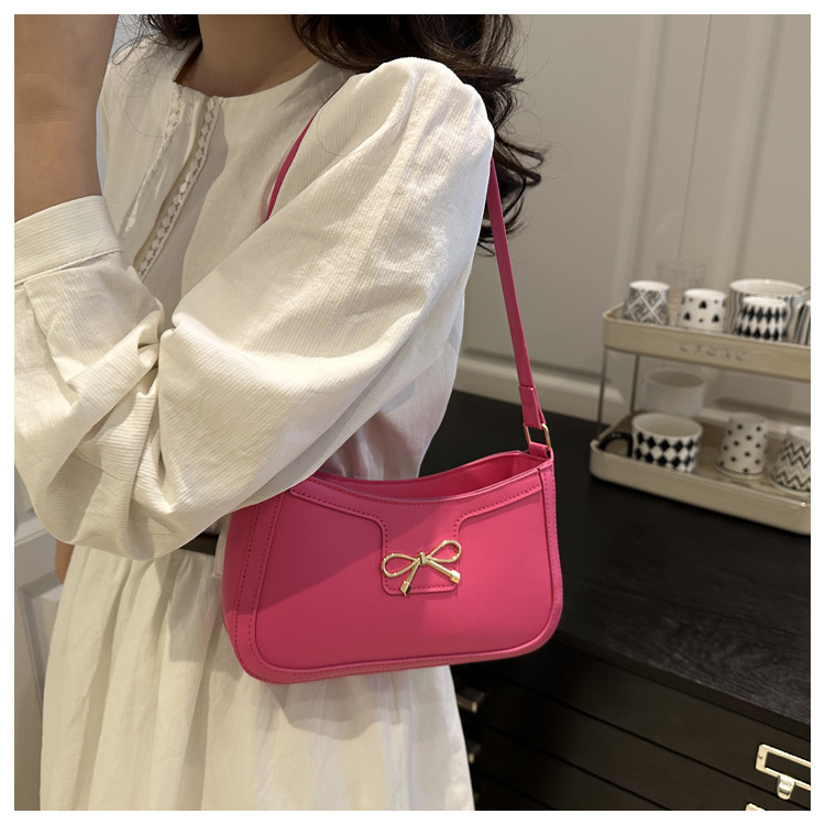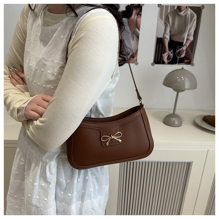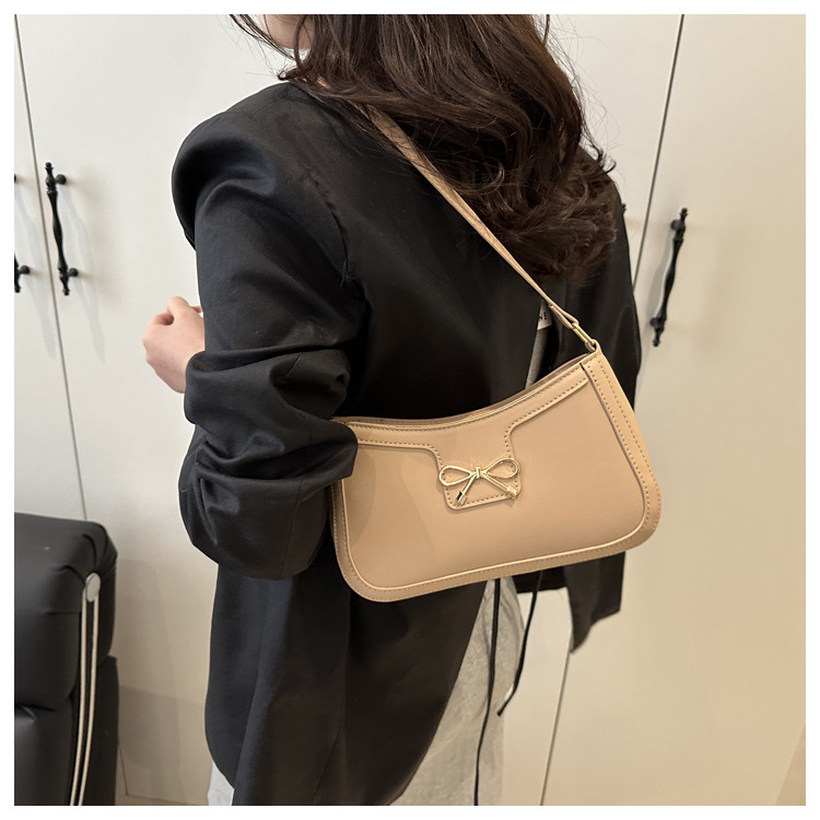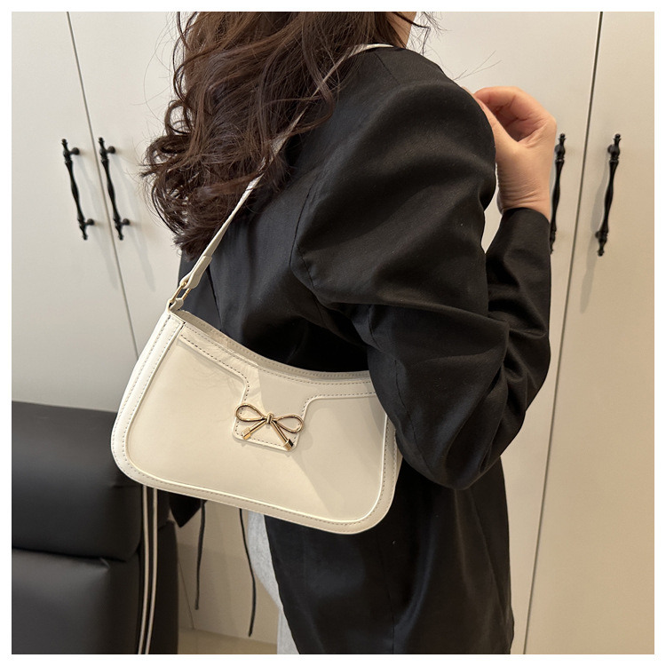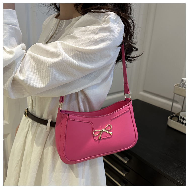 Bolso de hombro popular de este año con lazo para damas de gran capacidad 2025 color sólido nuevo bolso de axila simple de textura de moda