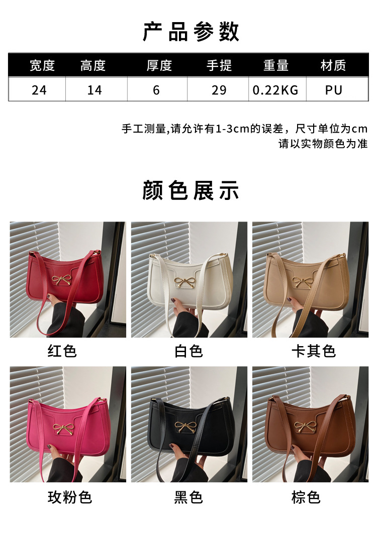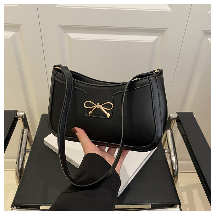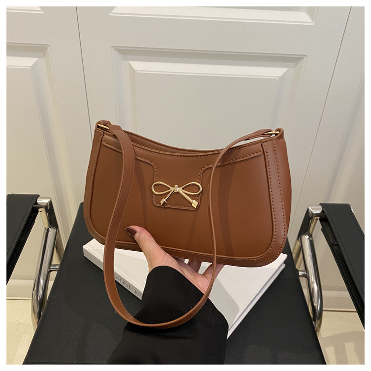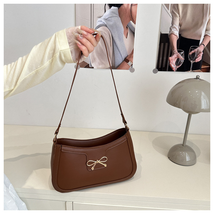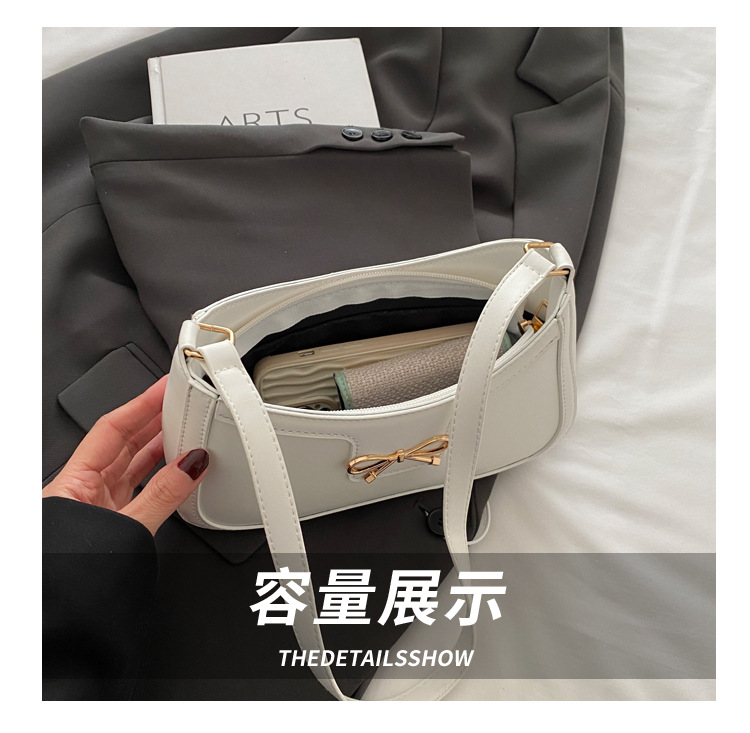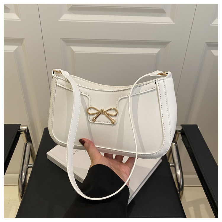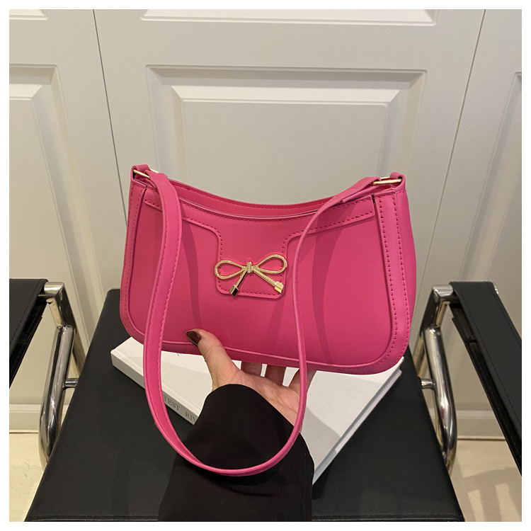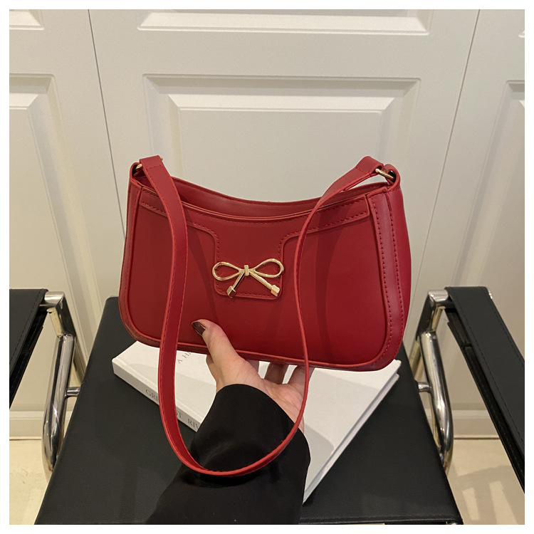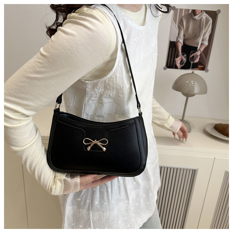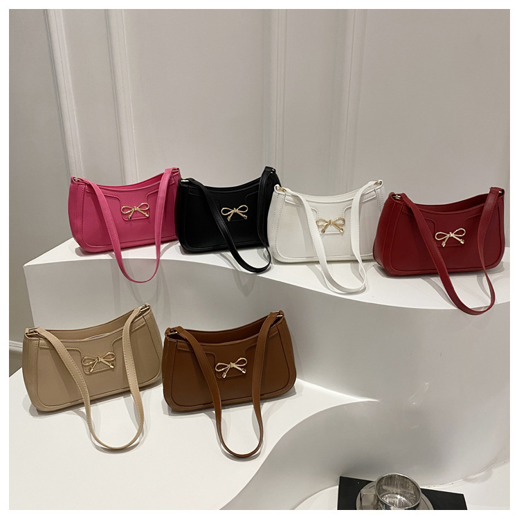 Bolso de hombro popular de este año con lazo para damas de gran capacidad 2025 color sólido nuevo bolso de axila simple de textura de moda