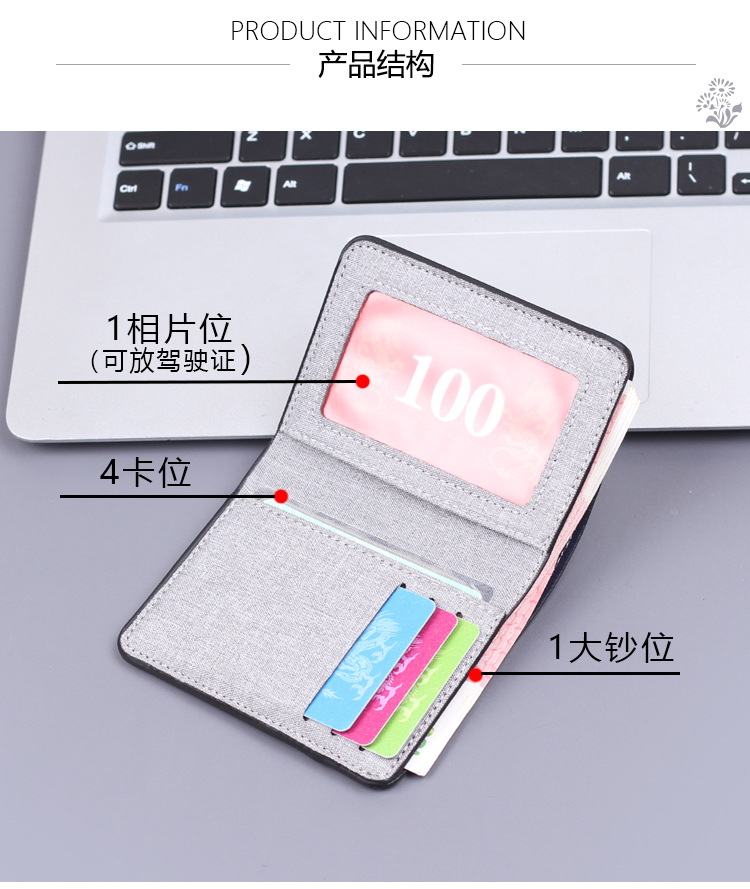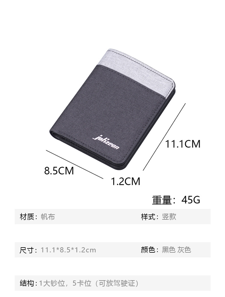Cartera de lona para hombres, bolsa de tarjetas para hombres, tela suave, cartera vertical para hombres, 5 tarjetas, cartera corta para hombres, ultra delgada
