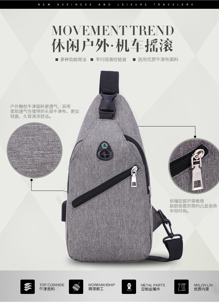 Bolso de pecho de los hombres simple multifuncional Oxford tela deportes ligero todo-fósforo bolso de hombro bolso de mensajero de estudiante de moda de los hombres
