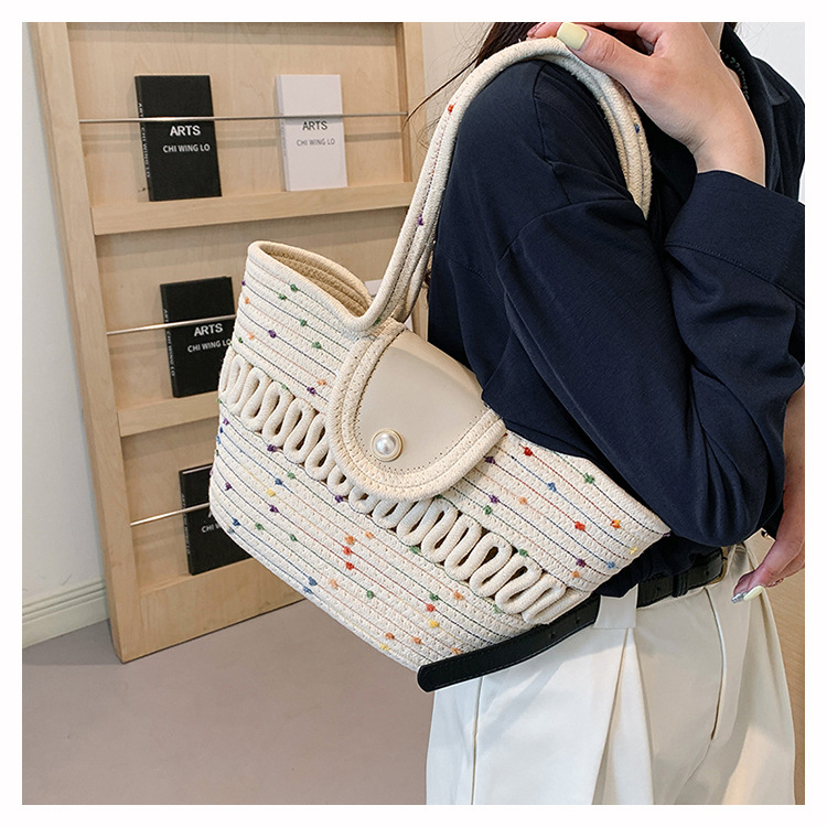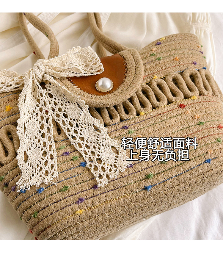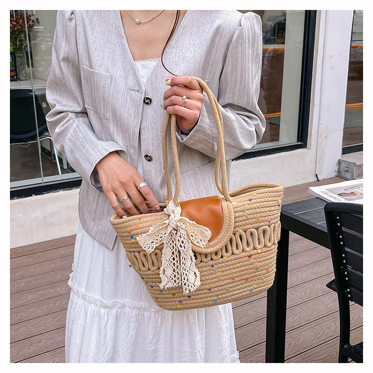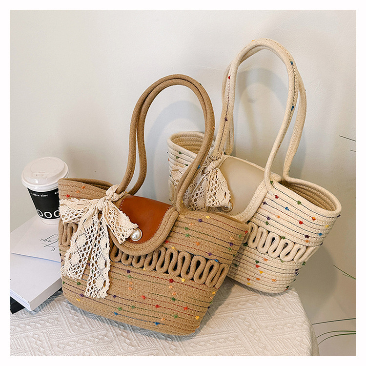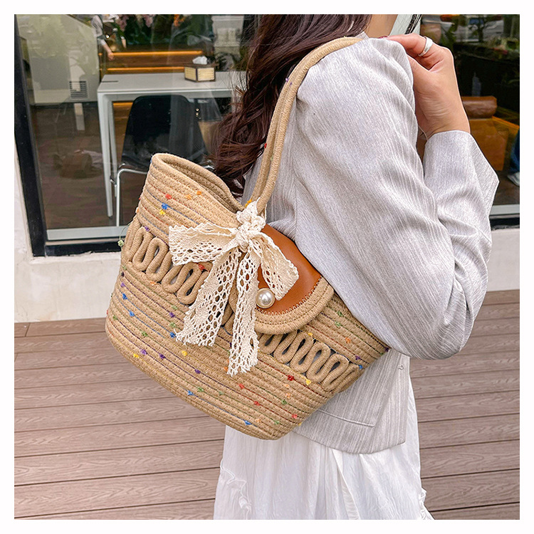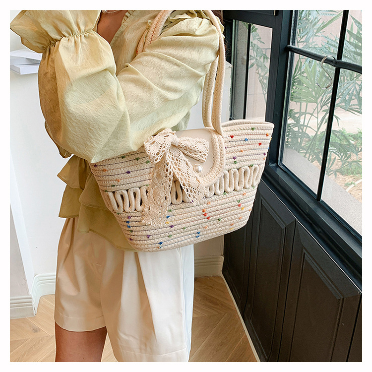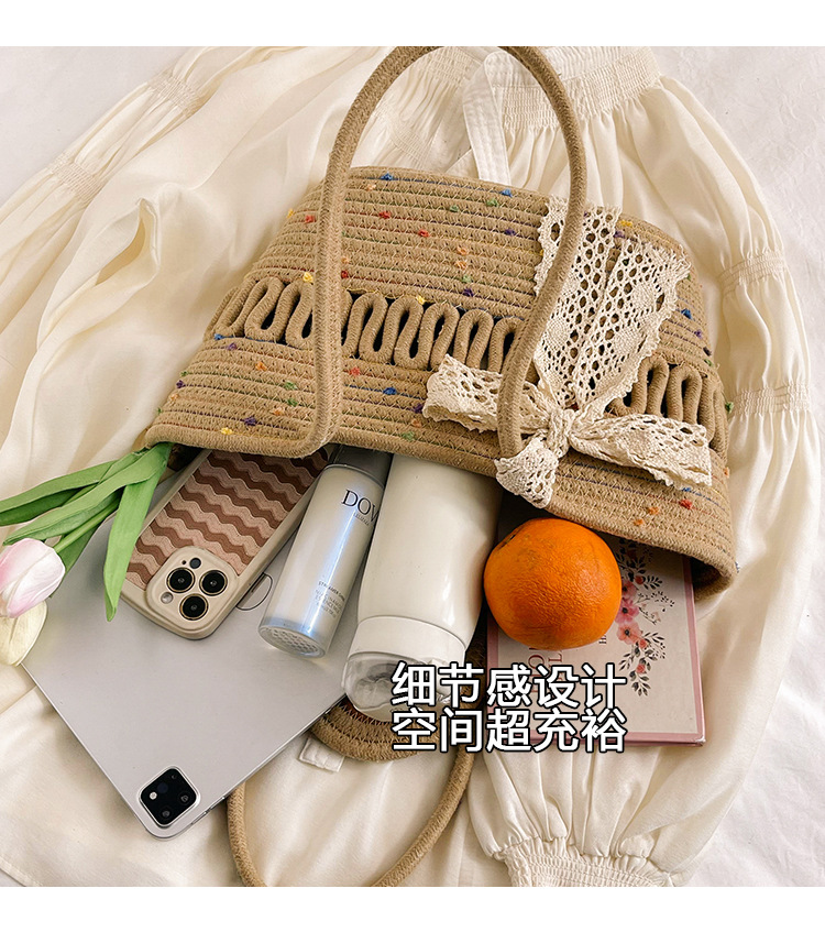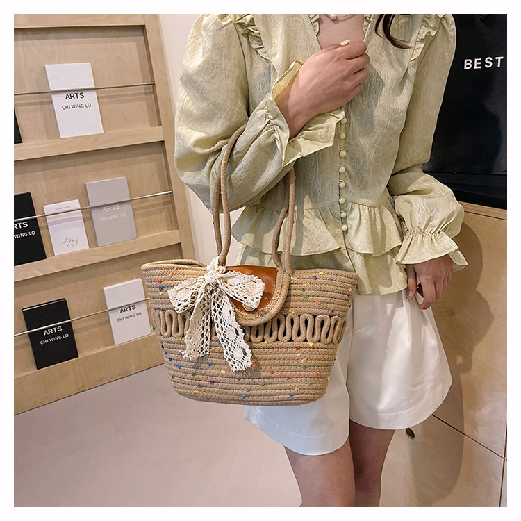 Bolsa de hombro de algodón hueco nueva bolsa de verano de gran capacidad francesa de paja bolsa de vacaciones de playa bolsa de mujer