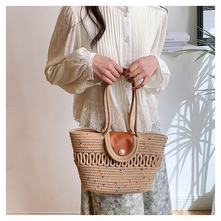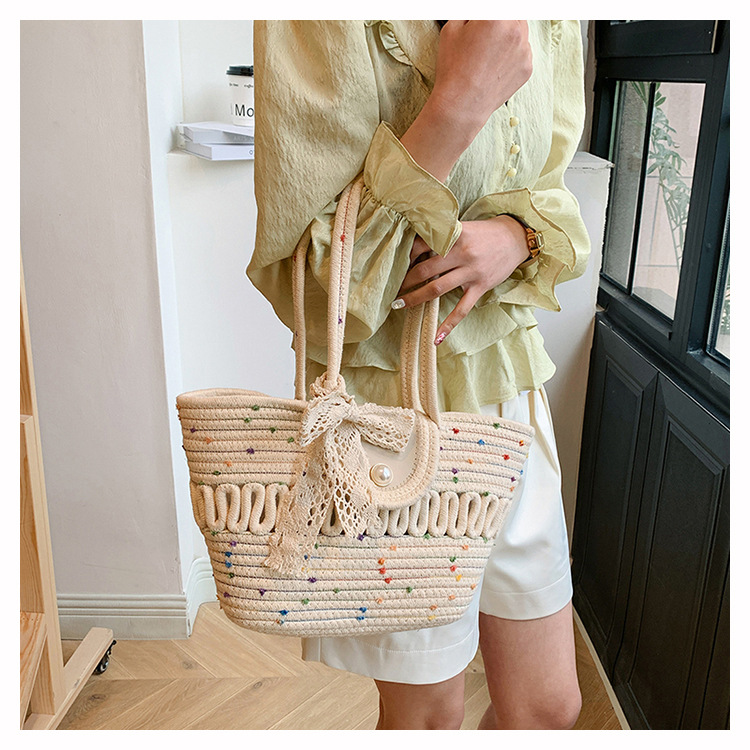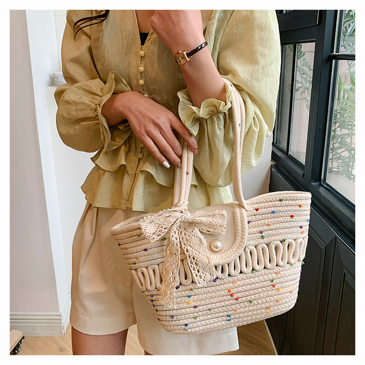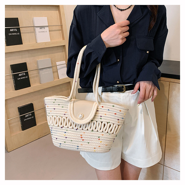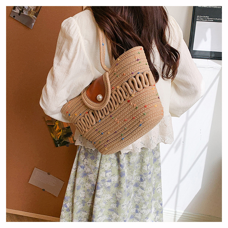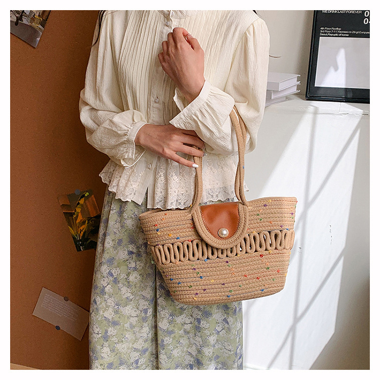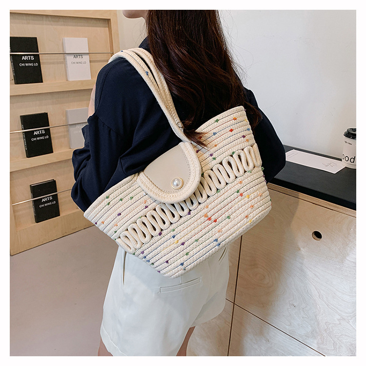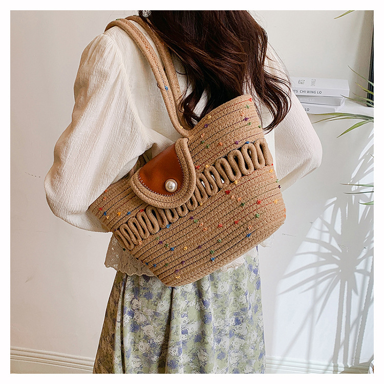 Bolsa de hombro de algodón hueco nueva bolsa de verano de gran capacidad francesa de paja bolsa de vacaciones de playa bolsa de mujer