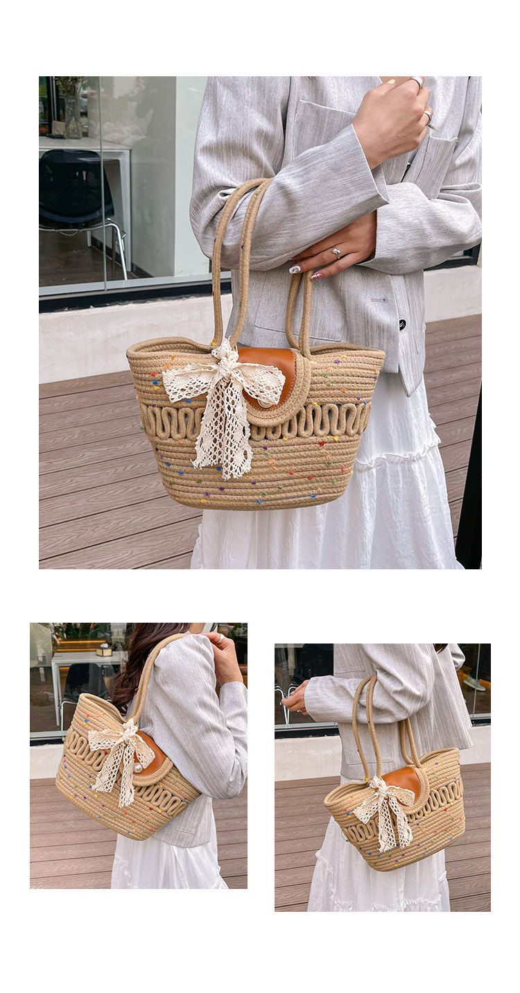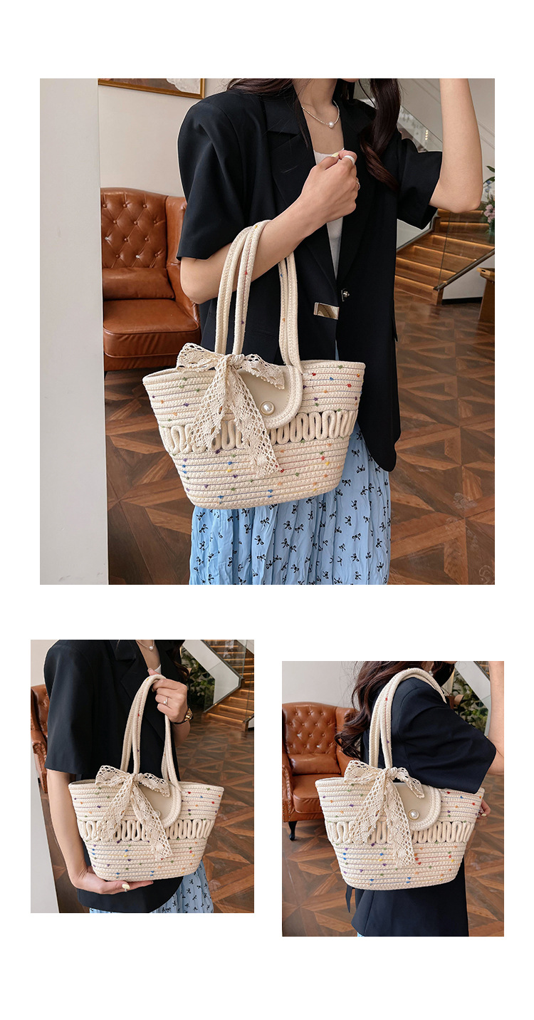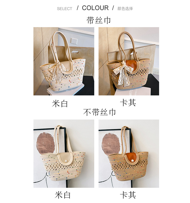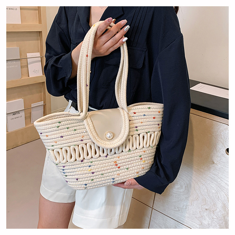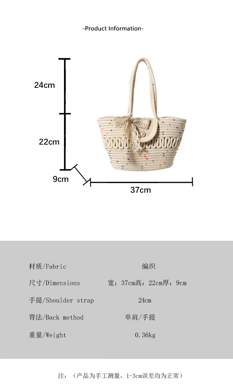 Bolsa de hombro de algodón hueco nueva bolsa de verano de gran capacidad francesa de paja bolsa de vacaciones de playa bolsa de mujer