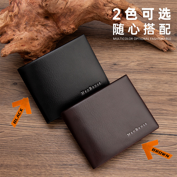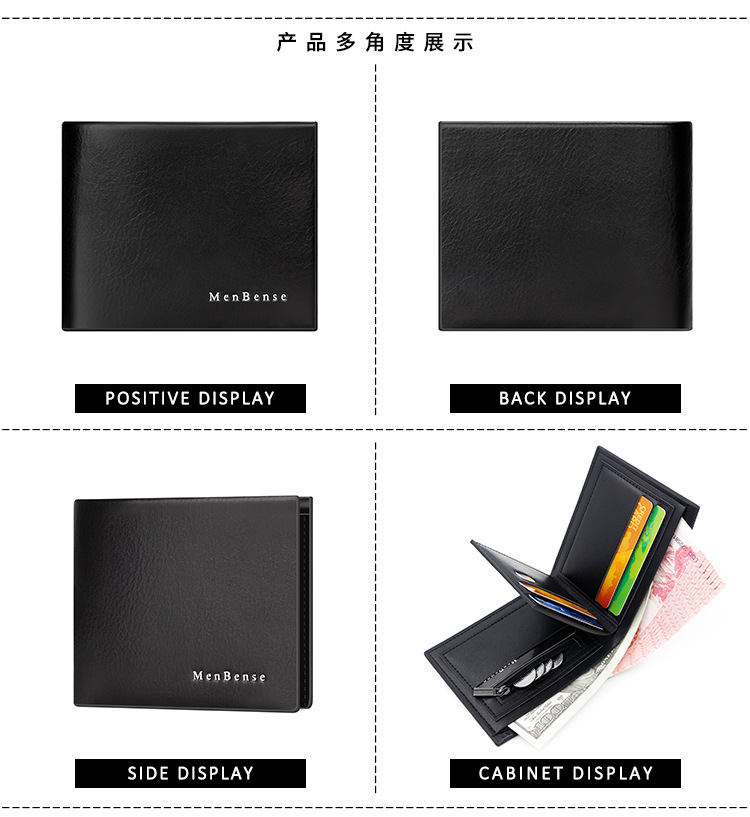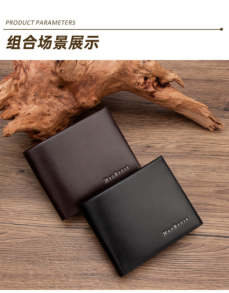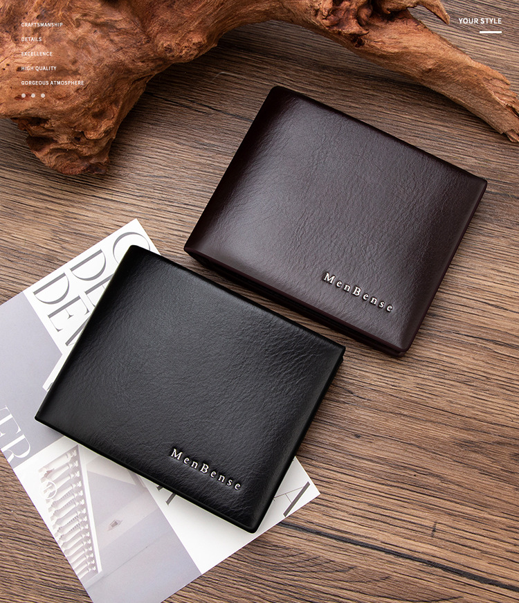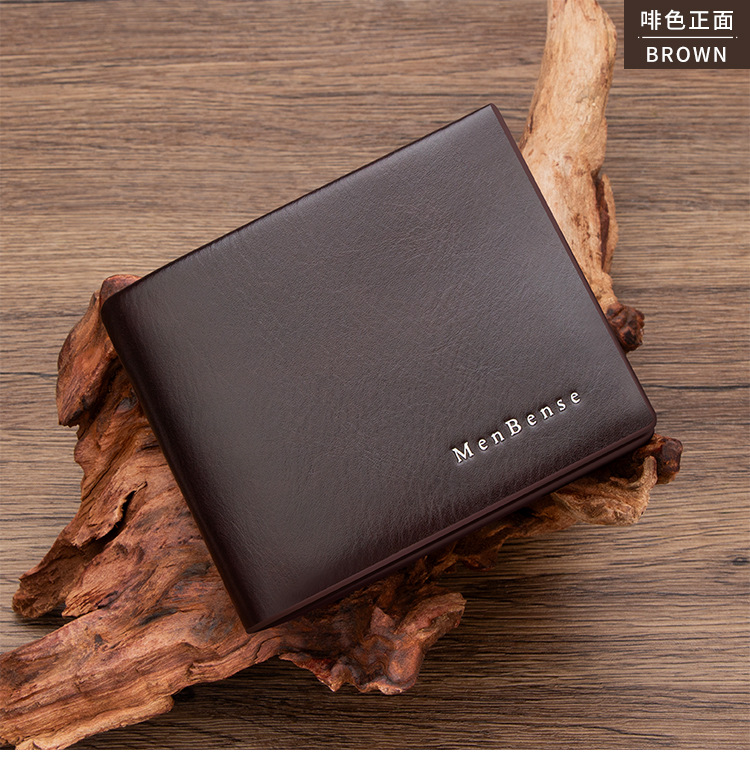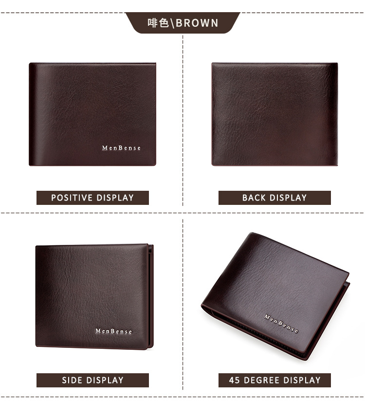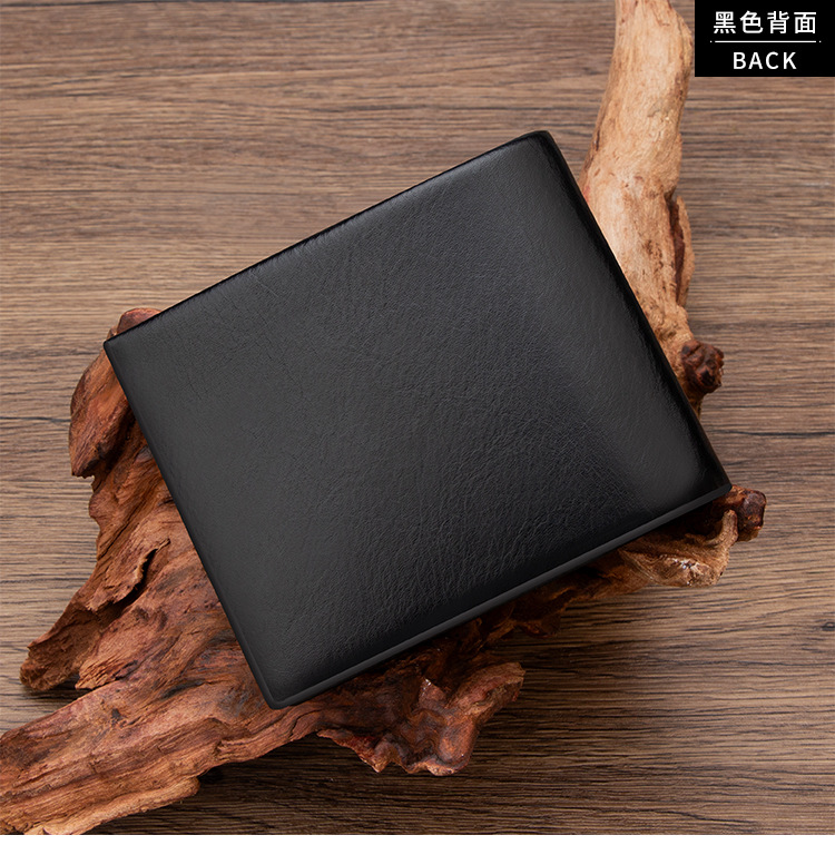 Ventas transfronterizas calientes de textura de cuero real cartera horizontal de negocios de hombre cartera corta de cuero de tres plegados cartera de moda de bisagra de hombre