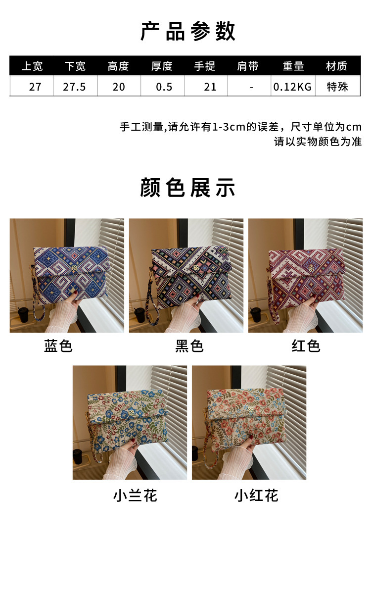 | Color | Negro, rojo, azul, orquídeas pequeñas, flores rojas pequeñas |