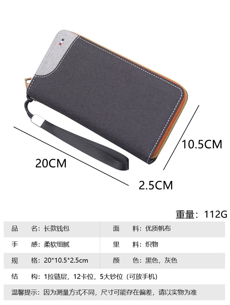 Bolso de lona de hombre bolso de teléfono móvil de hombre gran capacidad larga billetera con cremallera de hombre bolso de mano de hombre pulsera de hombre
