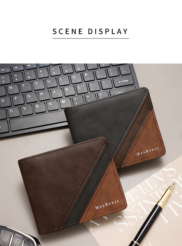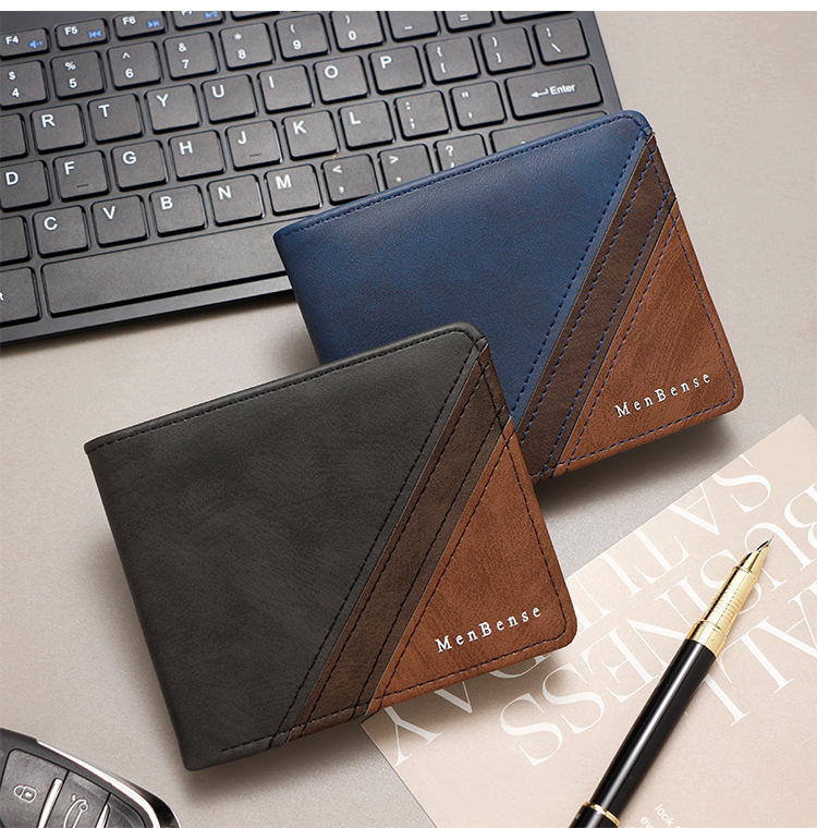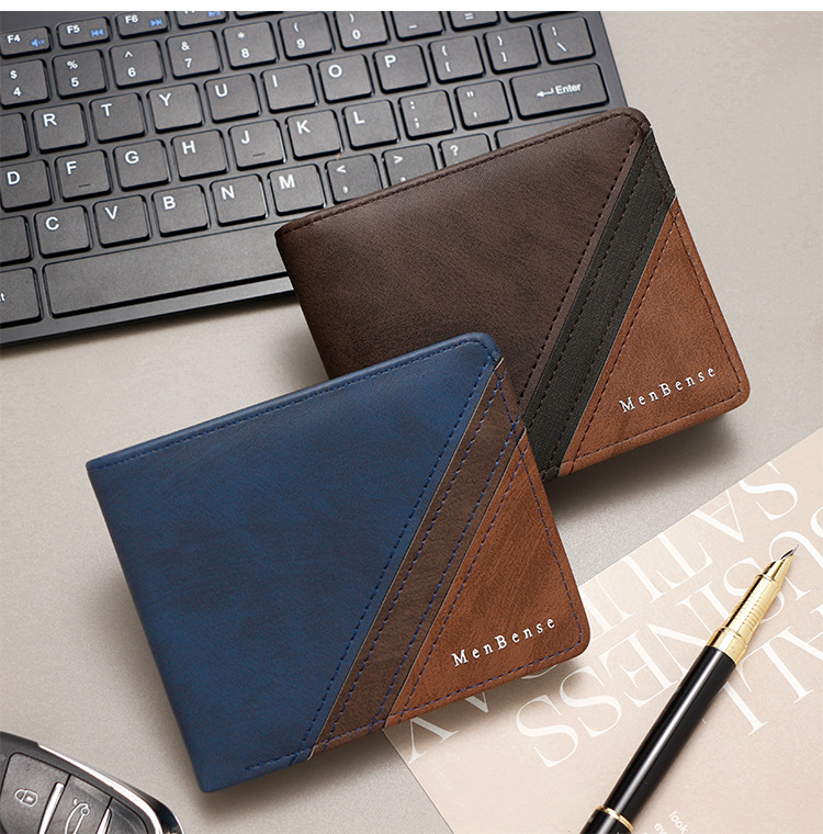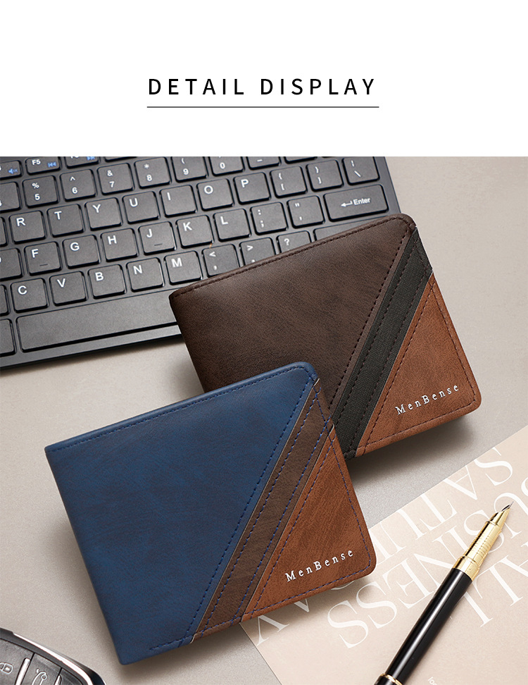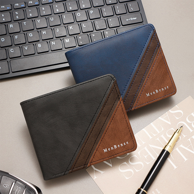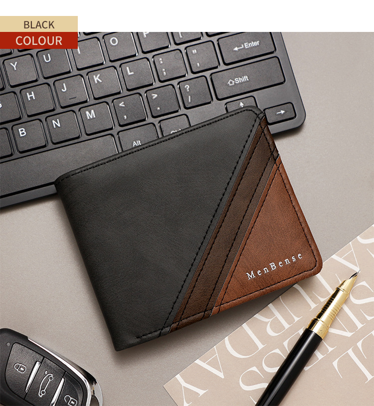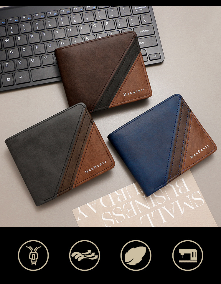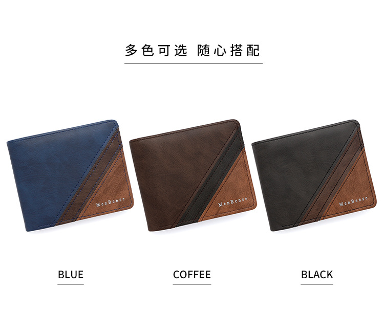 Costuras de moda, colores contrastantes, carteras cortas para hombres, bolsas de tres pliegues, carteras para hombres, carteras, carteras, carteras, carteras, carteras, carteras, carteras, fuentes de comercio exterior