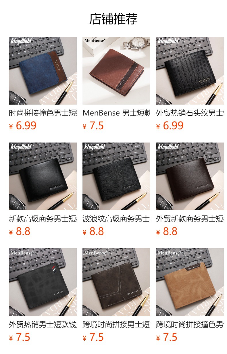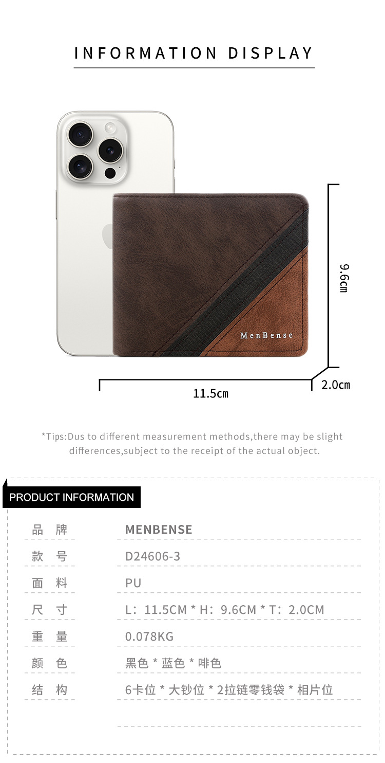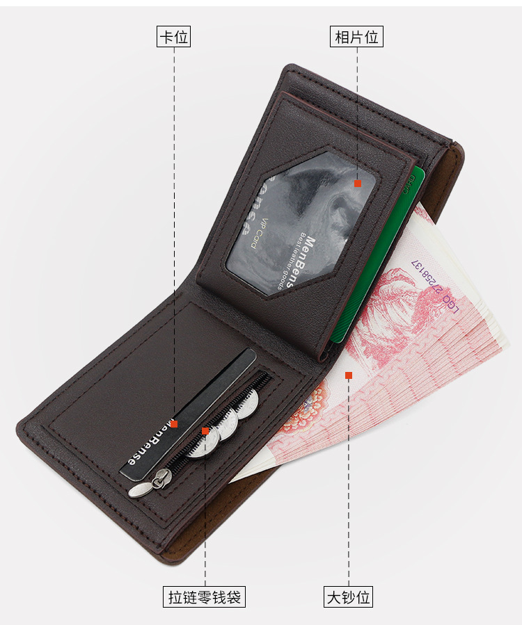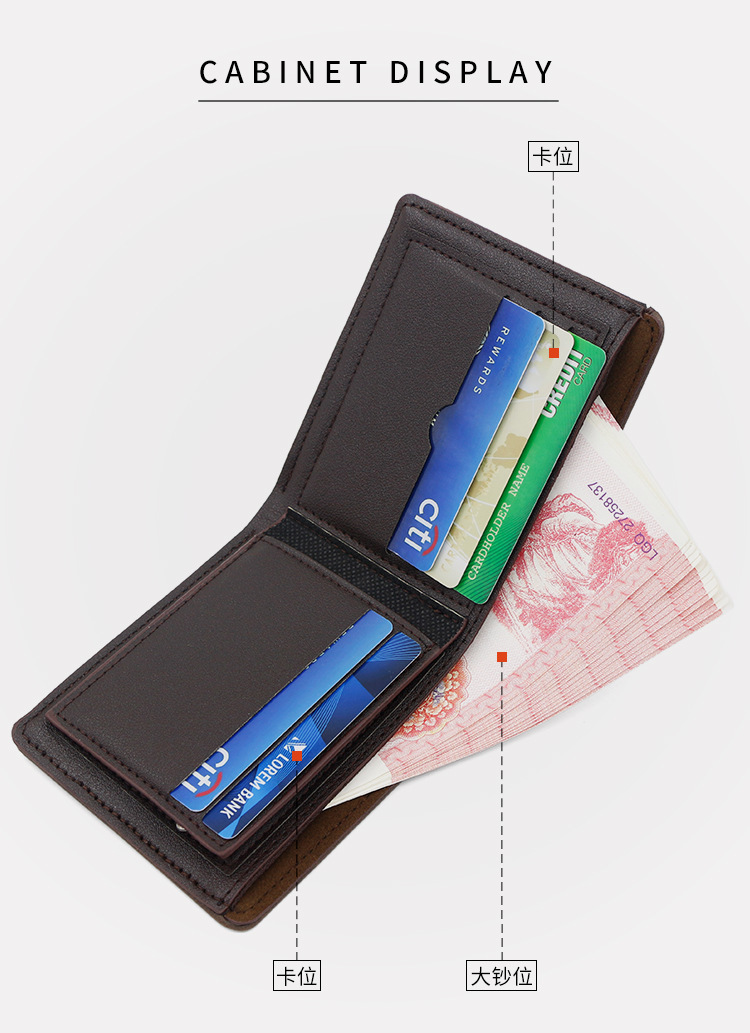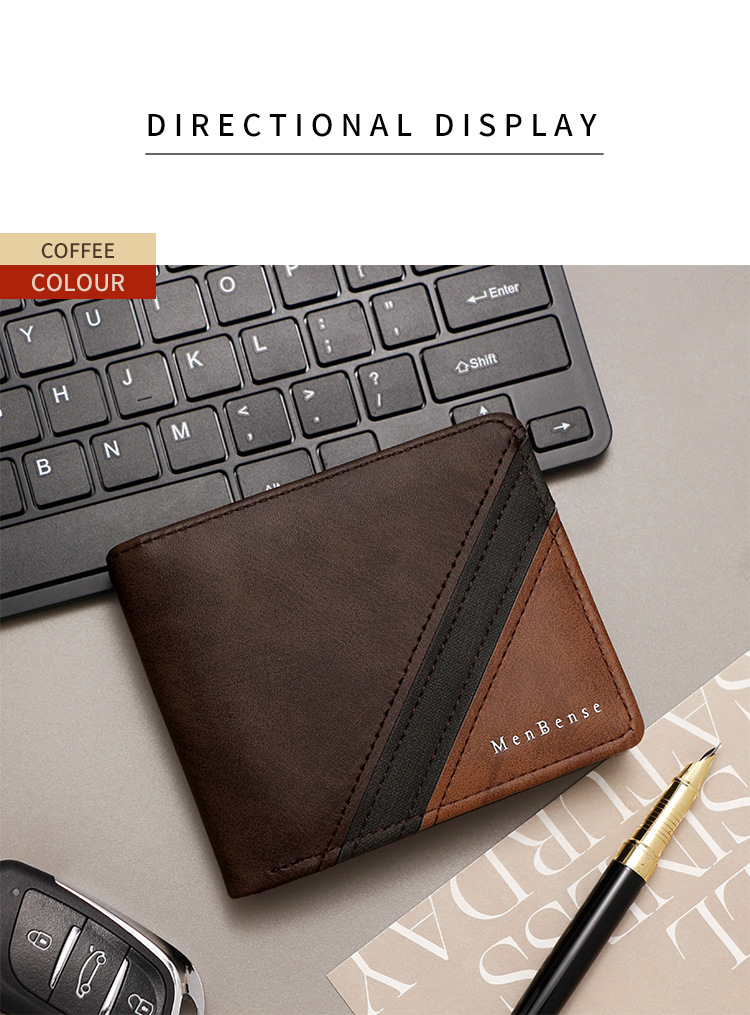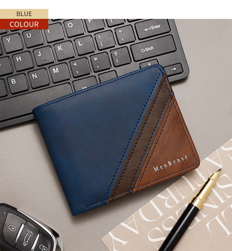 Costuras de moda, colores contrastantes, carteras cortas para hombres, bolsas de tres pliegues, carteras para hombres, carteras, carteras, carteras, carteras, carteras, carteras, carteras, fuentes de comercio exterior