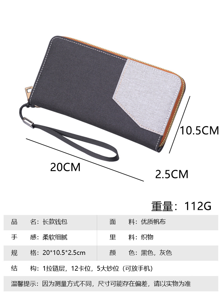 Bolso de mano de hombre, bolso de lona de hombre, bolso de teléfono móvil de hombre, correa de muñeca de color antiguo, bolso de cremallera de hombre largo
