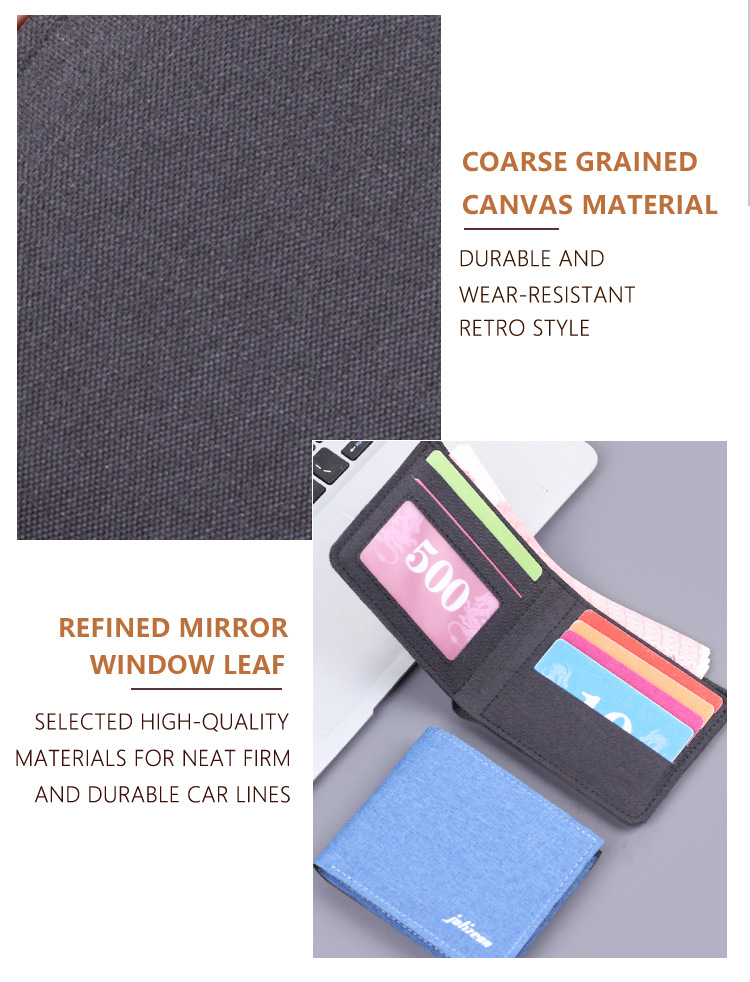 Bolso de lona para hombres bolso de dólares corto bolso de jeans para hombres bolso de tarjetas para hombres en una cartera para hombres