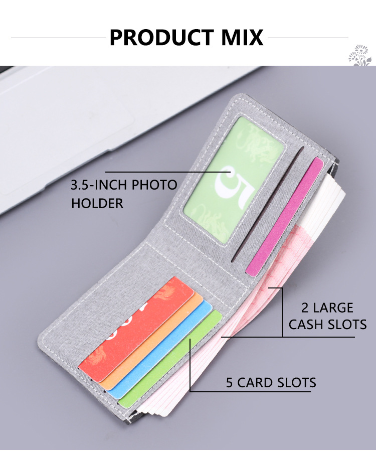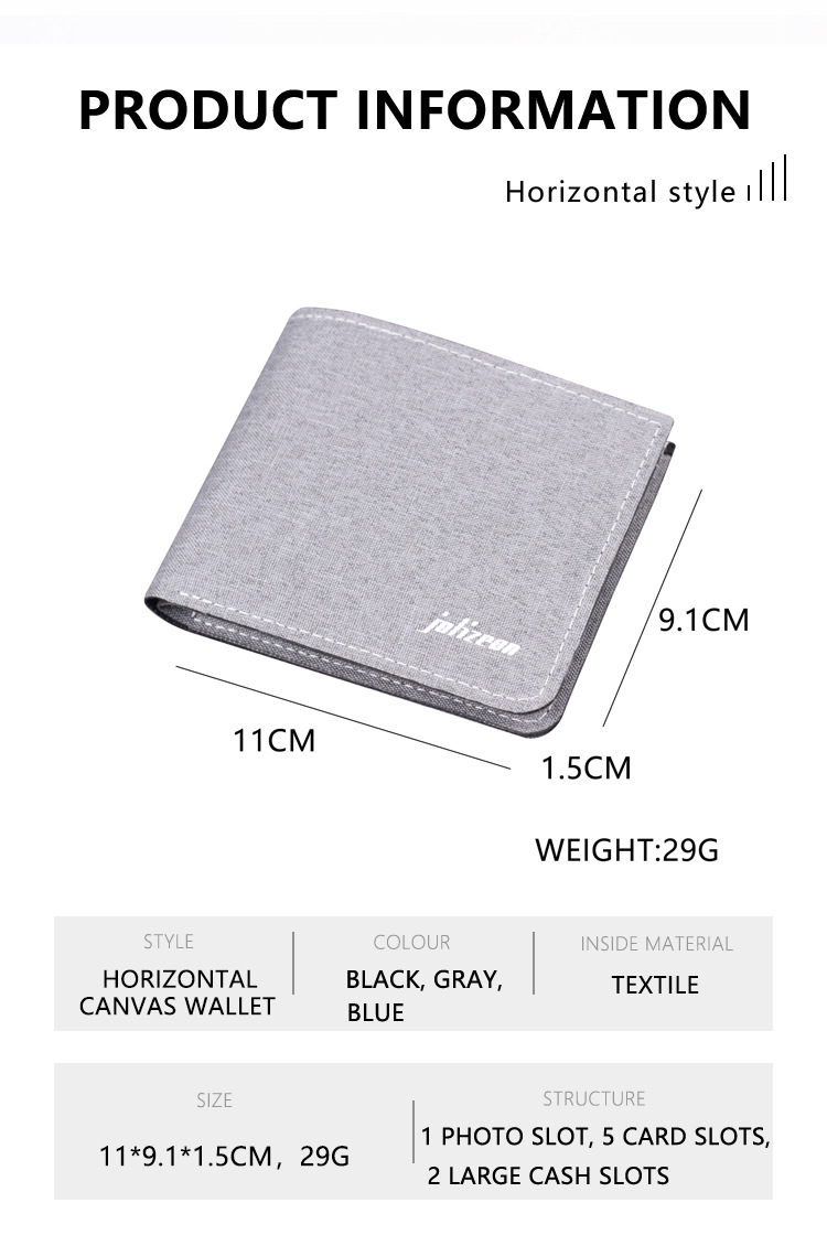 Cartera de lona de hombre cartera plegable bolso de dólar corto ultra delgado cartera de cuero de hombre doble cartera hombre