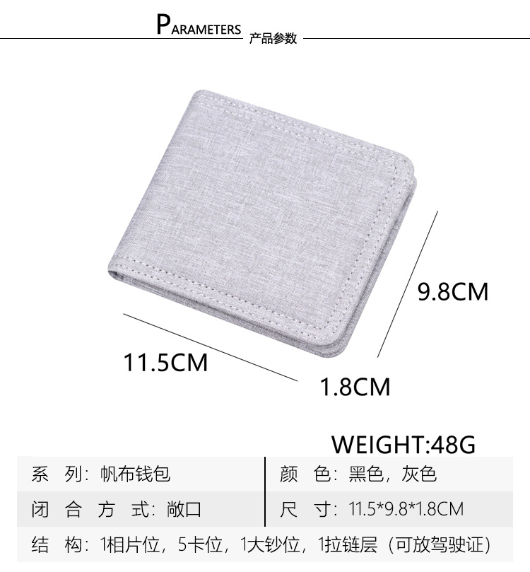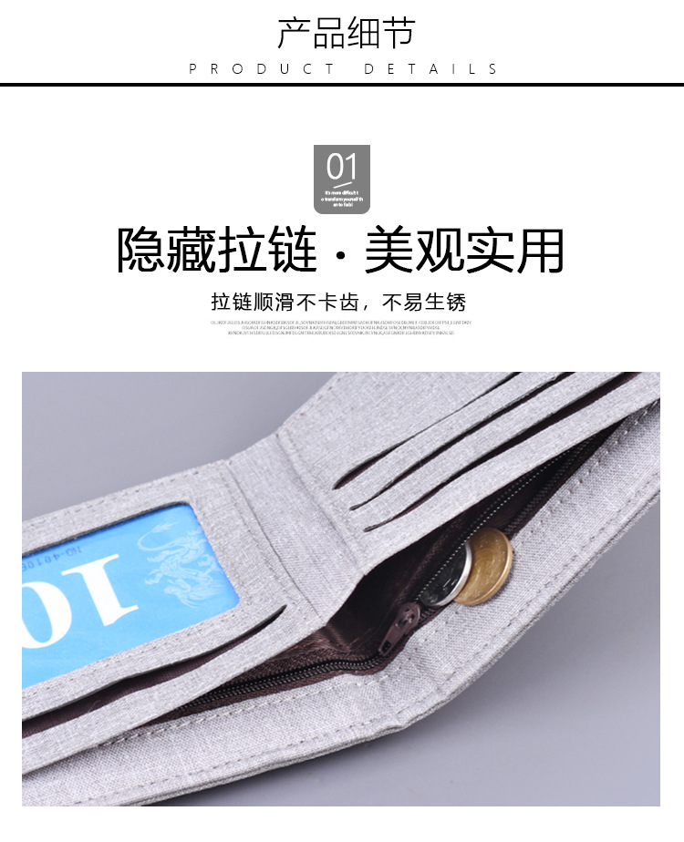 Canvas cartera corta para hombres con cremallera cartera de hombres cartera de tarjetas de hombres cartera de hombres en una cartera de hombre transfronteriza