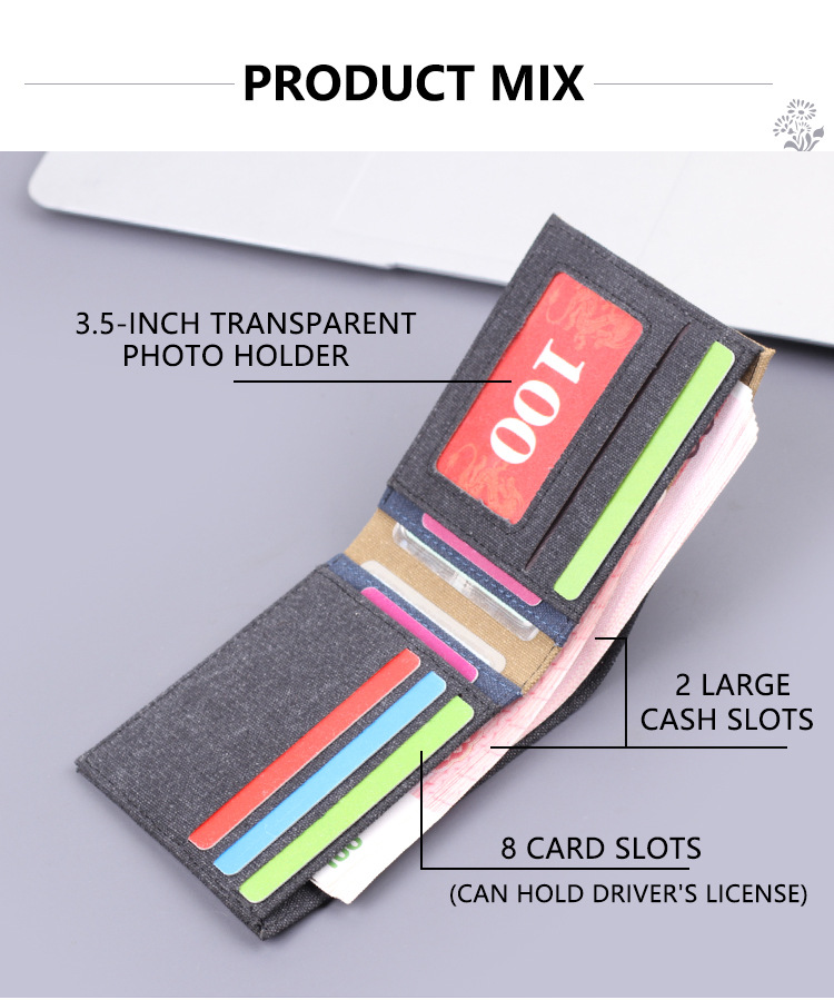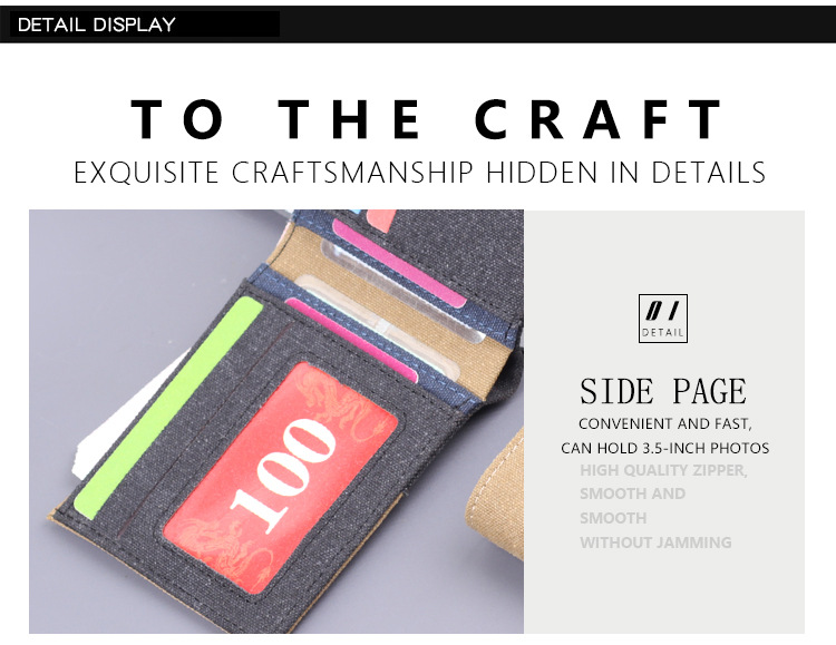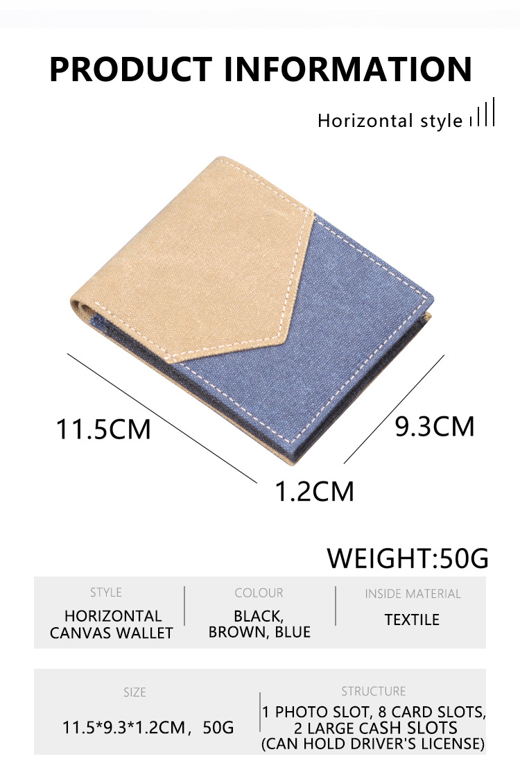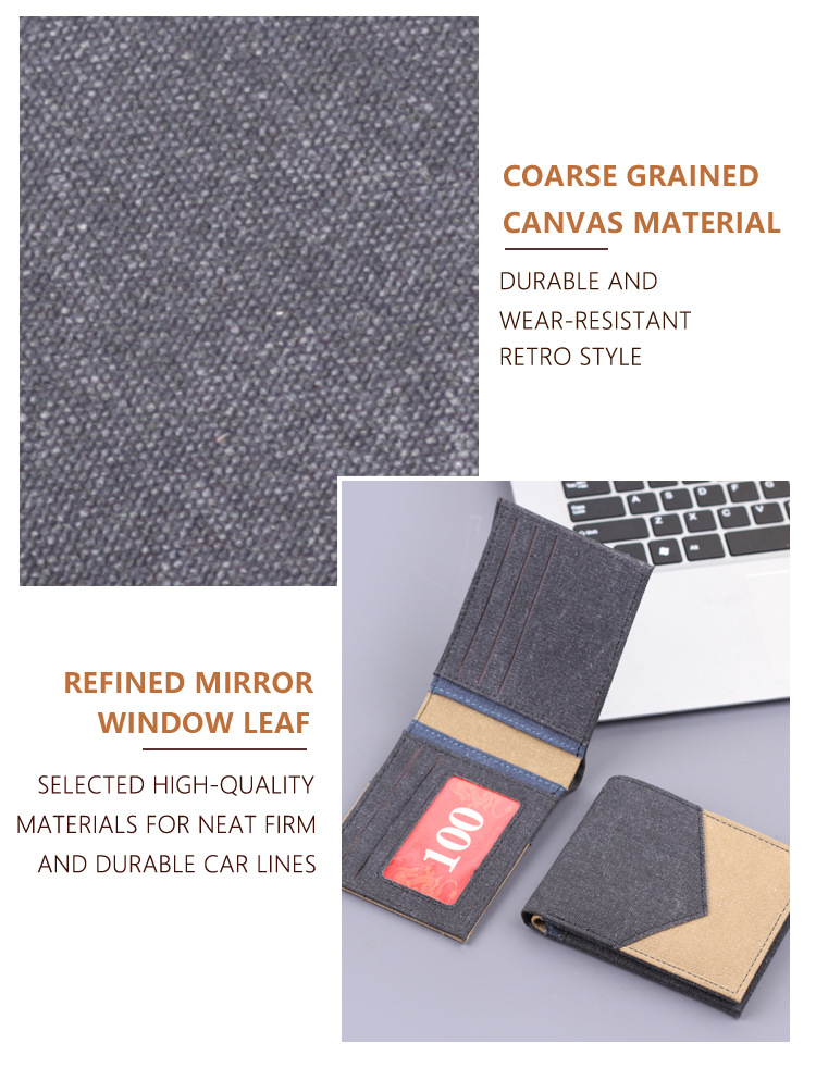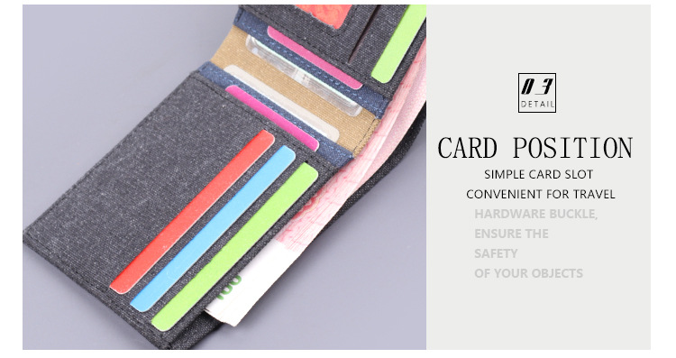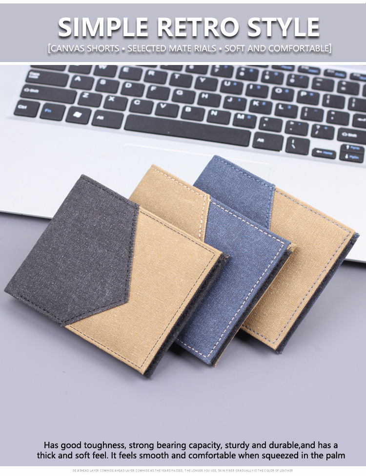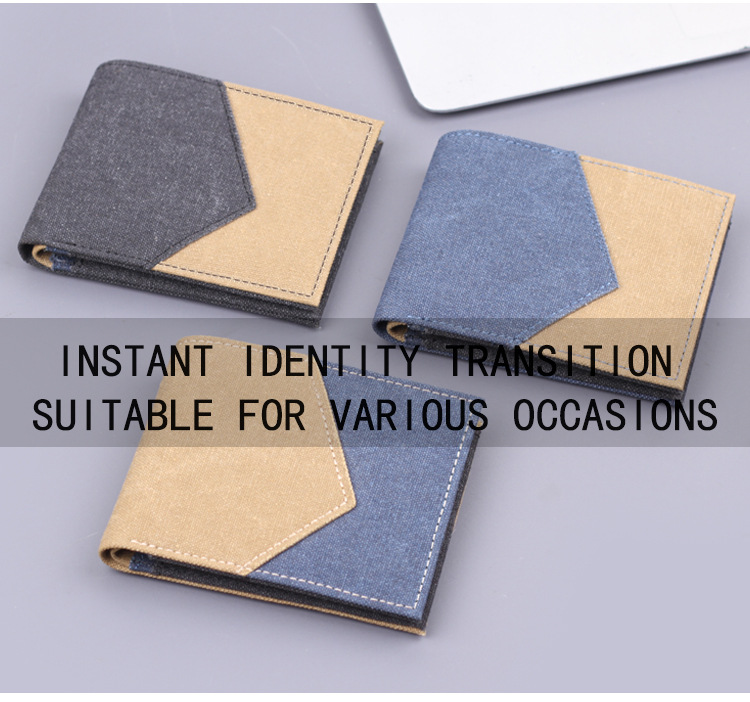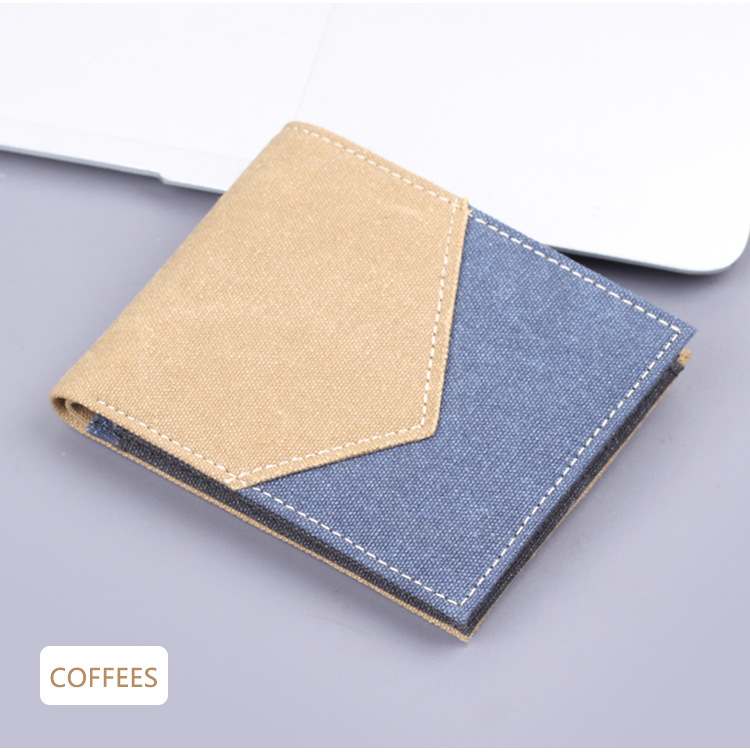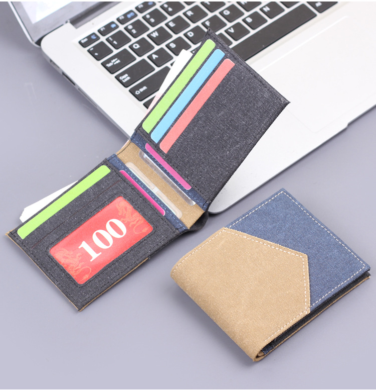 Cartera de lona corta para hombres cartera de hombres bolsos de dólares bolsos de denim bolsos de tarjetas de cuero para hombres bolsos transfronterizos