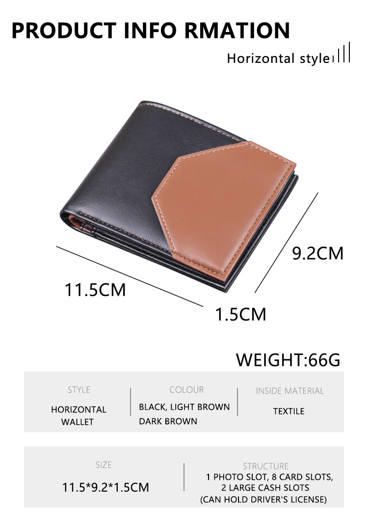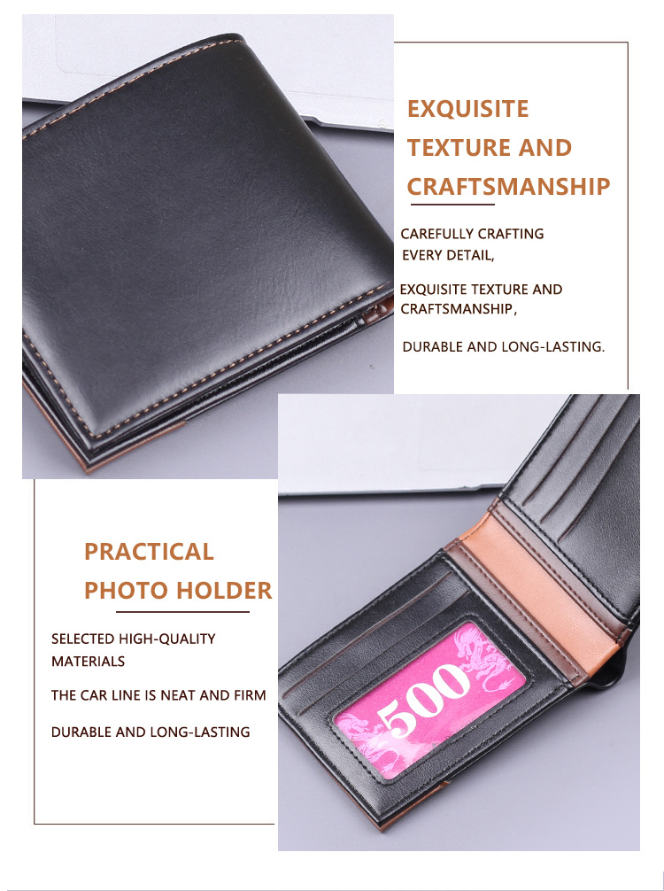Cartera corta transfronteriza para hombres, bisagra horizontal, bolso triple plegable, cartera de negocios de alto nivel, bolso de tarjeta de cambio