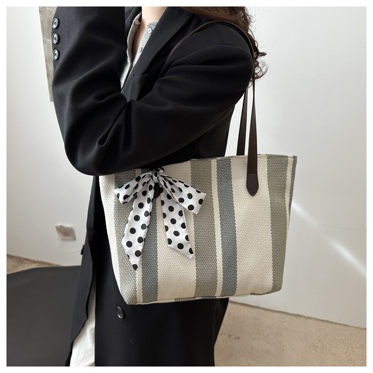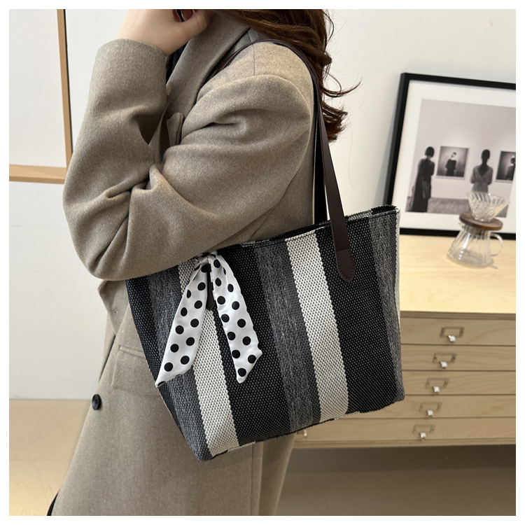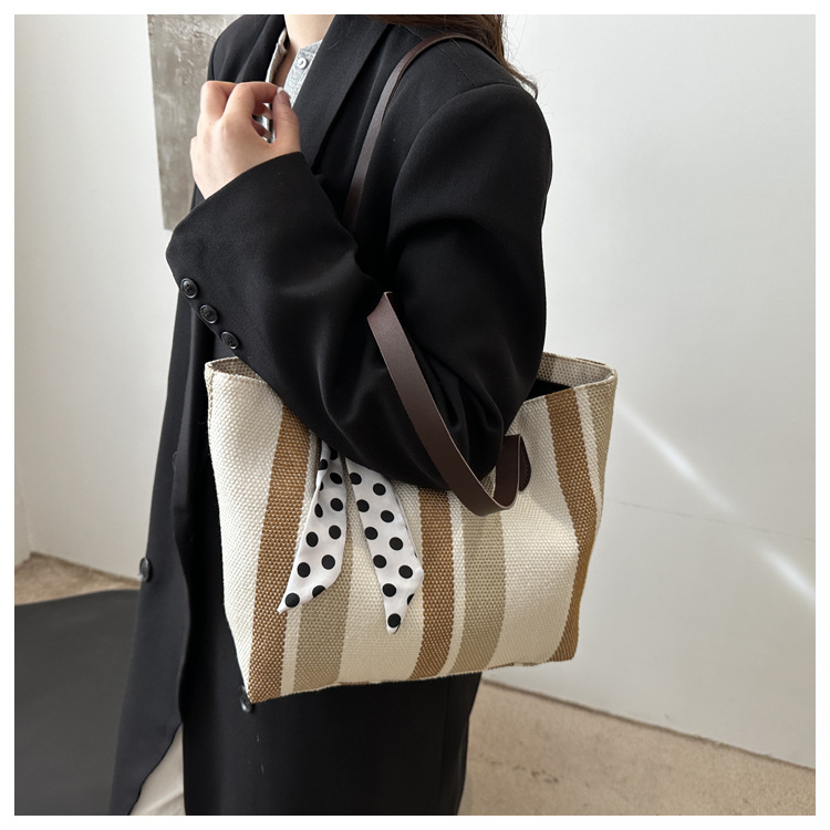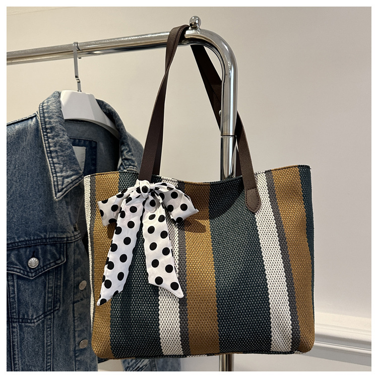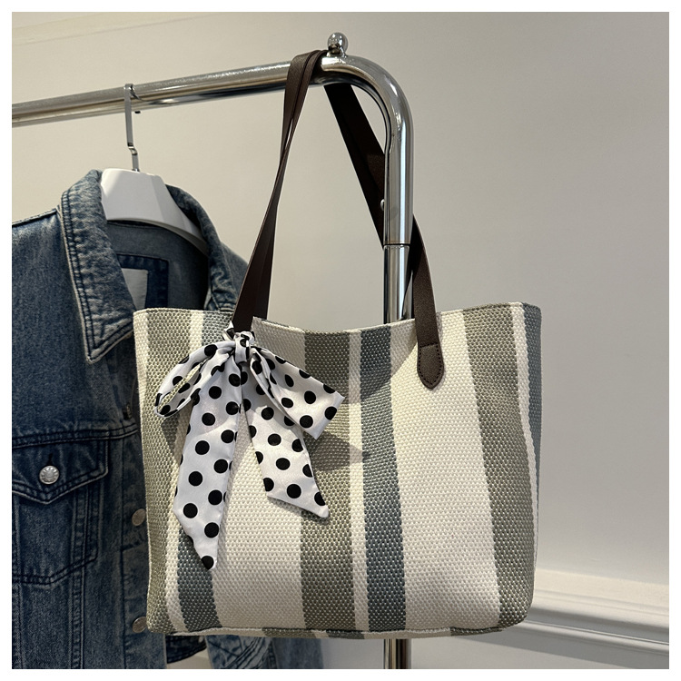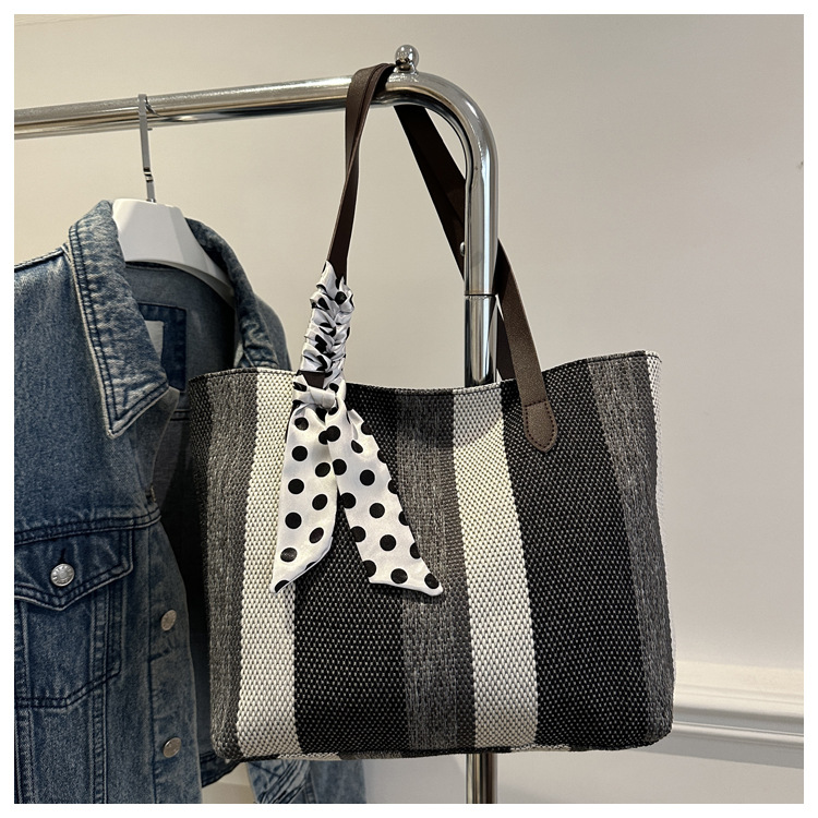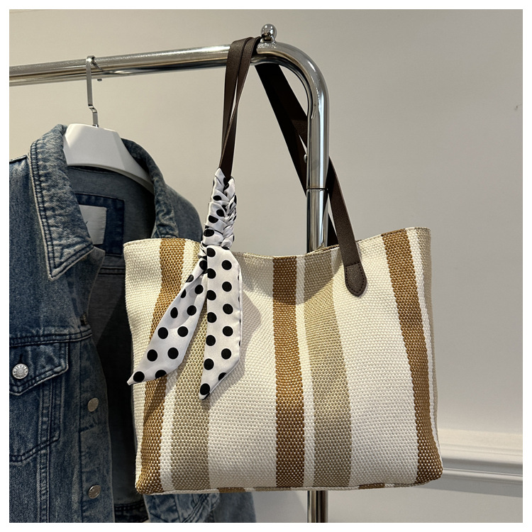 Bolso Tote simple y de gran capacidad para mujer 2024 nuevo bolso de hombro a rayas de moda coreana bolso de axila de arte relajado