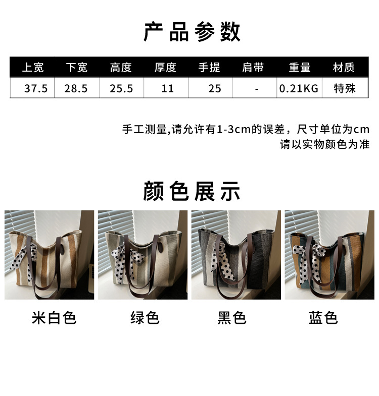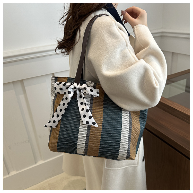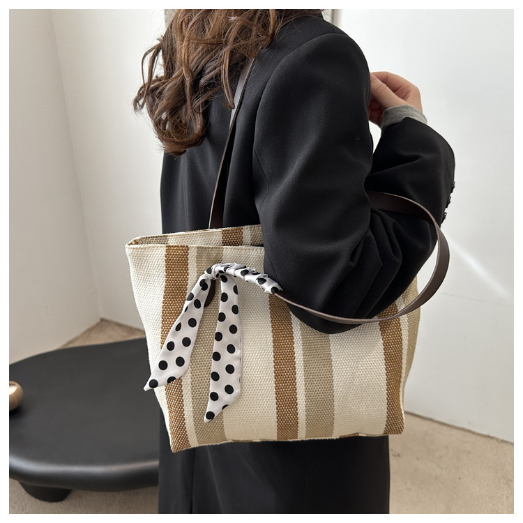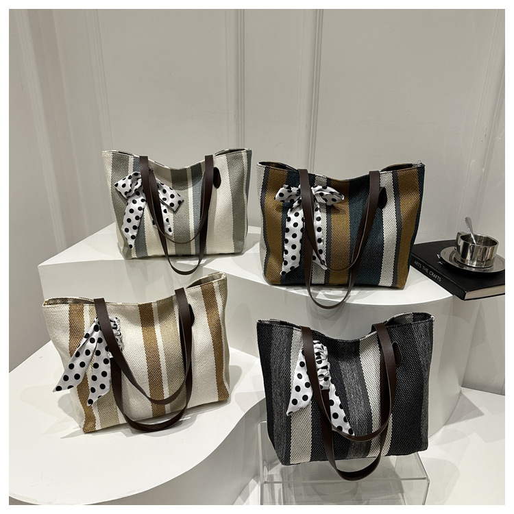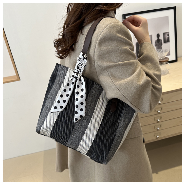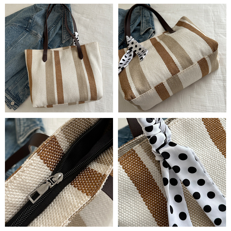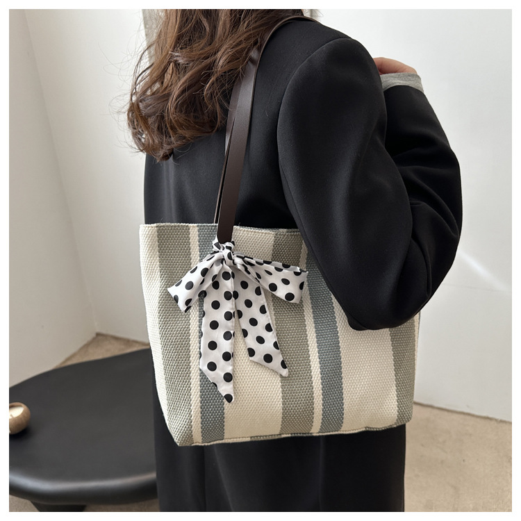 Bolso Tote simple y de gran capacidad para mujer 2024 nuevo bolso de hombro a rayas de moda coreana bolso de axila de arte relajado