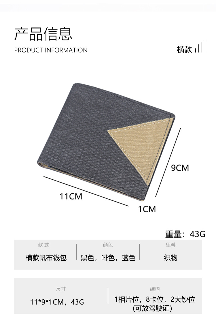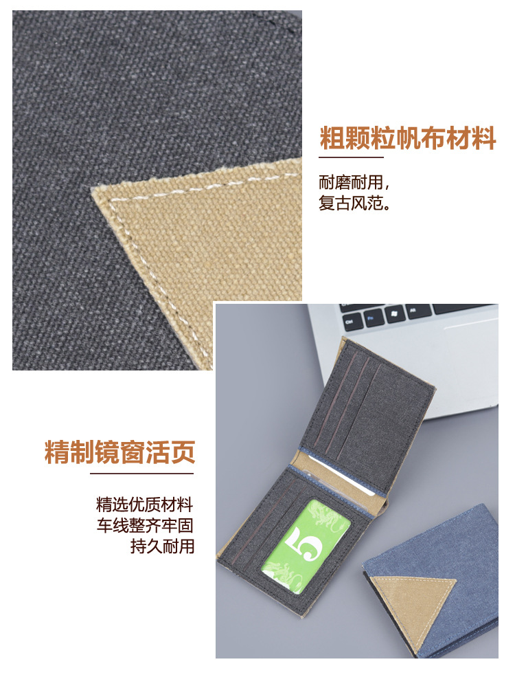 Canvas para hombres cartera corta de tela suave cartera de hombre doble para hombres multi-tarjeta nueva bolsa de tarjetas en 9 tarjetas