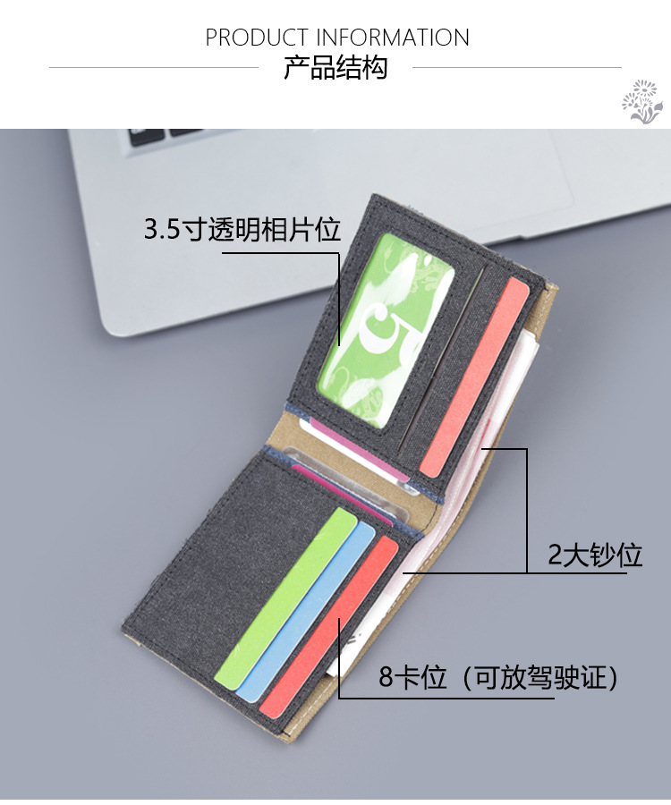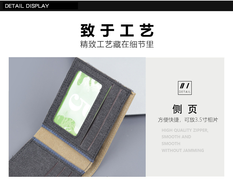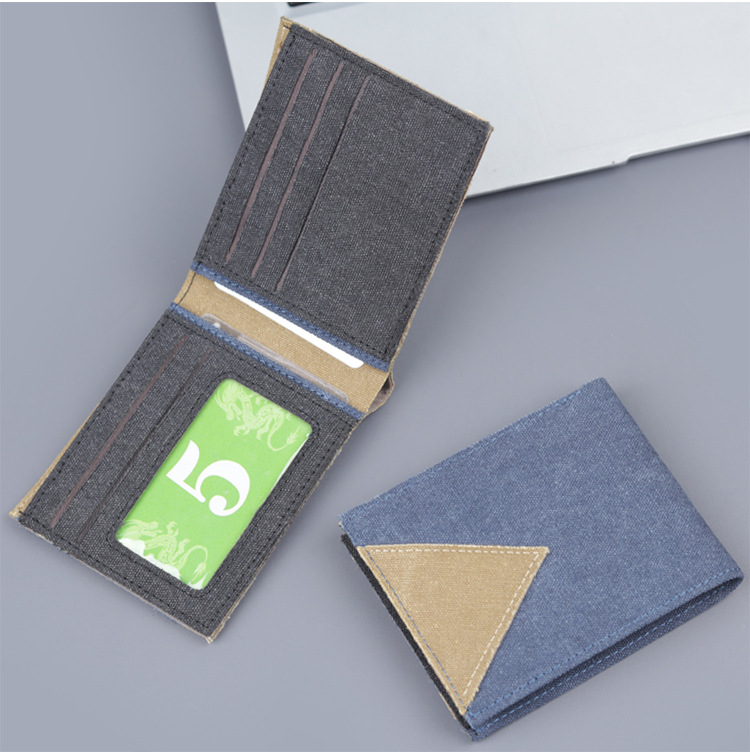Cartera de denim para hombres cartera de lona corta 9 tarjetas para tarjetas de licencia de conducir cartera pequeña para hombres