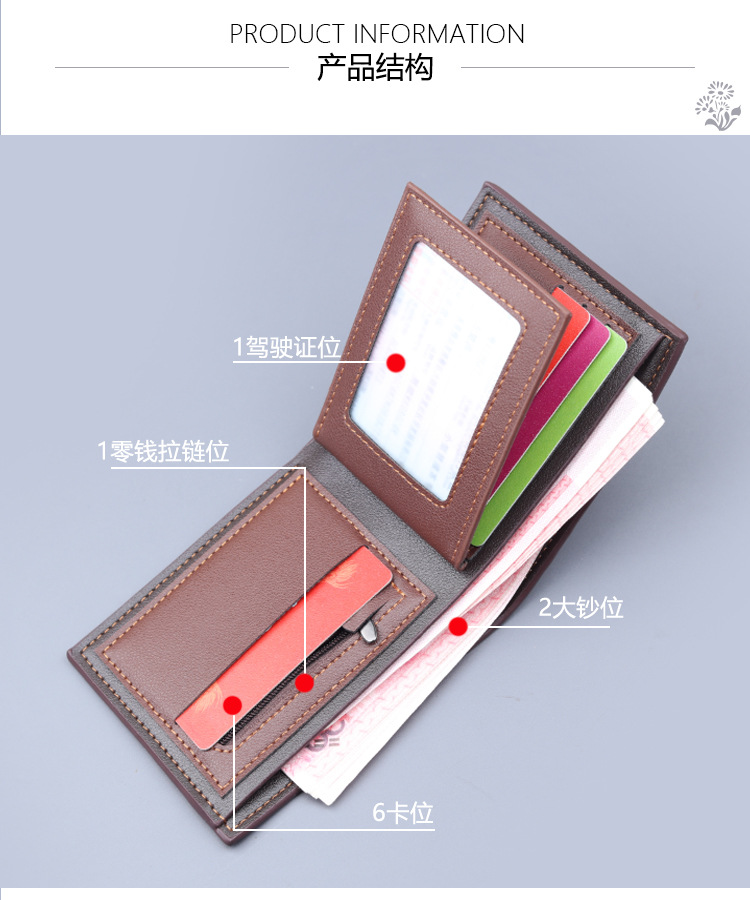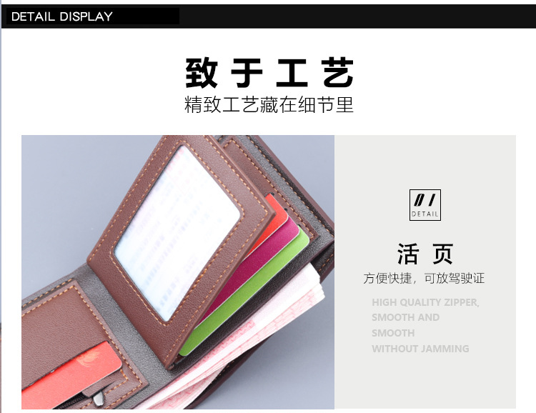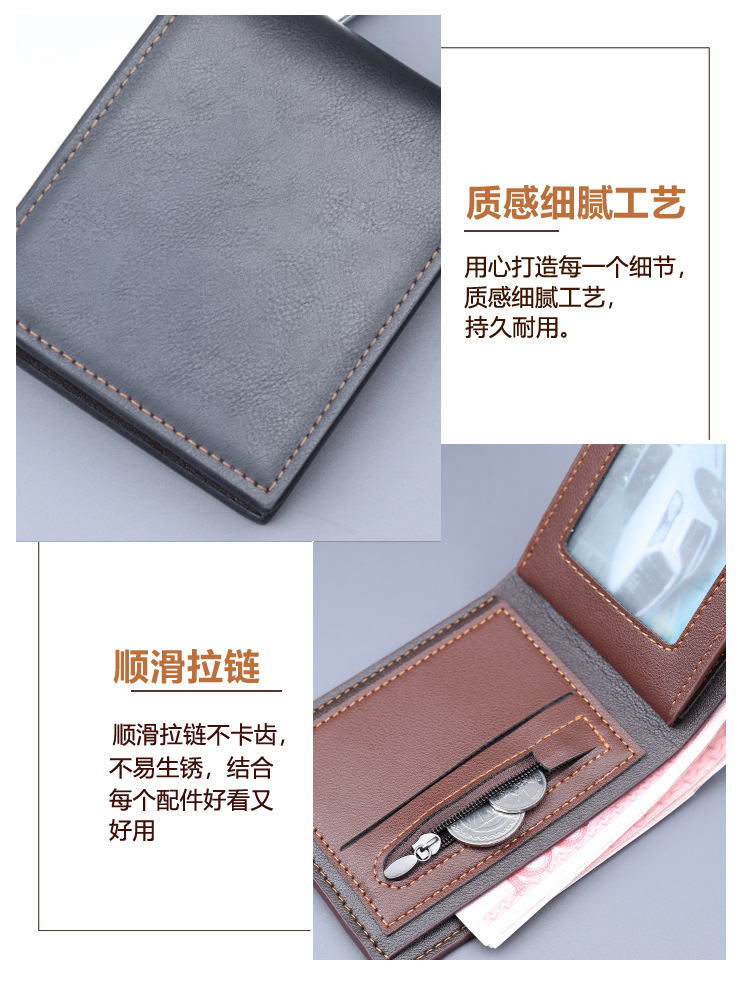 Cartera corta para hombres, cartera de tarjetas para hombres, cartera de estilo masculino, cartera con cremallera de gran capacidad para hombres con licencia de conducir