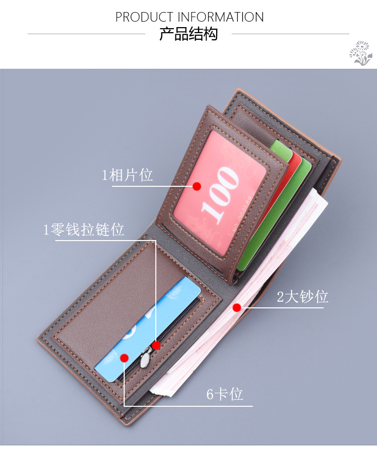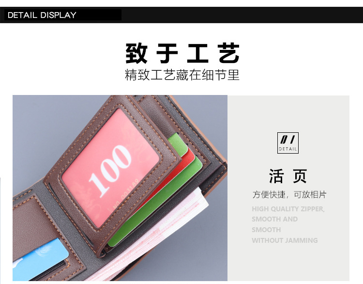 Cartera corta de los hombres cartera de los hombres bolso de la tarjeta cartera integrada cartera corta de los hombres retro nuevo monedero de gran capacidad