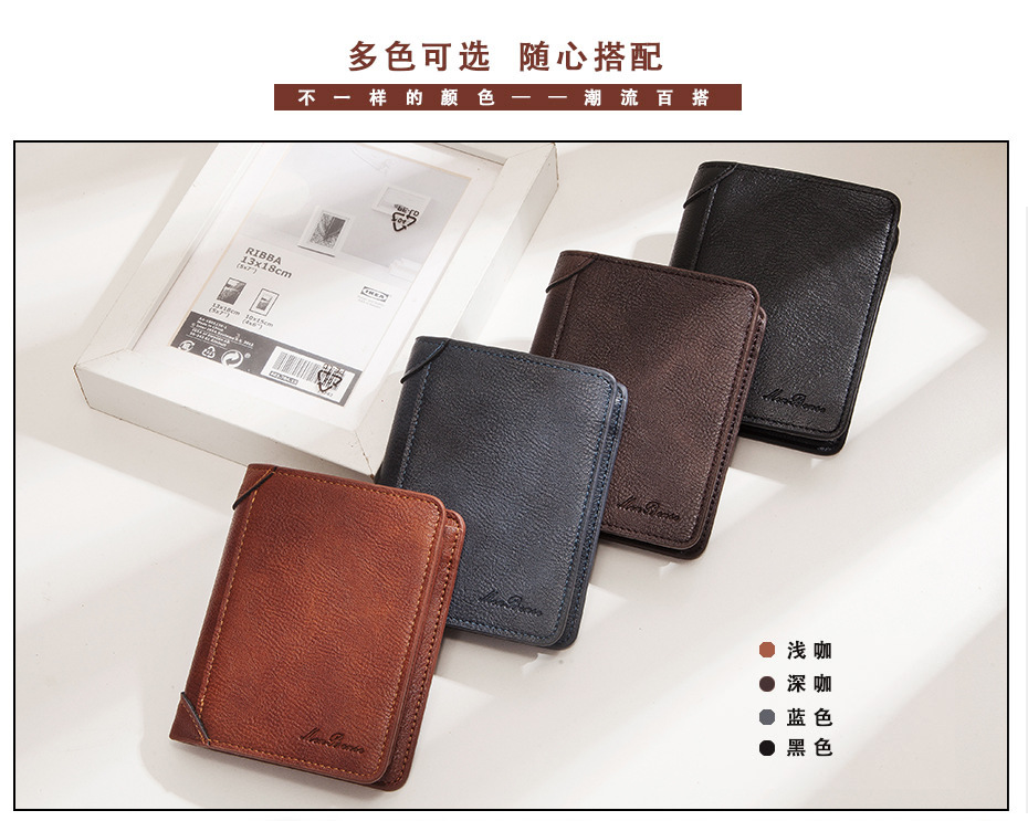 Cross-border hombres billetera vertical corto de negocios multi-funcional de gran capacidad de la cartera de moda cremallera monedero de moda al por mayor
