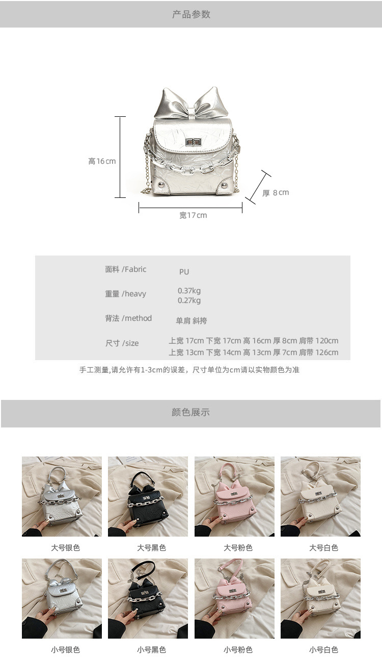 | Color | Tamaño grande blanco, tamaño grande plateado, tamaño grande negro, tamaño grande rosa, tamaño pequeño blanco, tamaño pequeño plateado, tamaño pequeño negro, tamaño pequeño rosa |