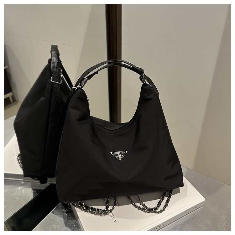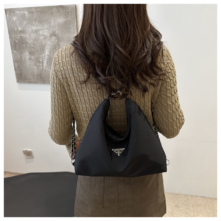 Mochila de viaje negra para mujer 2024 nuevo bolso de hombro de moda de gran capacidad y multiusos biselado