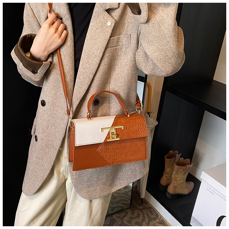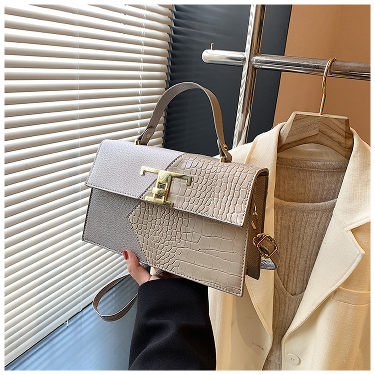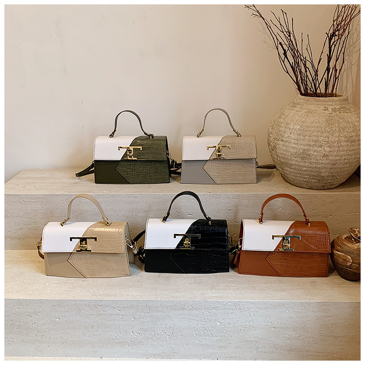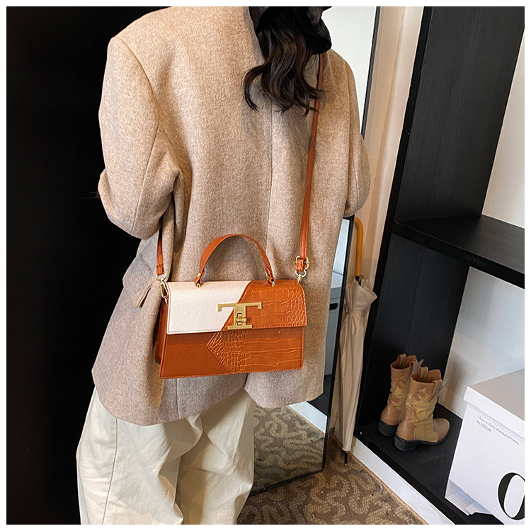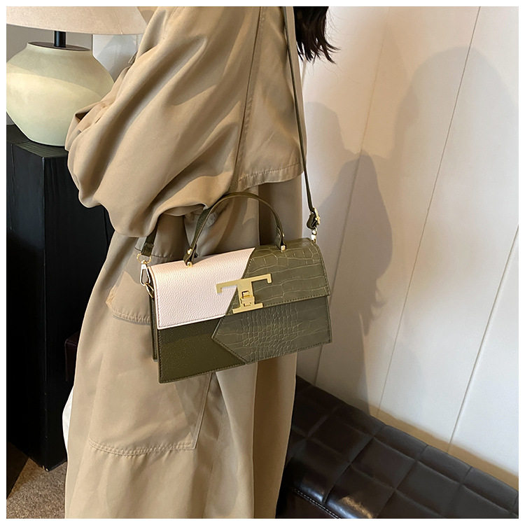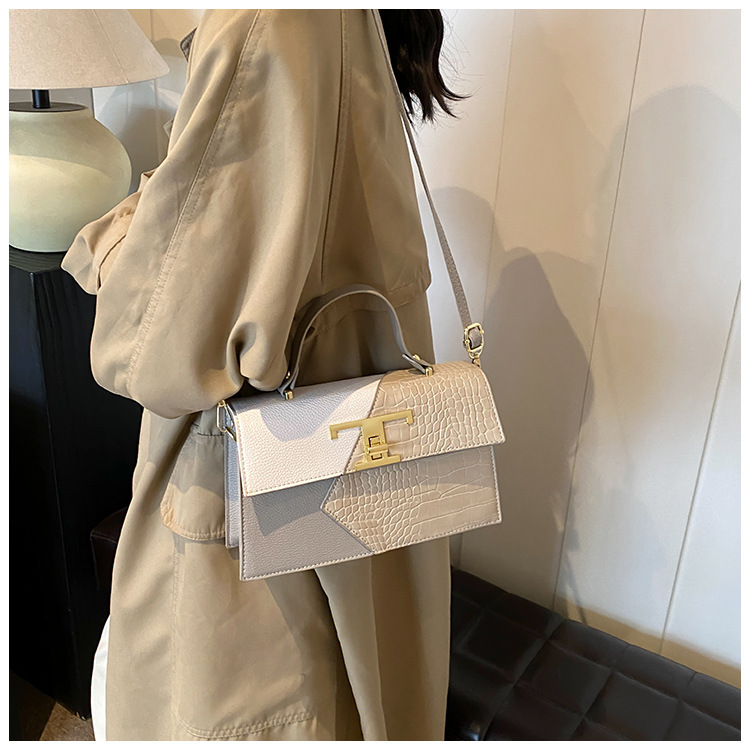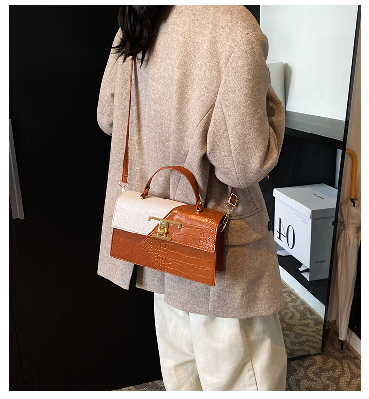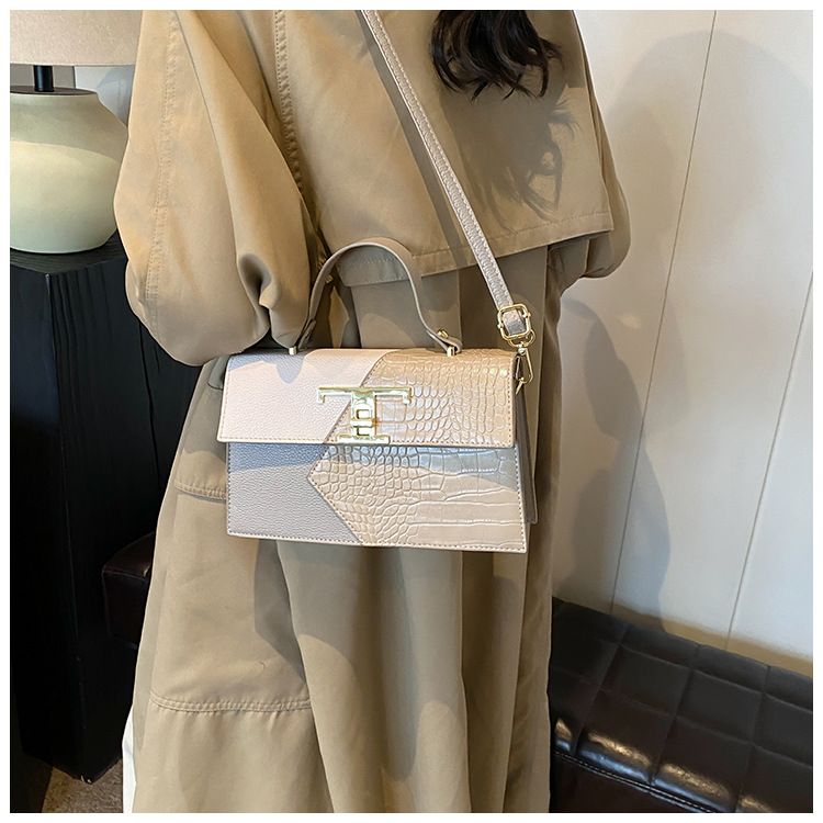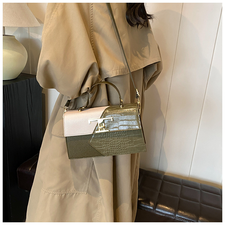 2024 nuevo bolso de mensajero bolso de costura de color de contraste de moda bolso de hombro de mujer estilo occidental patrón de cocodrilo pequeño cuadrado