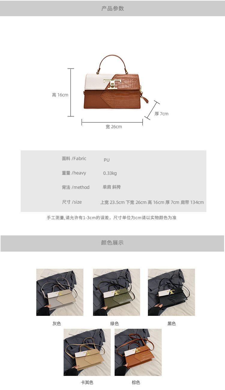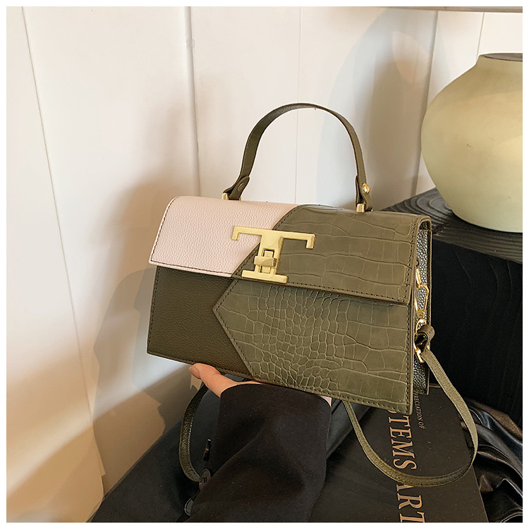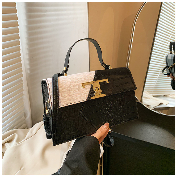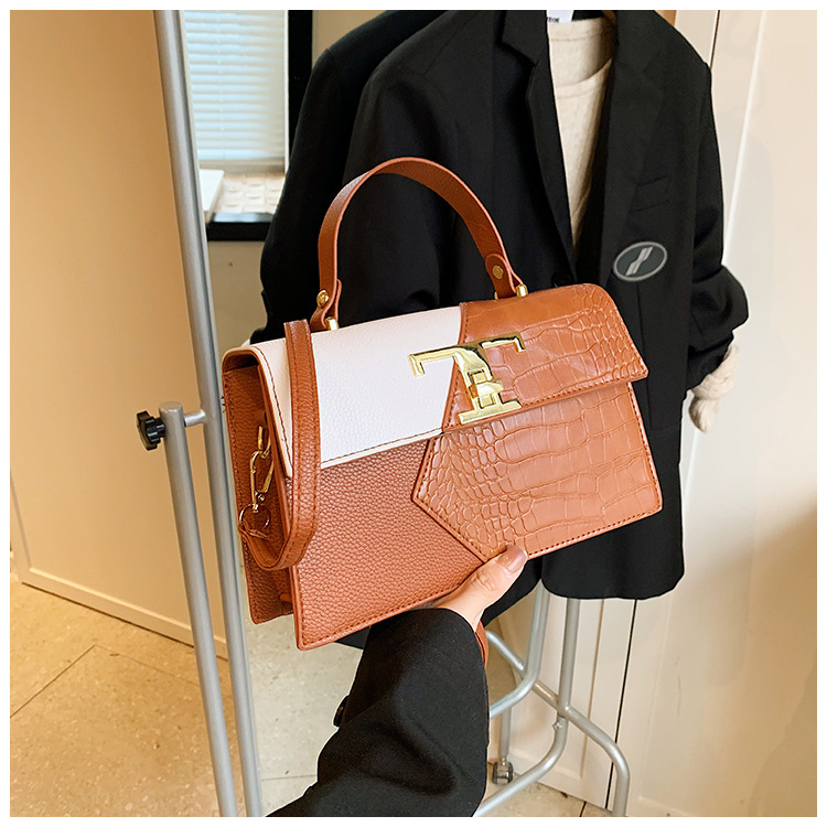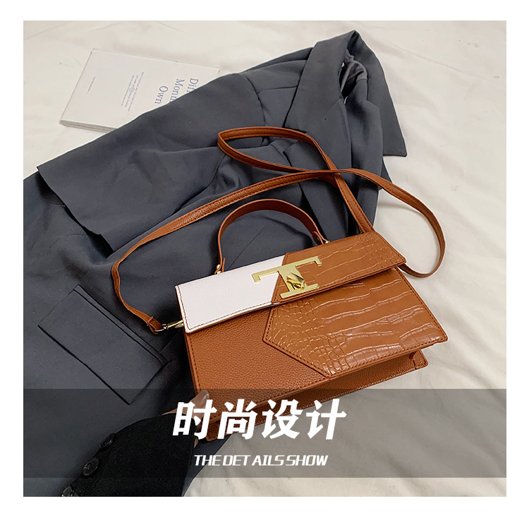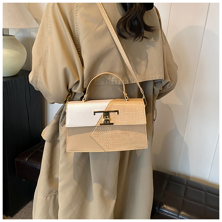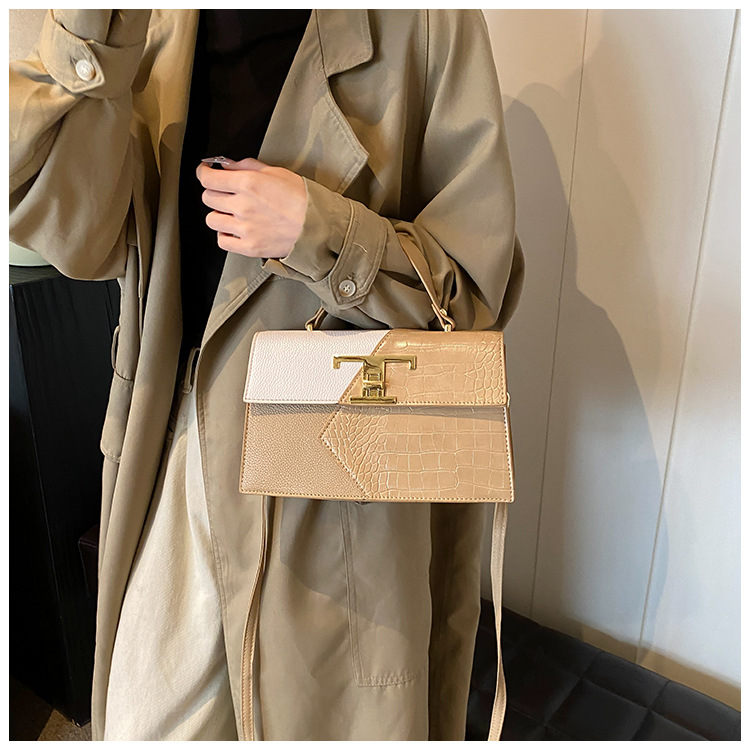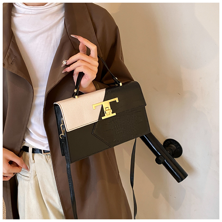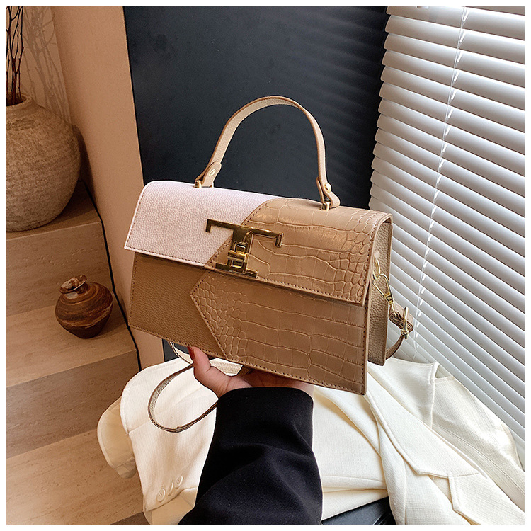 2024 nuevo bolso de mensajero bolso de costura de color de contraste de moda bolso de hombro de mujer estilo occidental patrón de cocodrilo pequeño cuadrado