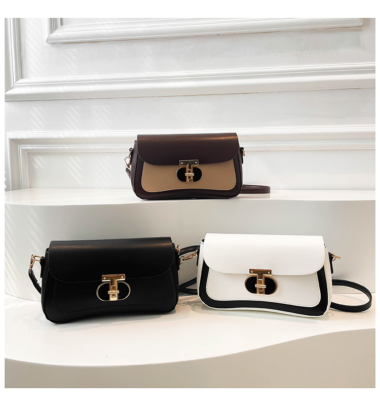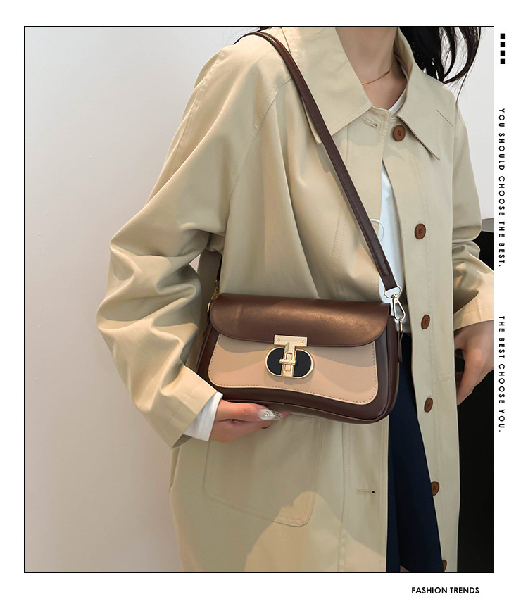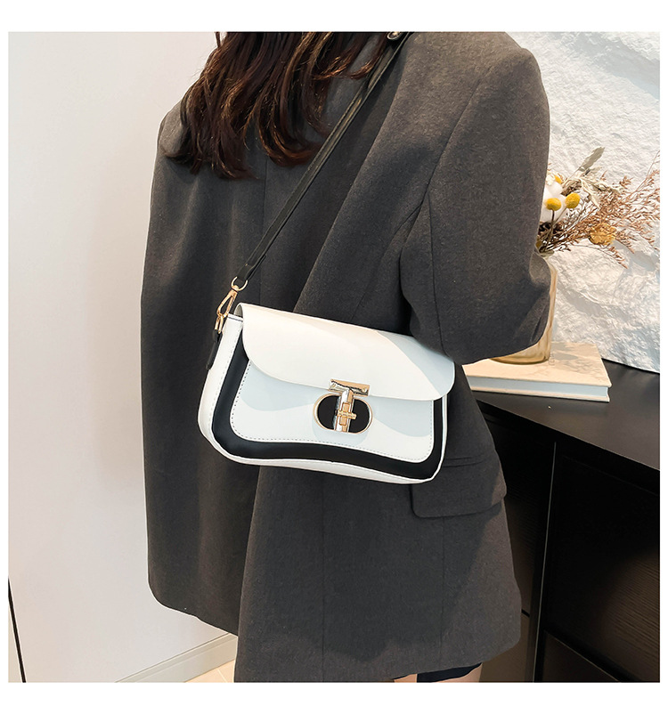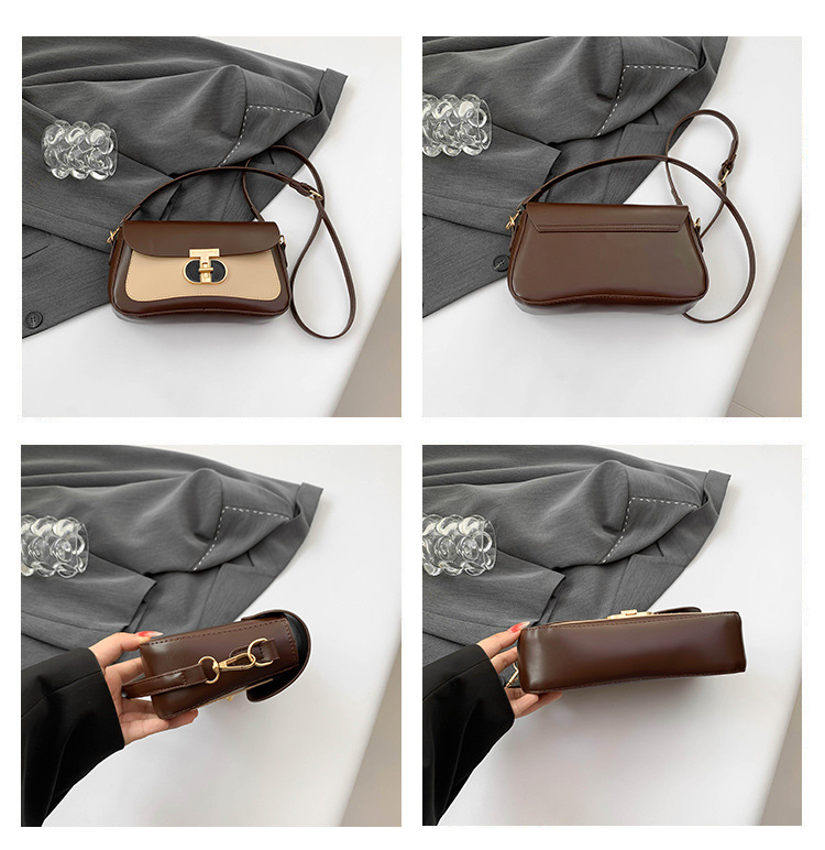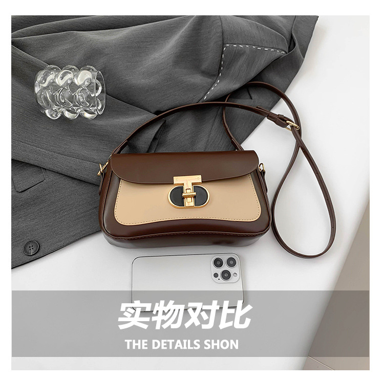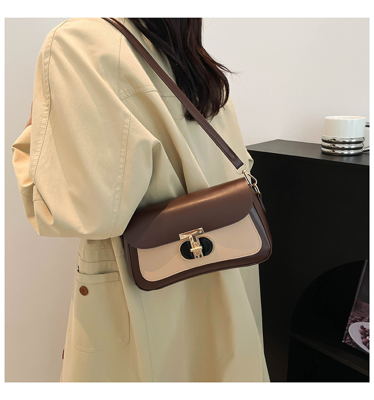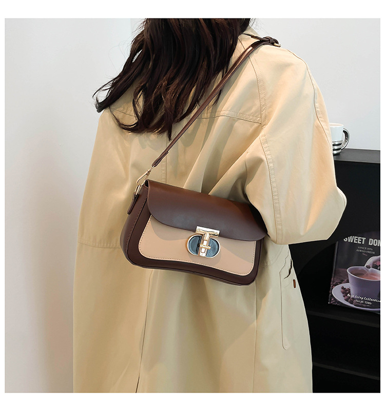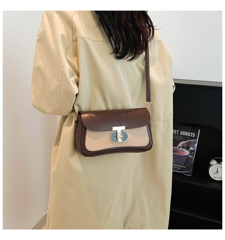 Bolsa de hombro de bloqueo de personalidad retro color contrastante 2024 otoño nueva moda estilo extranjero simple bolso de hombro