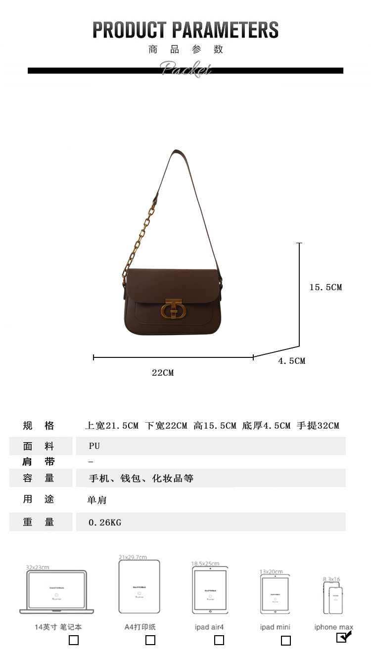 Nicho retro pequeño bolso cuadrado estilo occidental bolso de las axilas nueva cadena de moda bolso de hombro simple bolsa de mensajero ins