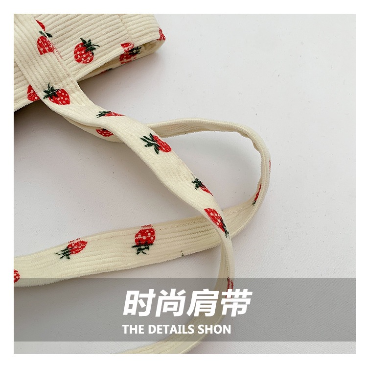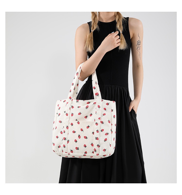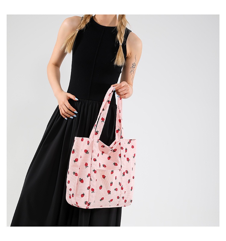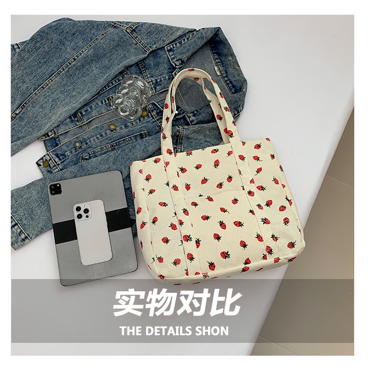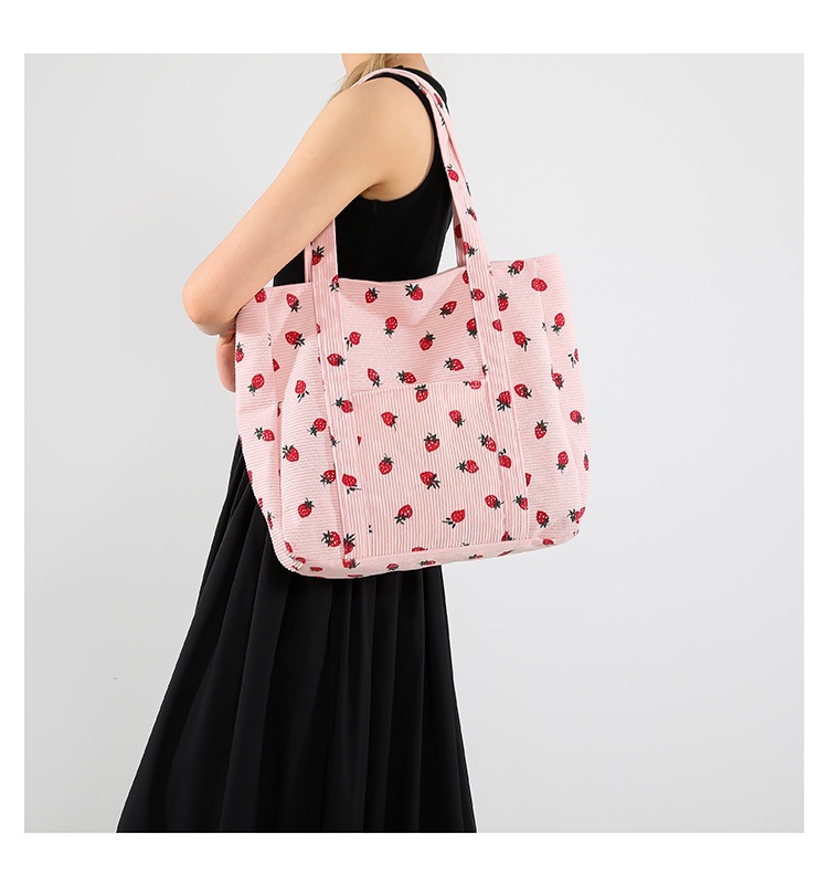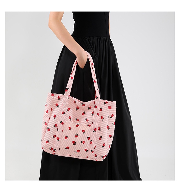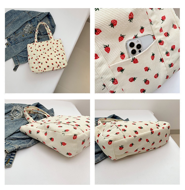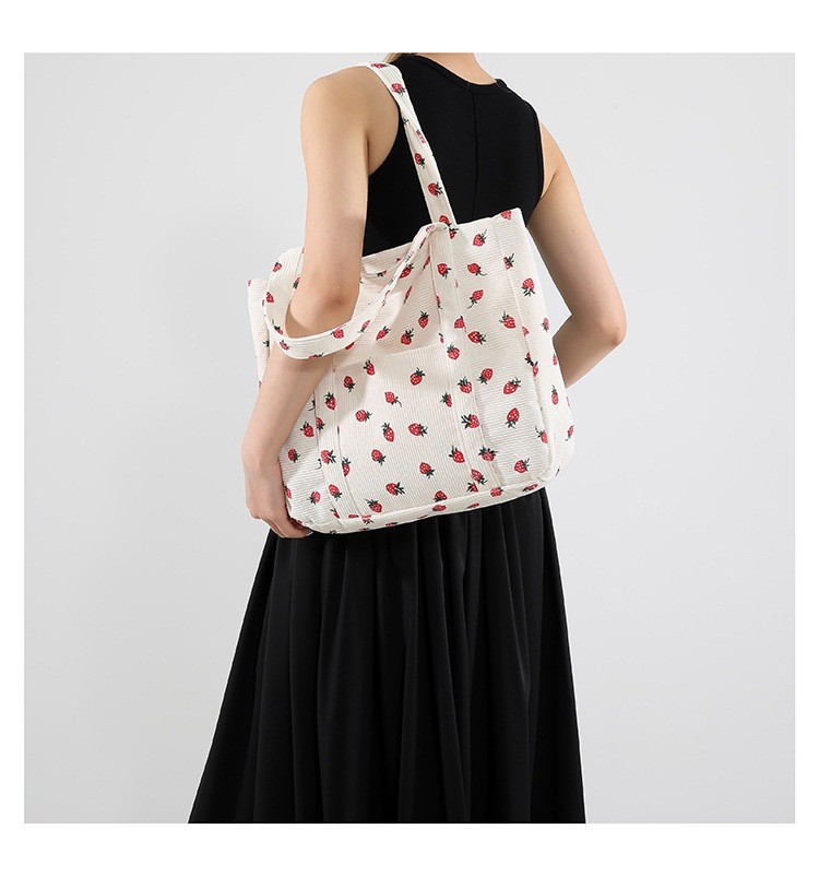 Bolsa de impresión de velcro versátil 2024 nueva bolsa de almacenamiento de gran capacidad de un solo hombro bolso de tela de fresa