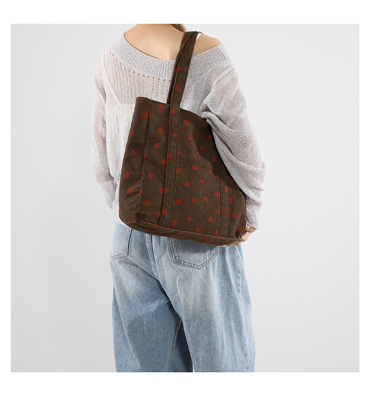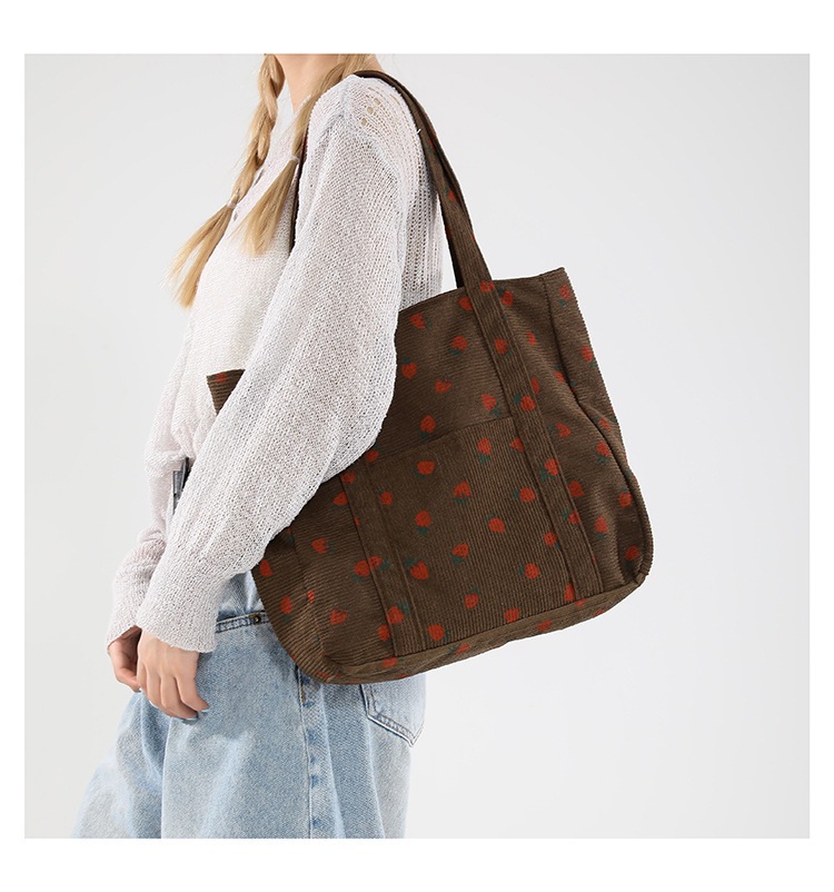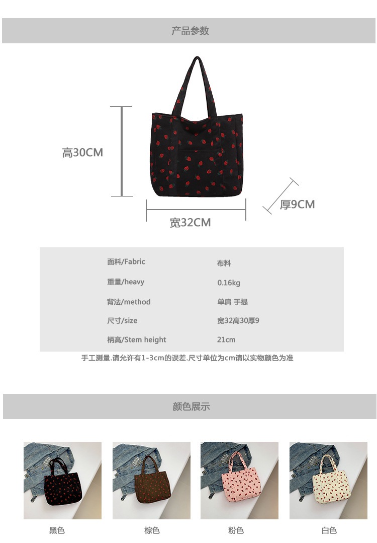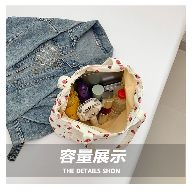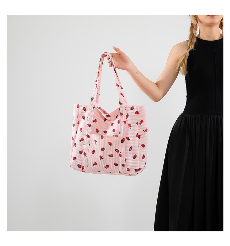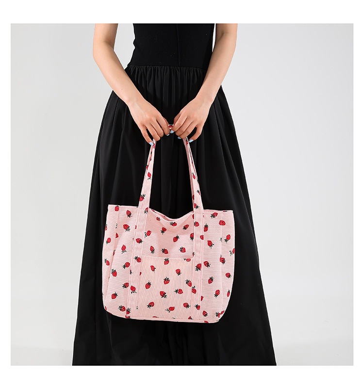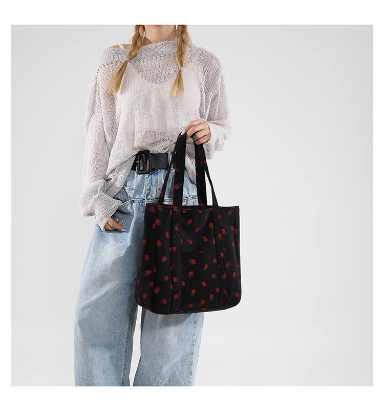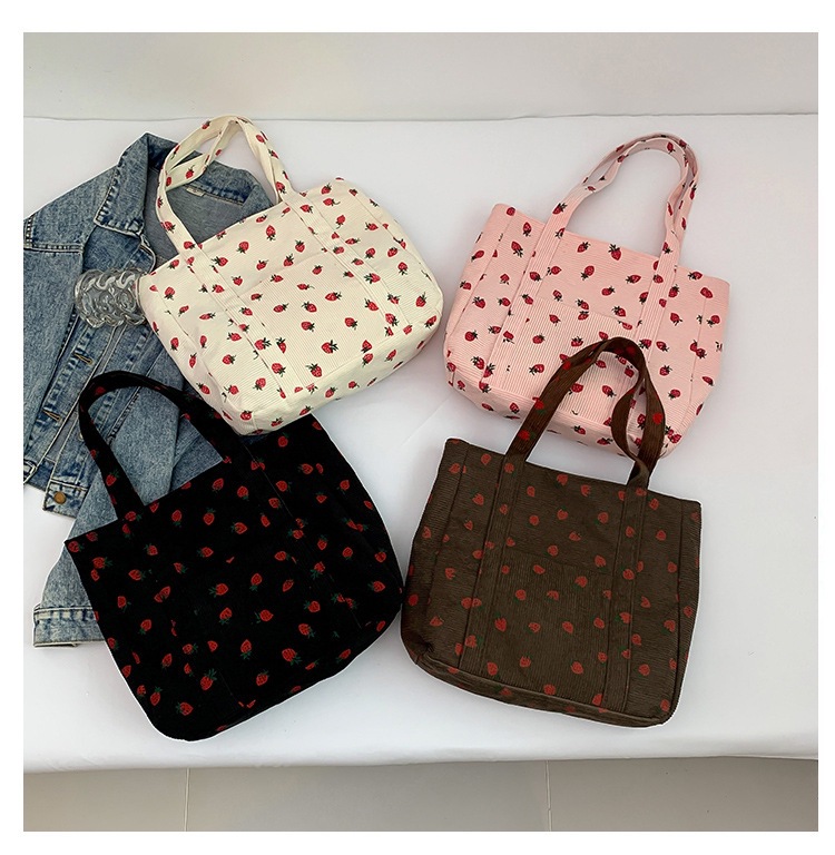 Bolsa de impresión de velcro versátil 2024 nueva bolsa de almacenamiento de gran capacidad de un solo hombro bolso de tela de fresa
