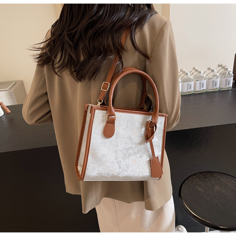 Bolso de terciopelo transfronterizo para mujer 2024 nuevo bolso de mujer de gran capacidad de pana de moda bolso de costura de color de contraste de moda