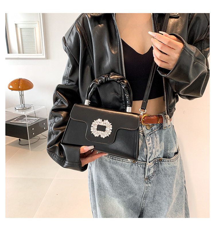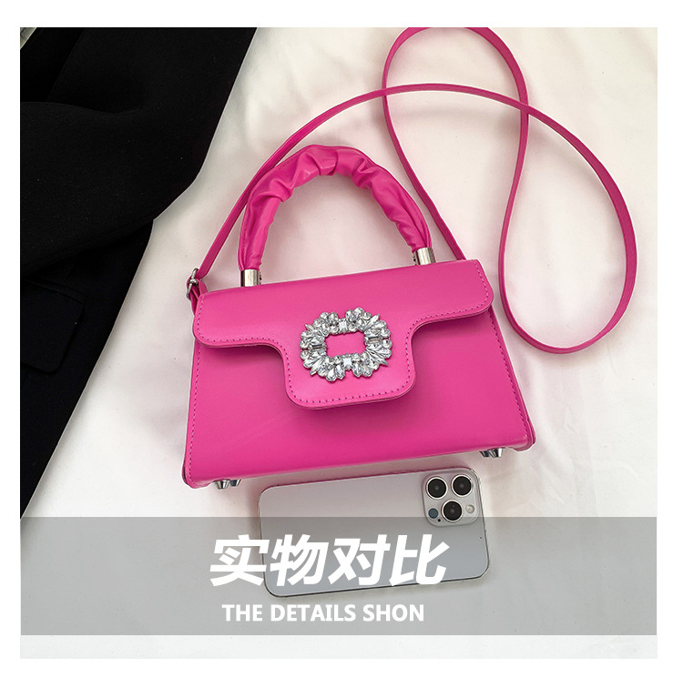 Moda diamante-incrustado pequeña bolsa cuadrada 2024 nuevo estilo nacional bolso de la gema bolso de las mujeres estilo occidental textura hombro bolsa de mensajero