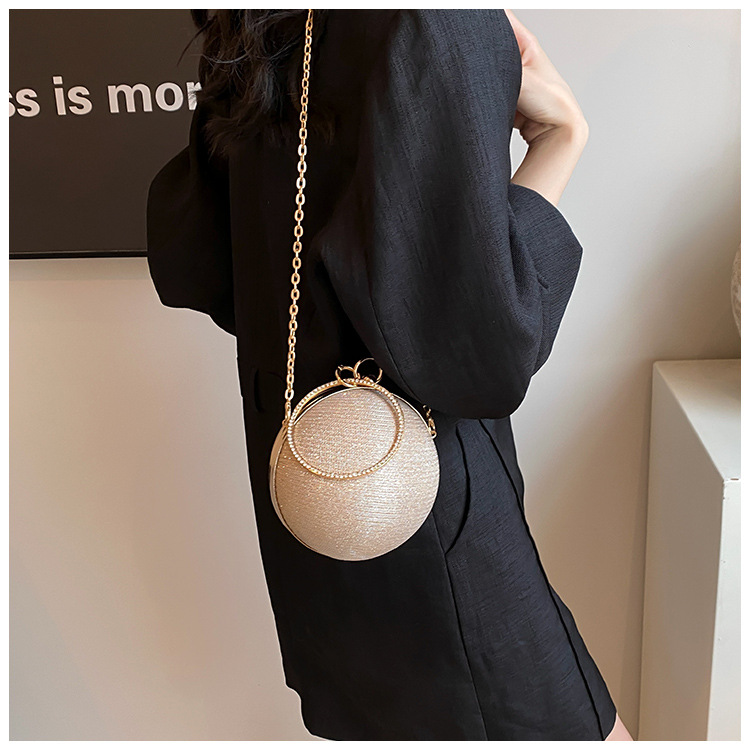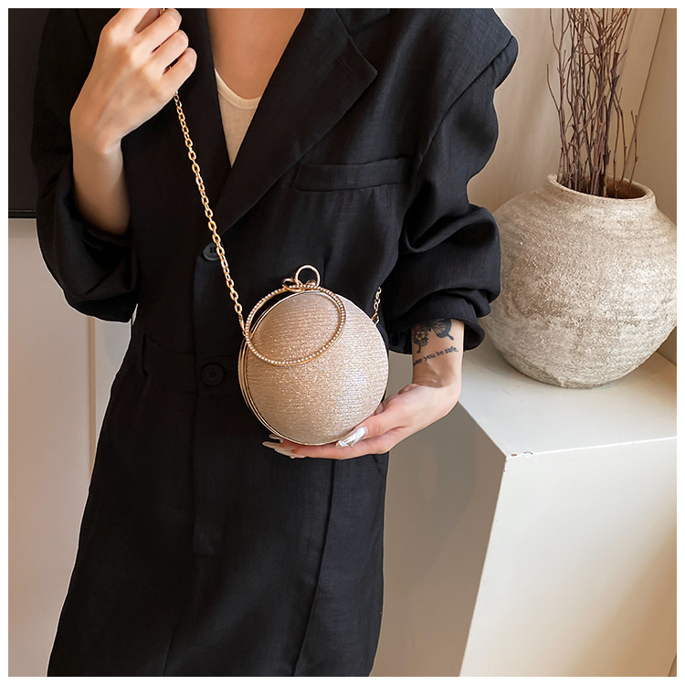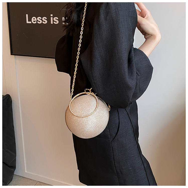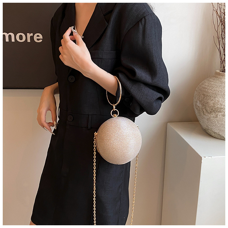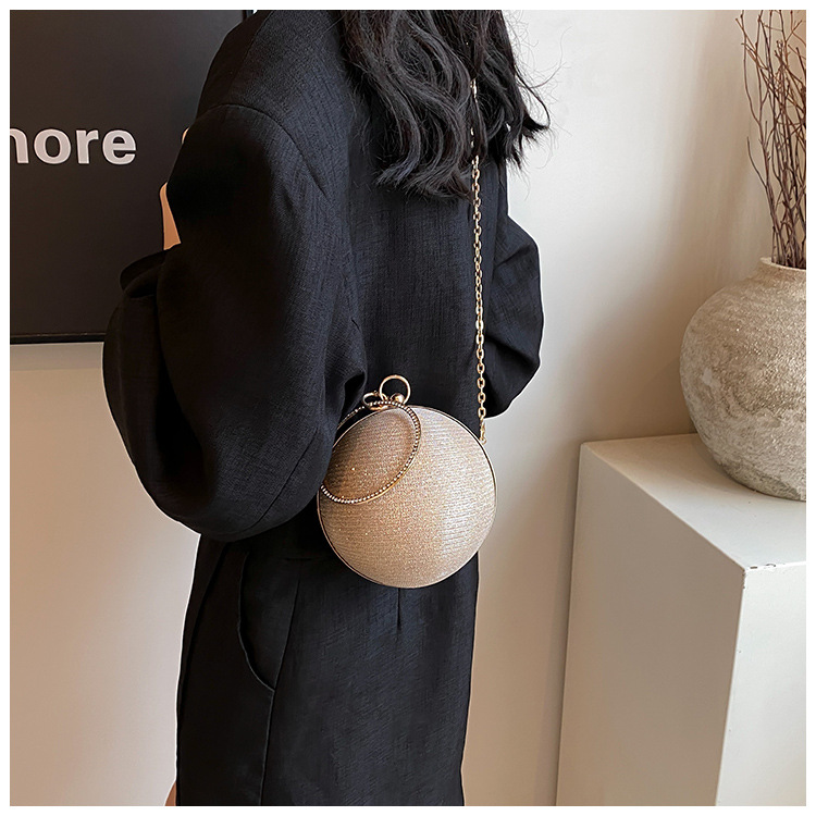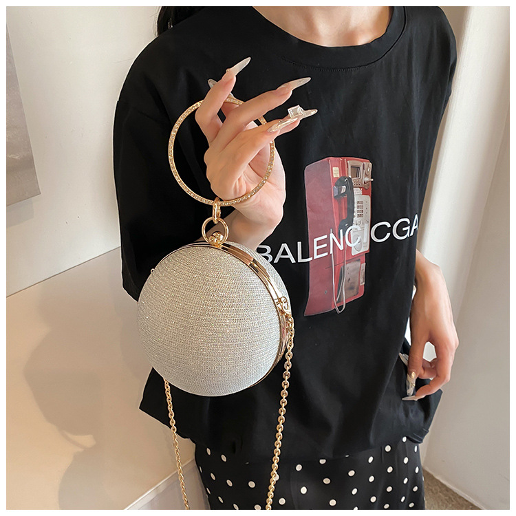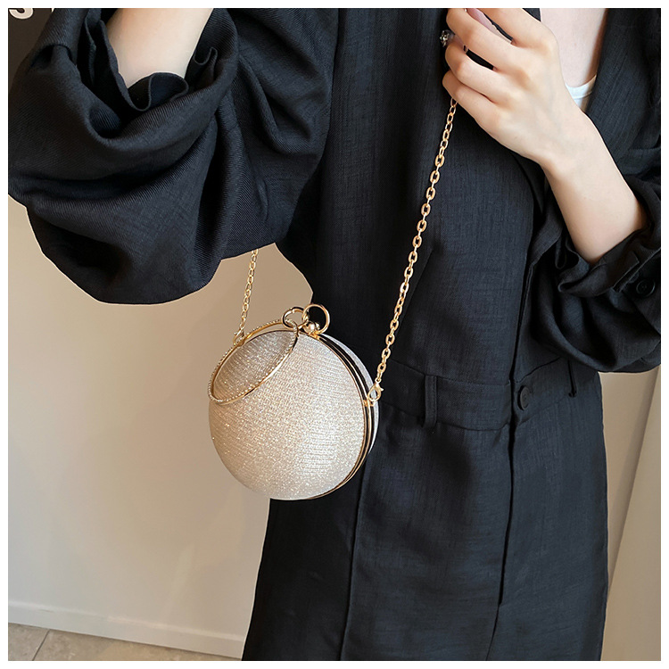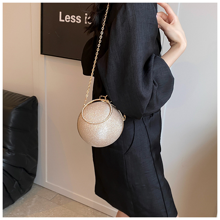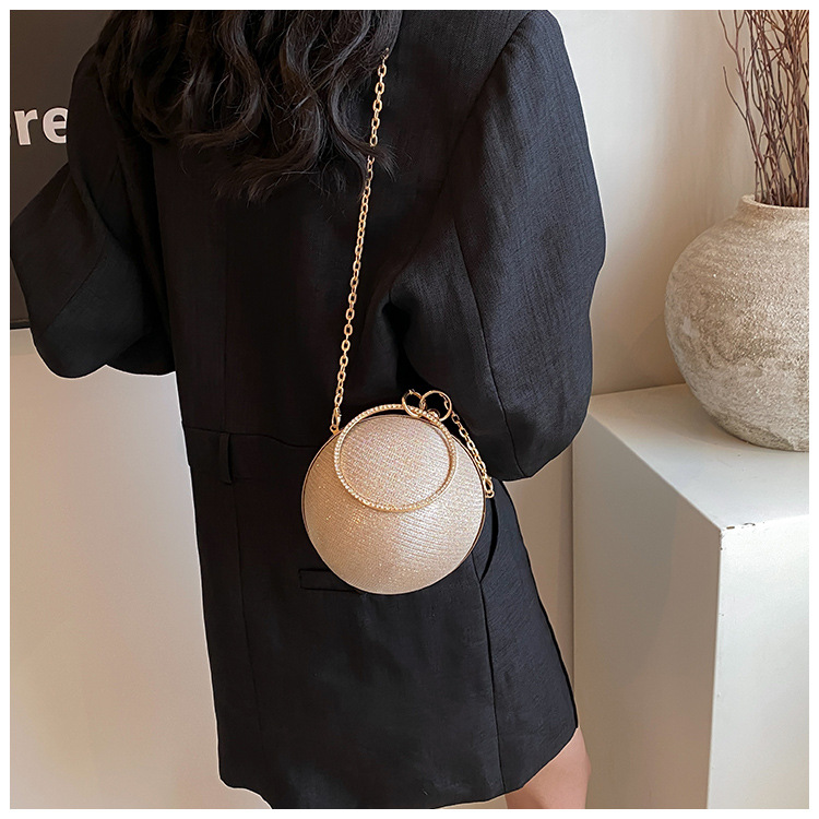 Bolso de diseño de personalidad esférico2024 bolso redondo de mano de moda europea y americana, bolso de cadena de hombro de lujo ligero