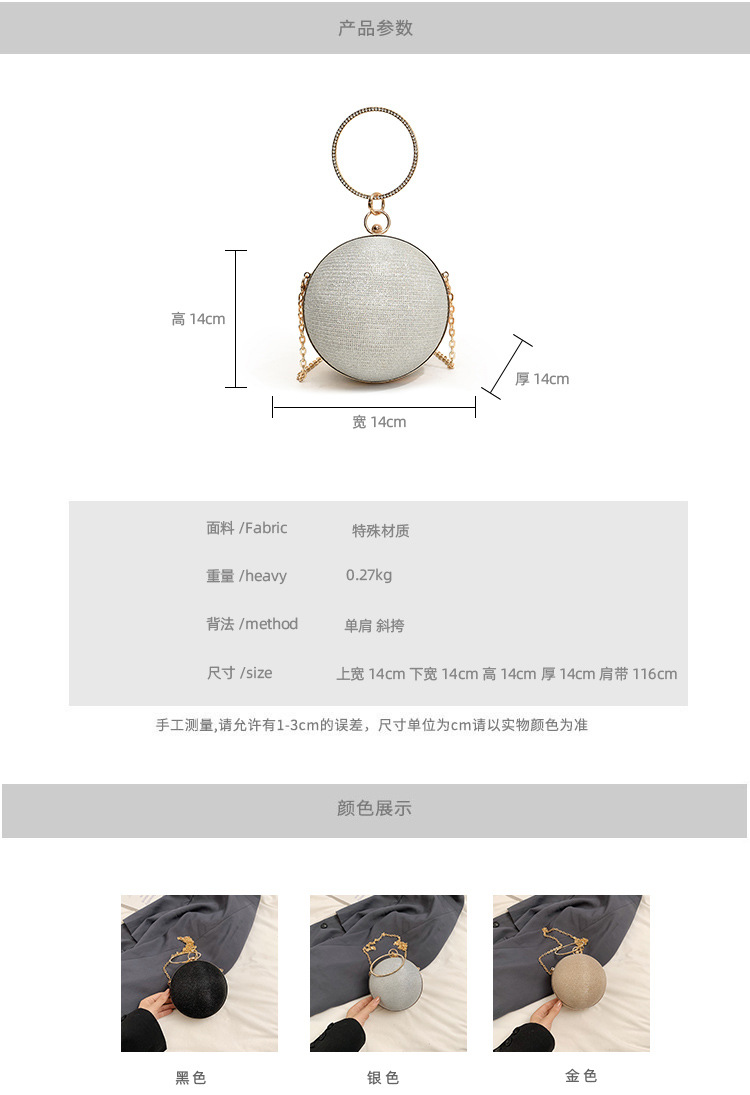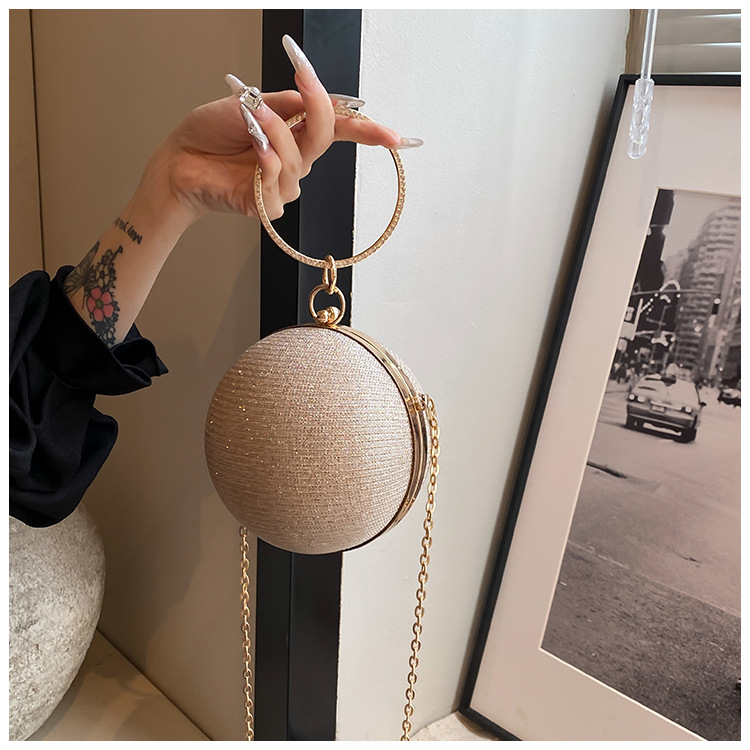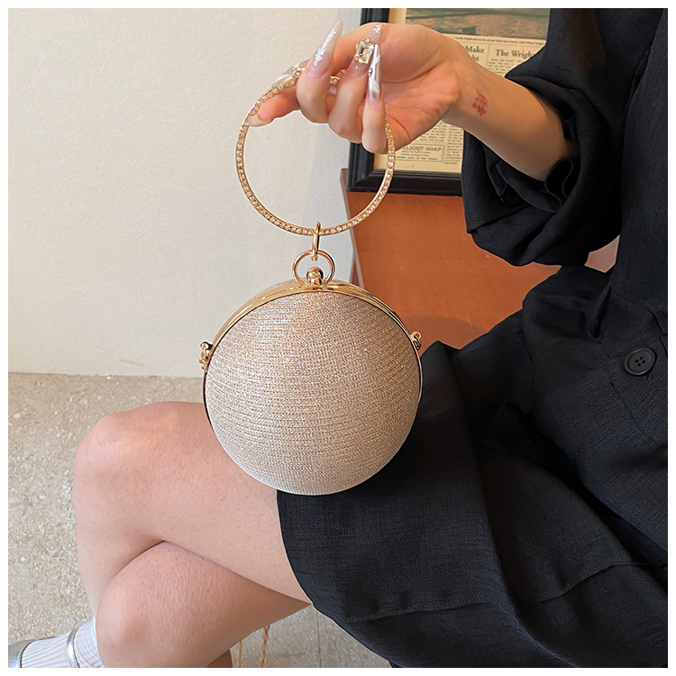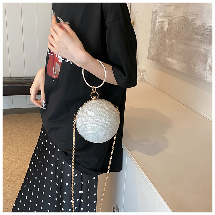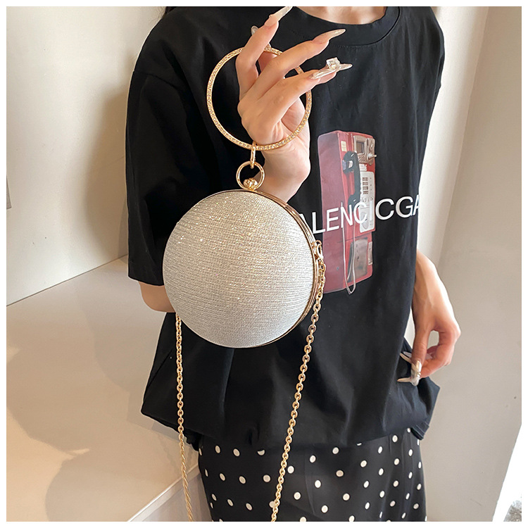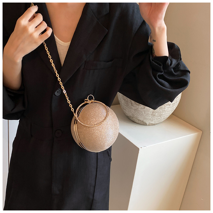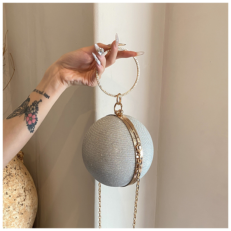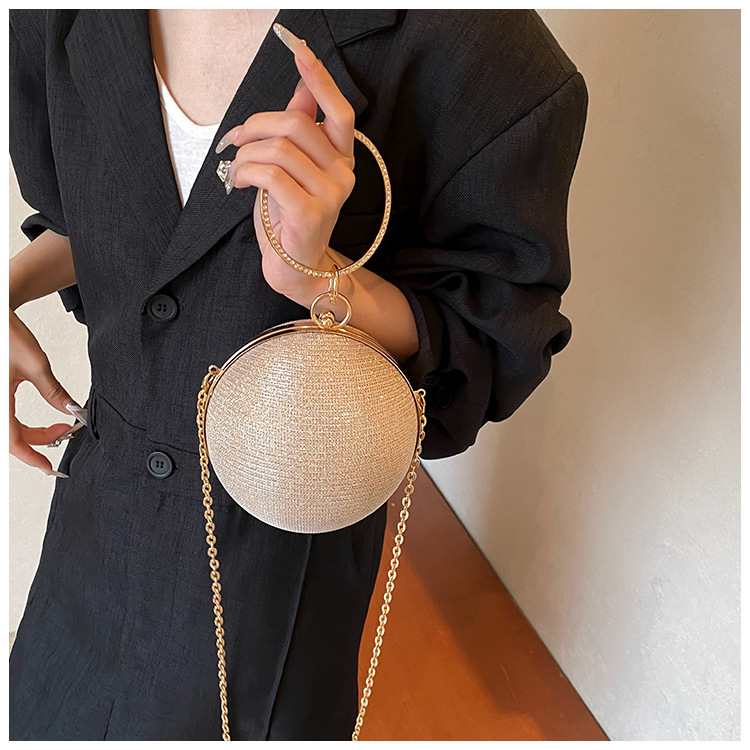 Bolso de diseño de personalidad esférico2024 bolso redondo de mano de moda europea y americana, bolso de cadena de hombro de lujo ligero