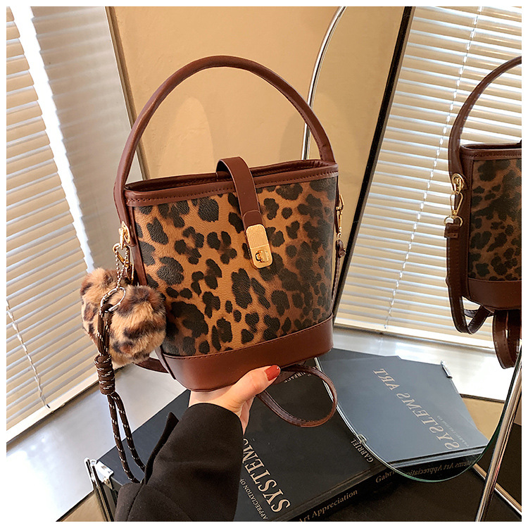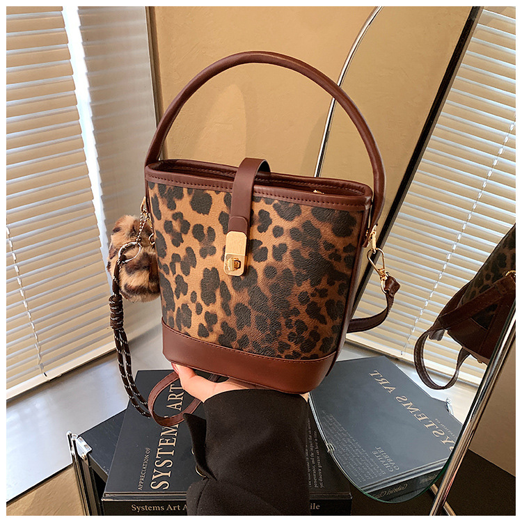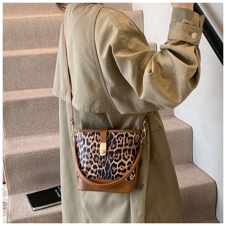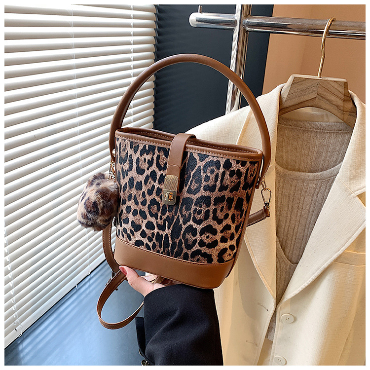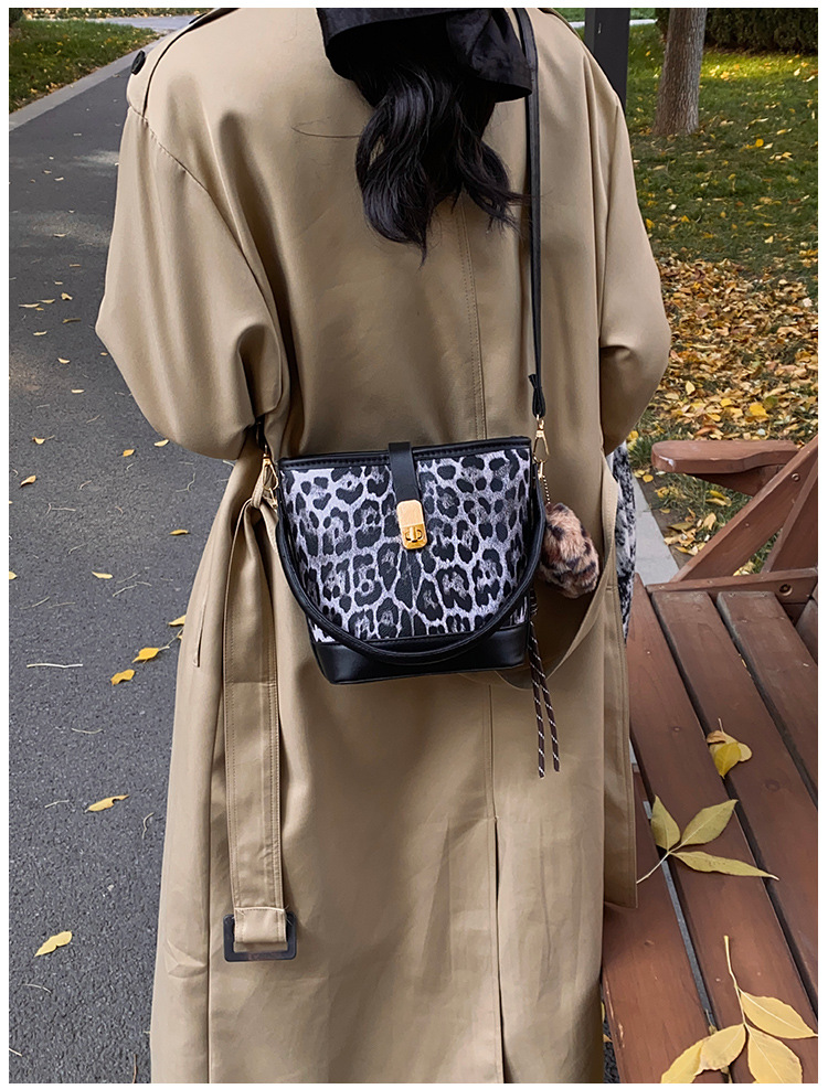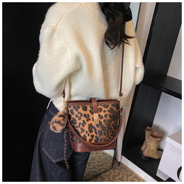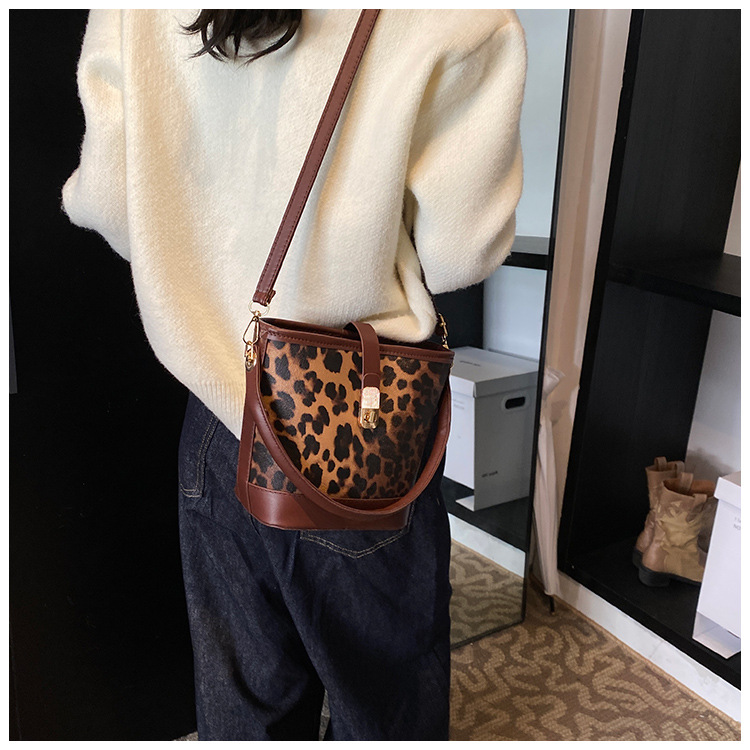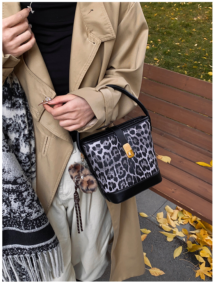 Bolso popular de este año para mujeres otoño invierno 2024 nuevo patrón de leopardo nicho mochila casual bolso de cubo de agua
