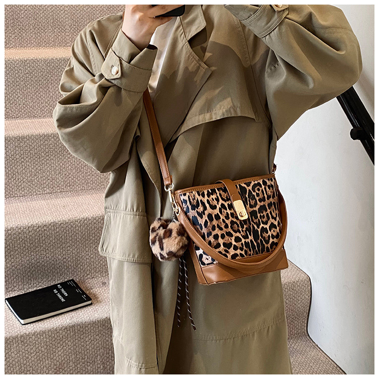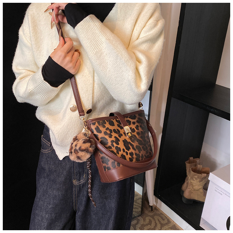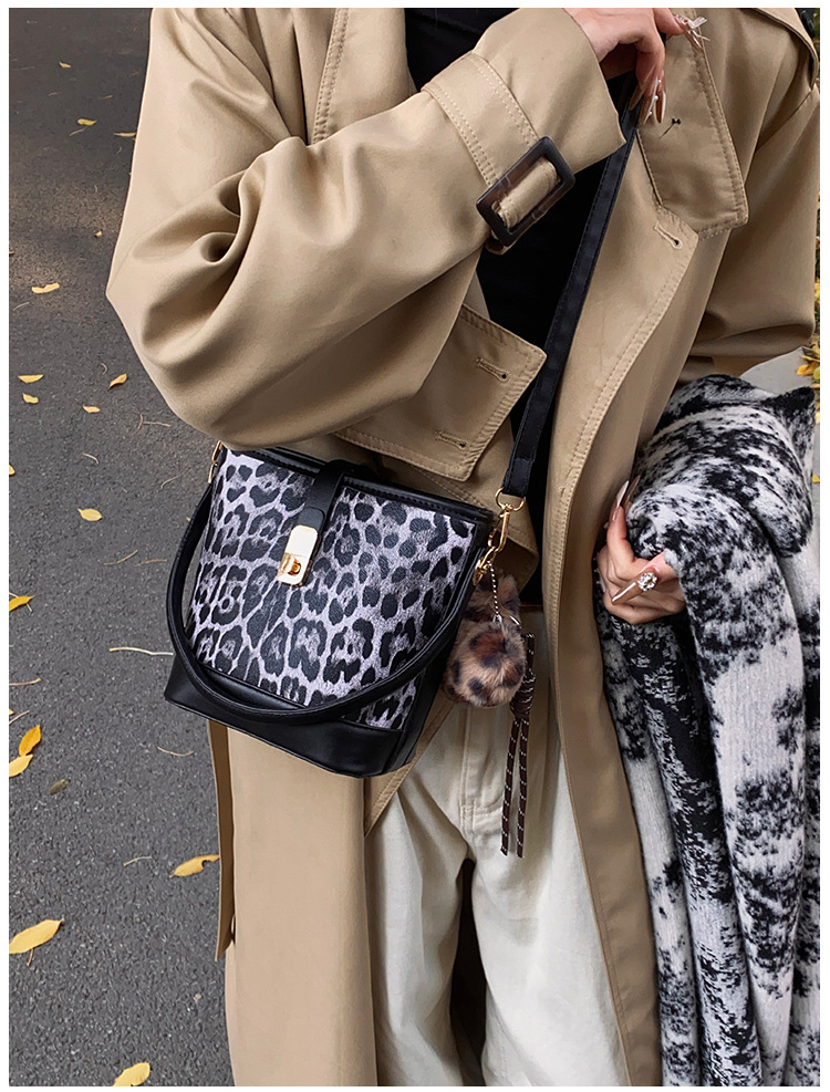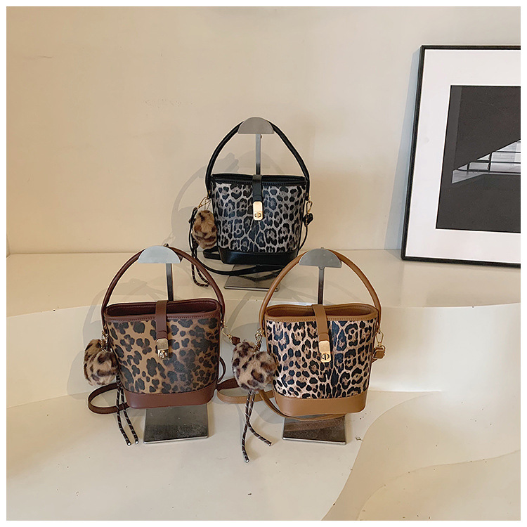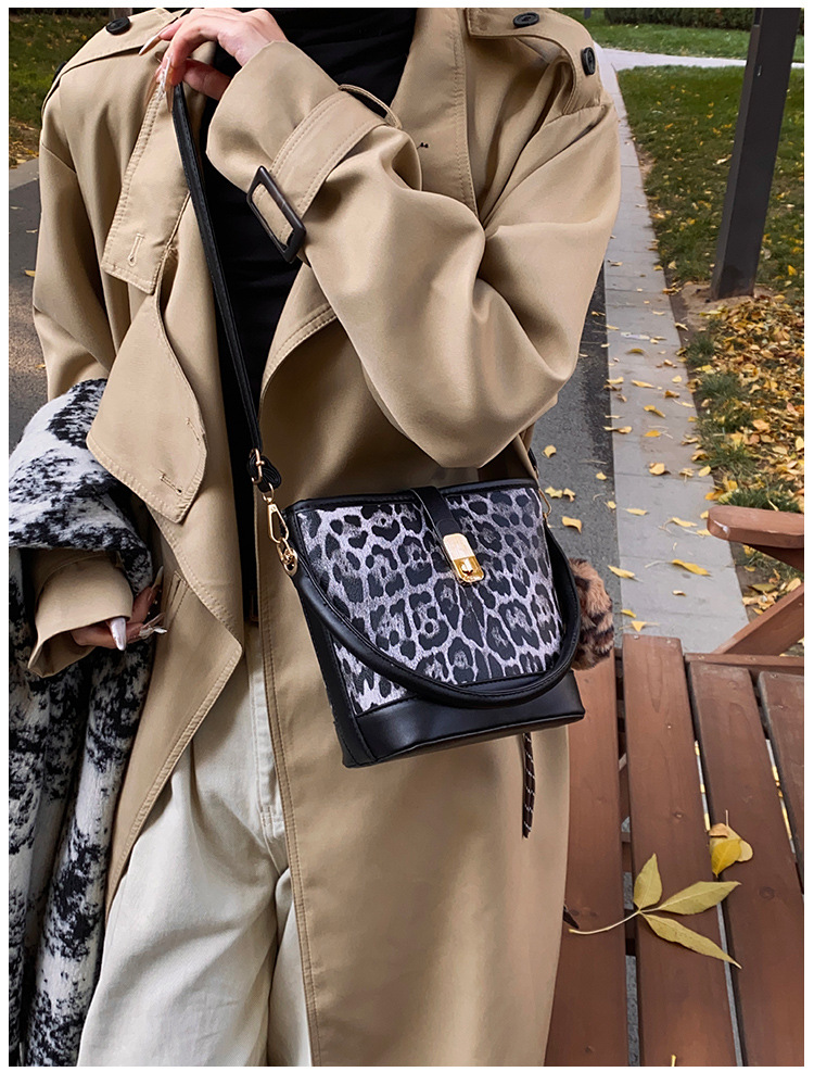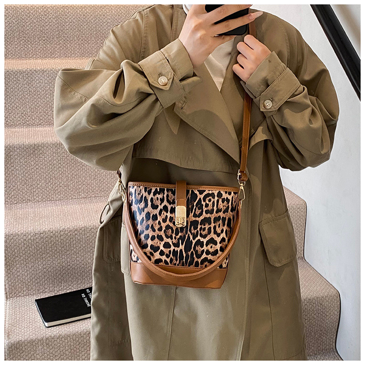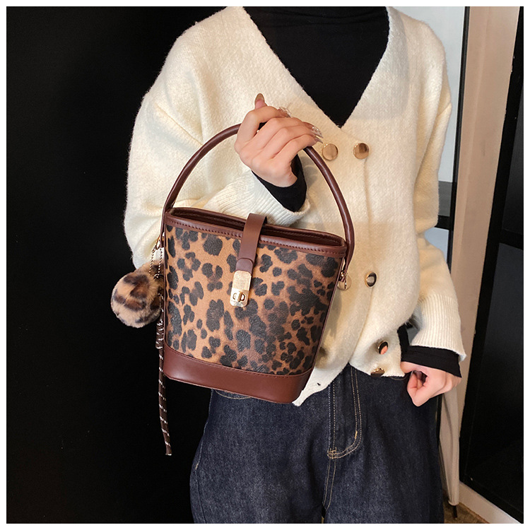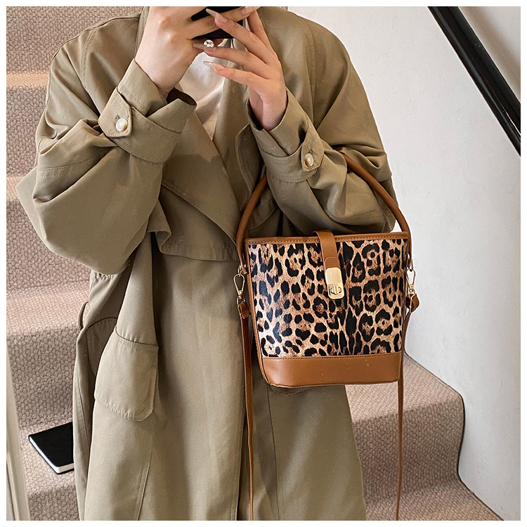 Bolso popular de este año para mujeres otoño invierno 2024 nuevo patrón de leopardo nicho mochila casual bolso de cubo de agua