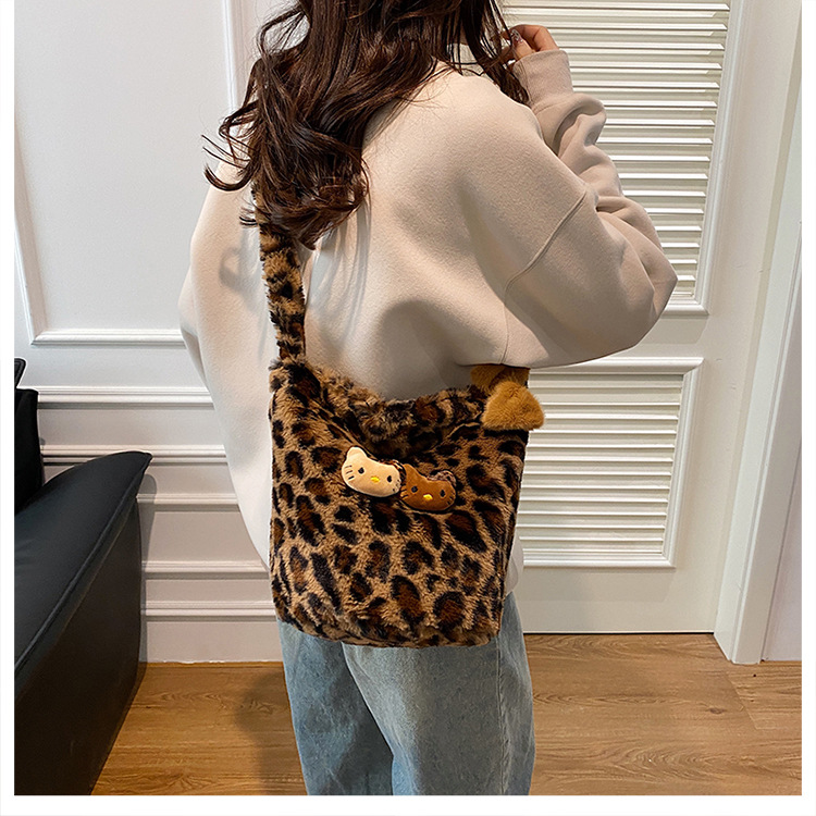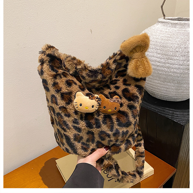 Moda nuevo Meirade peludo estampado Kitty bolso lindo bolso de viaje nicho antiguo sensación bolso de mano