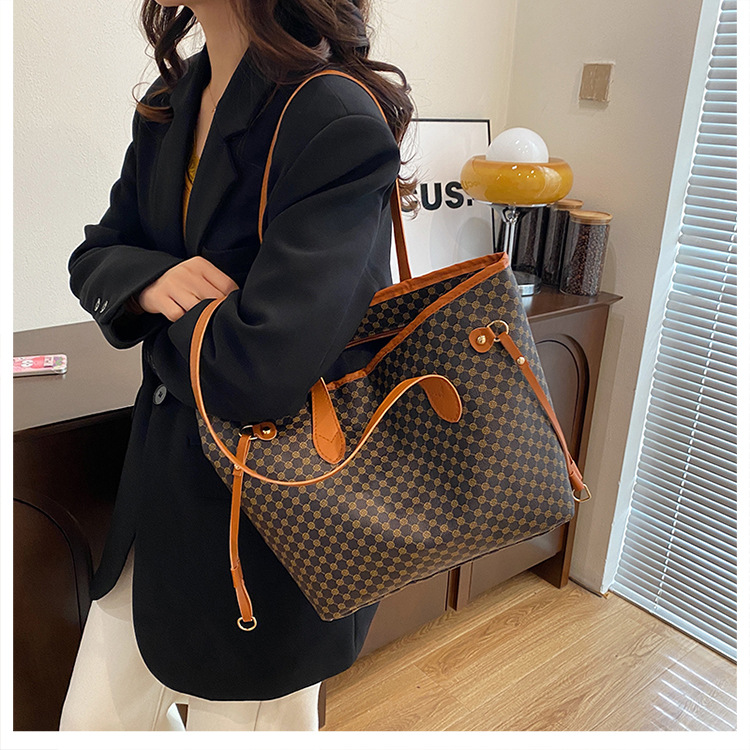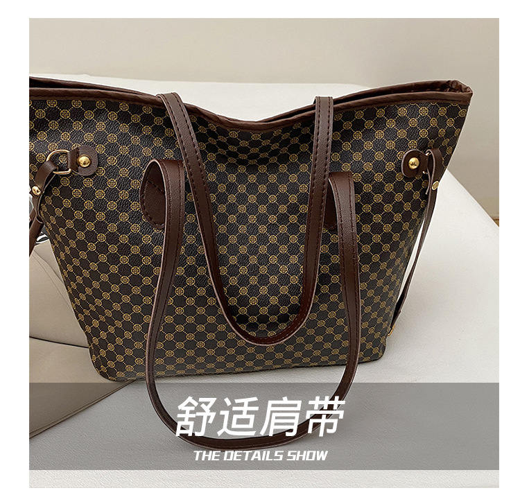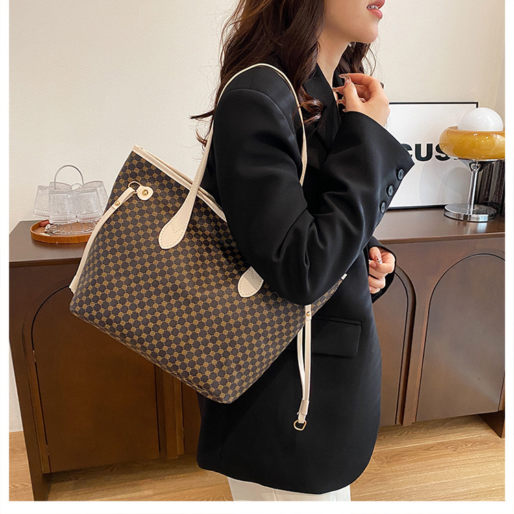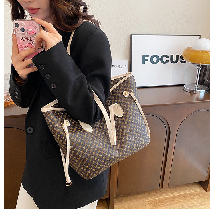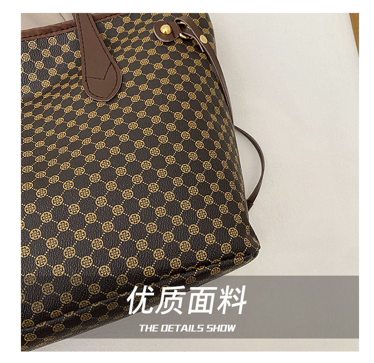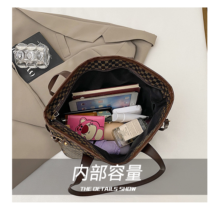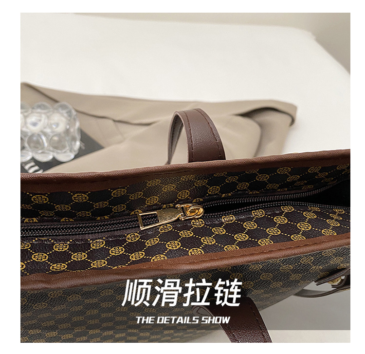 Bolso retro Tote 2024 nuevo bolso impreso bolso de mamá de gran capacidad bolso de hombro con costuras de color en contraste bolso de mujer