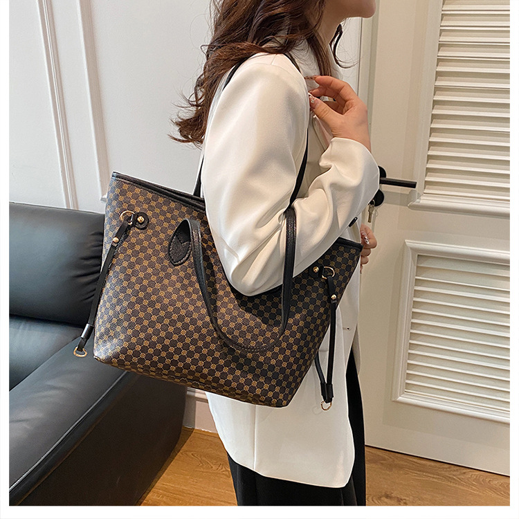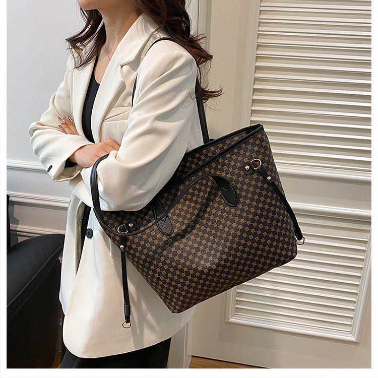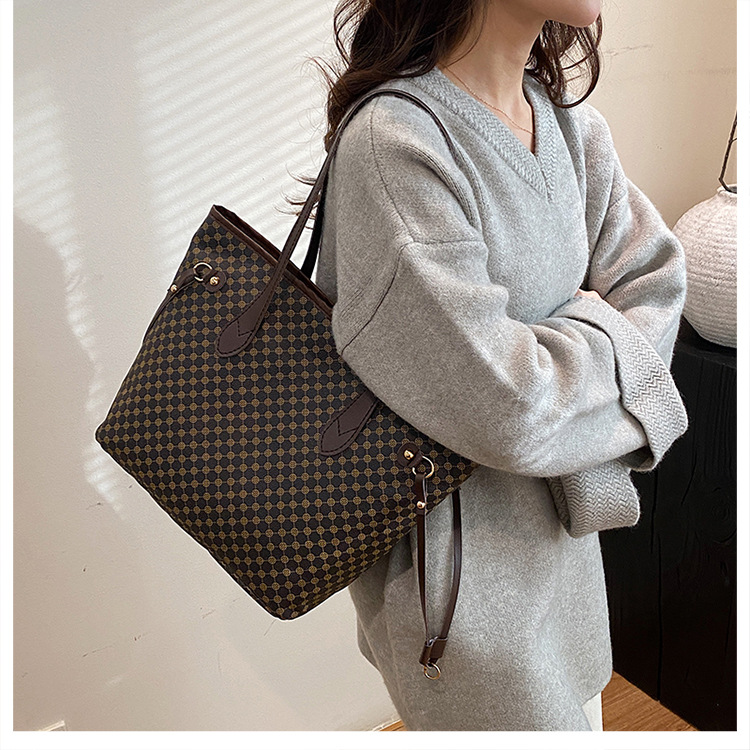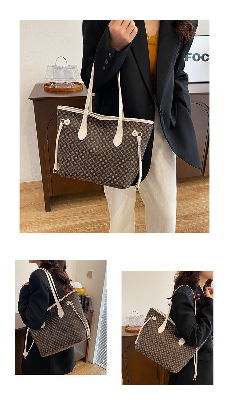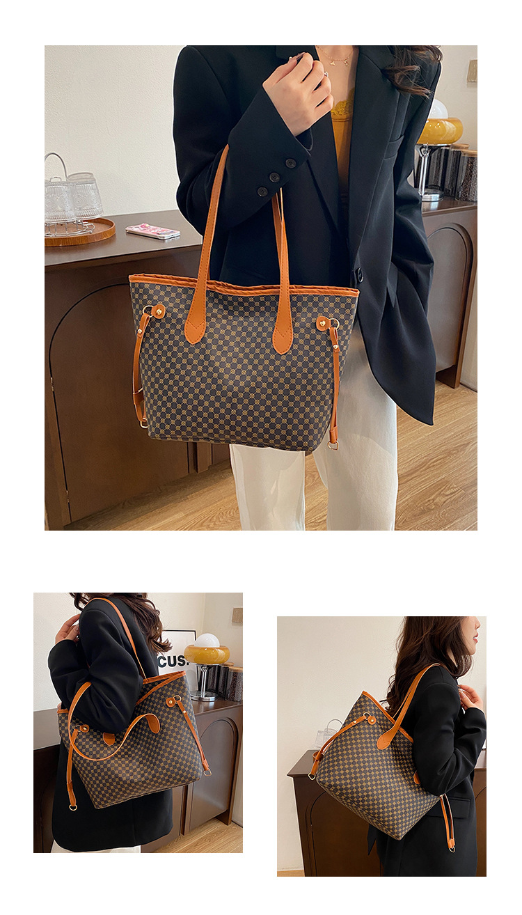 Bolso retro Tote 2024 nuevo bolso impreso bolso de mamá de gran capacidad bolso de hombro con costuras de color en contraste bolso de mujer