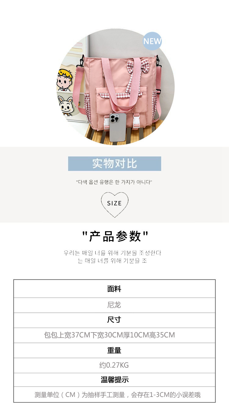 2024 nueva bolsa de hombro de gran capacidad de niña suave bolsas de mano estudiantes de clase bolsa de viaje bolsa de mano